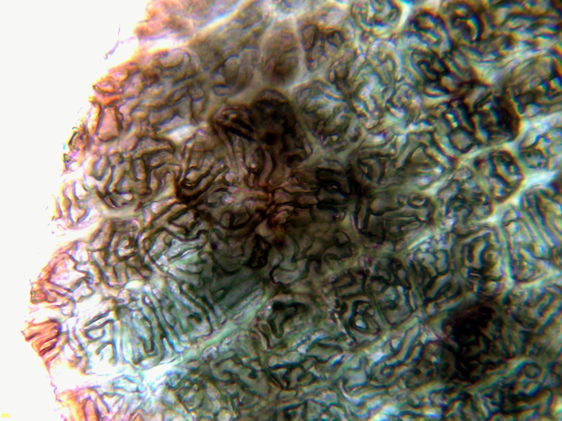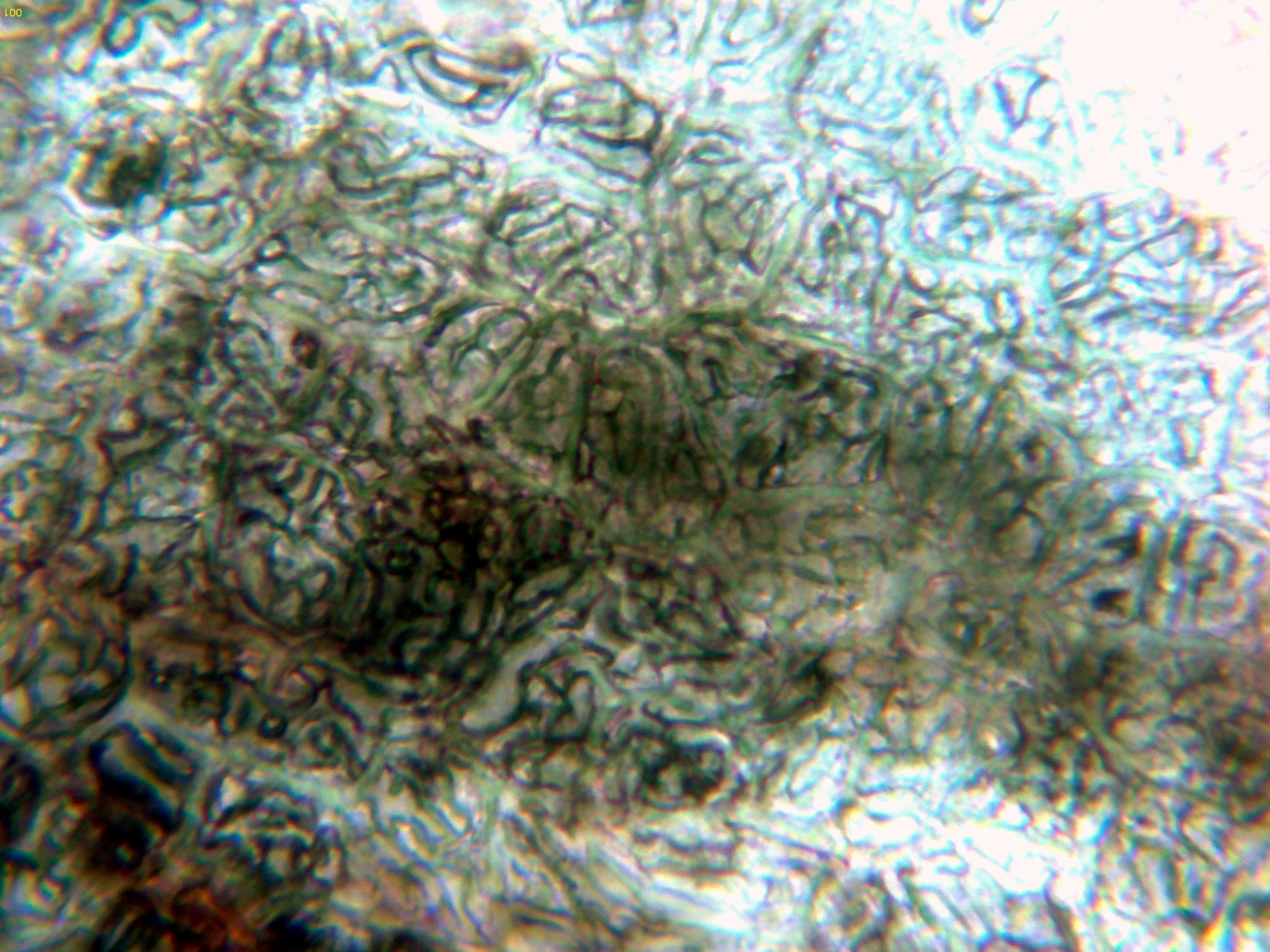 Hifas de la pared del peritecio fuertemente pigmentadas de marrón y con una disposición a modo de laberinto.
