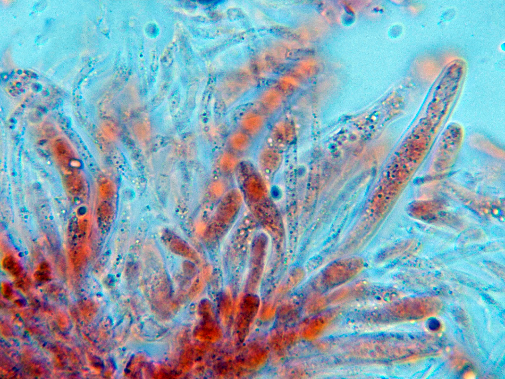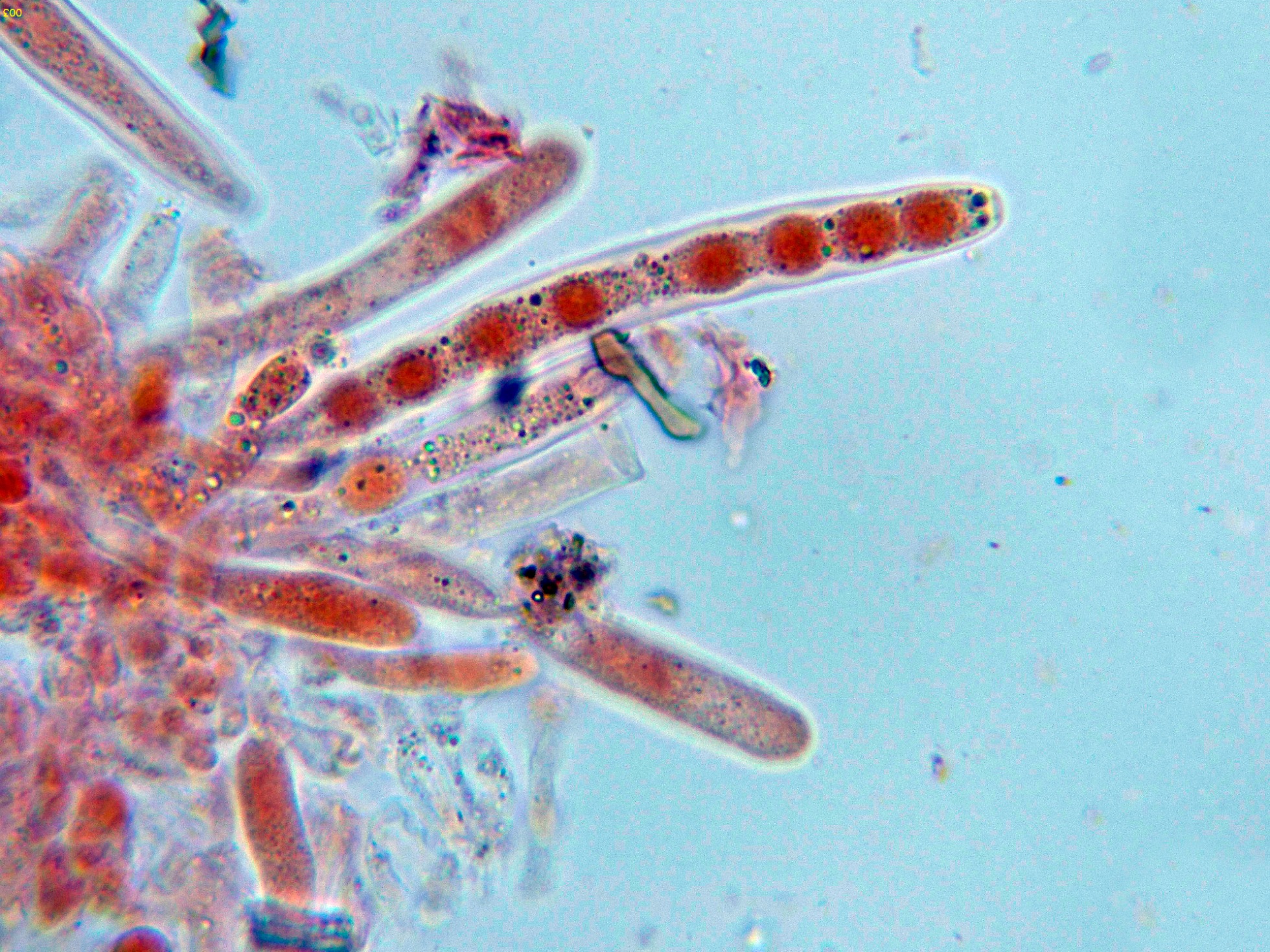 Los ascos en solución de Rojo Congo diluido.
