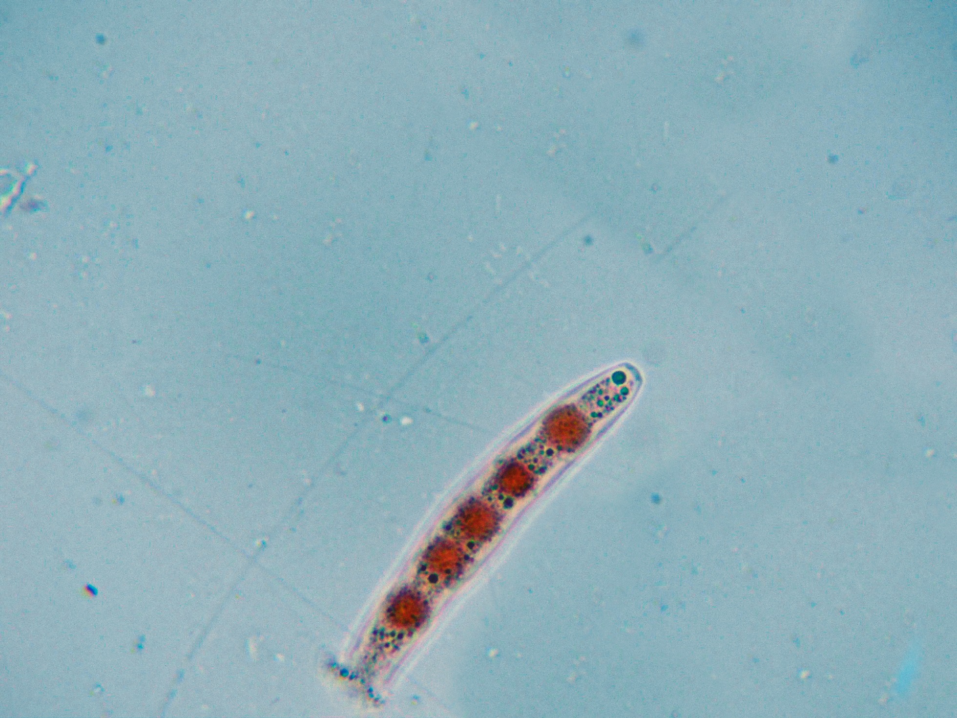 Asco con esporas ya más maduras y en agua.