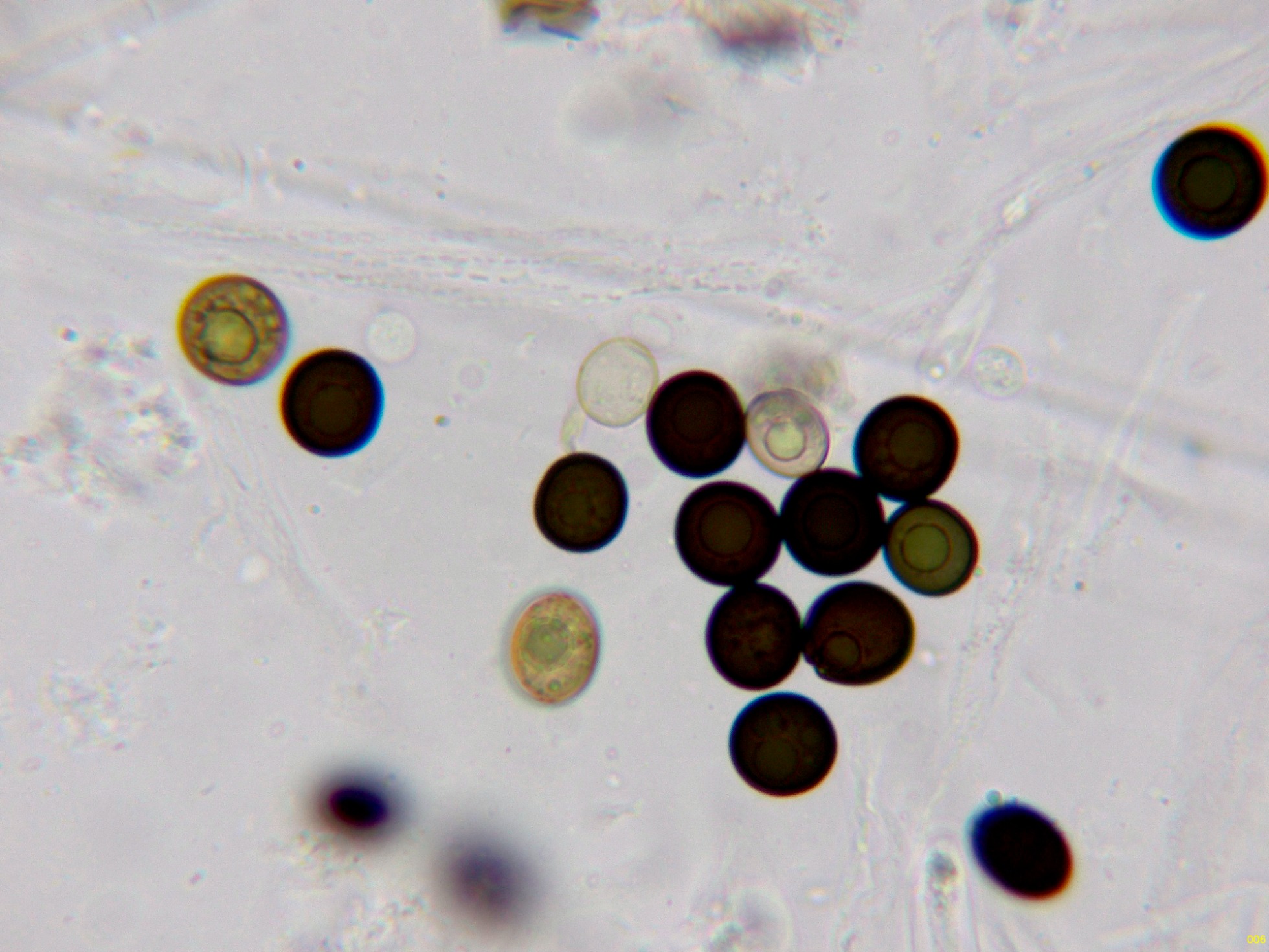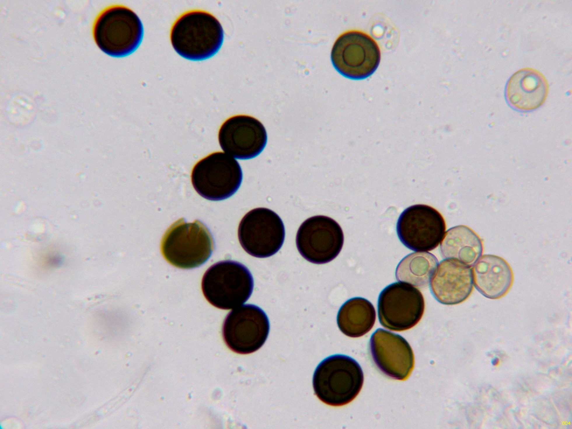 Y por último las esporas libres, entre globosas y subglobosas, en agua.