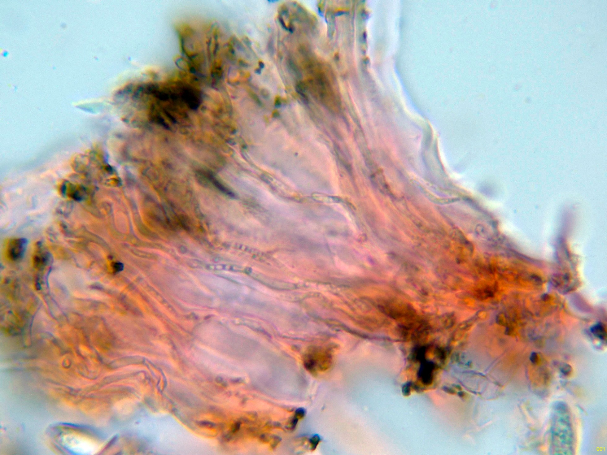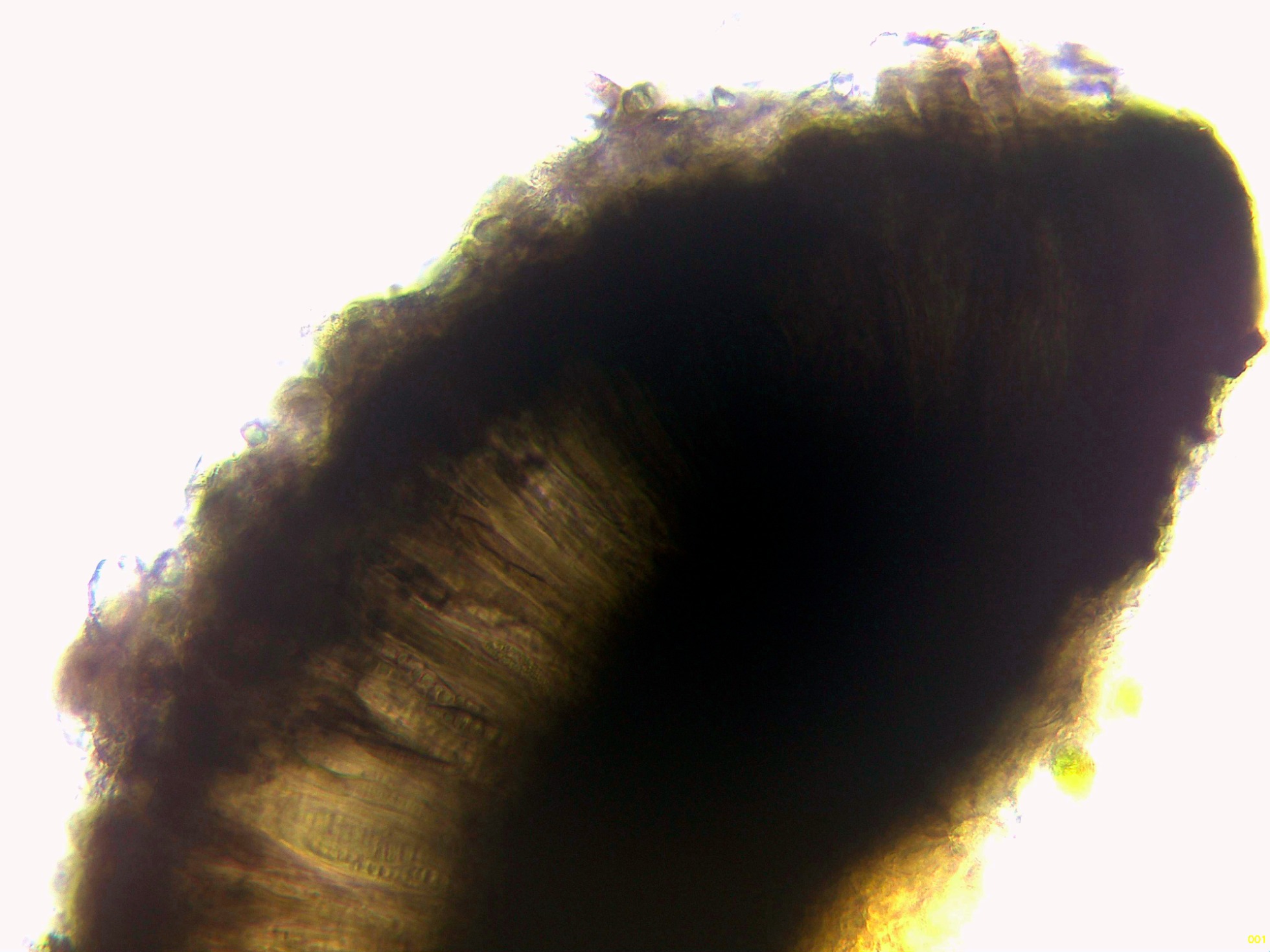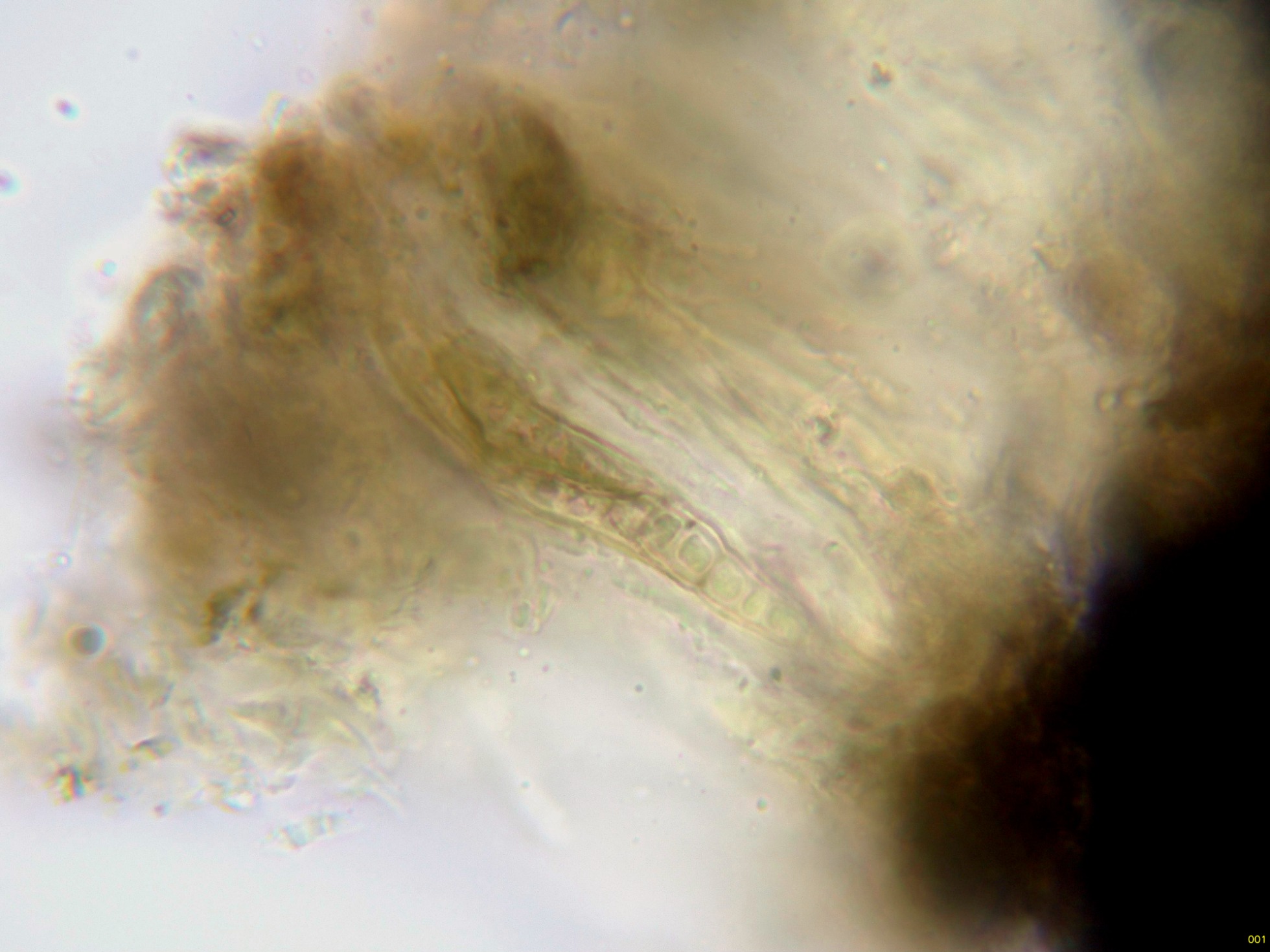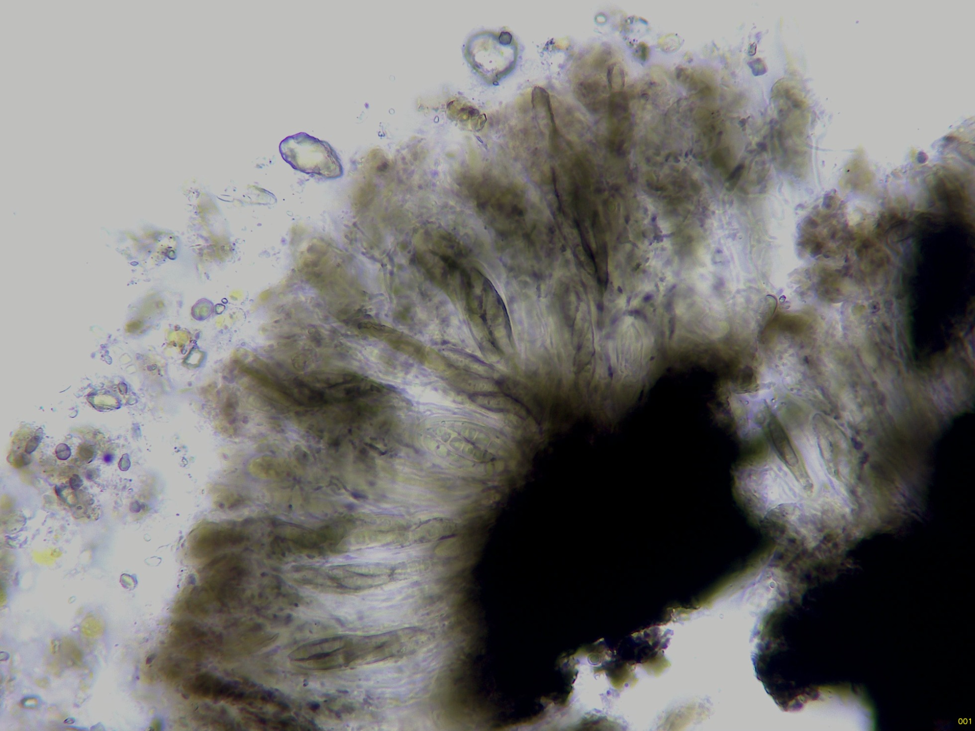 Sin embargo si aplicamos Lugol, previo tratamiento por espacio de 6 horas con KOH, el himenio adquiere un color rojizo, característica bastante común dentro de los Arthoniomycetes.