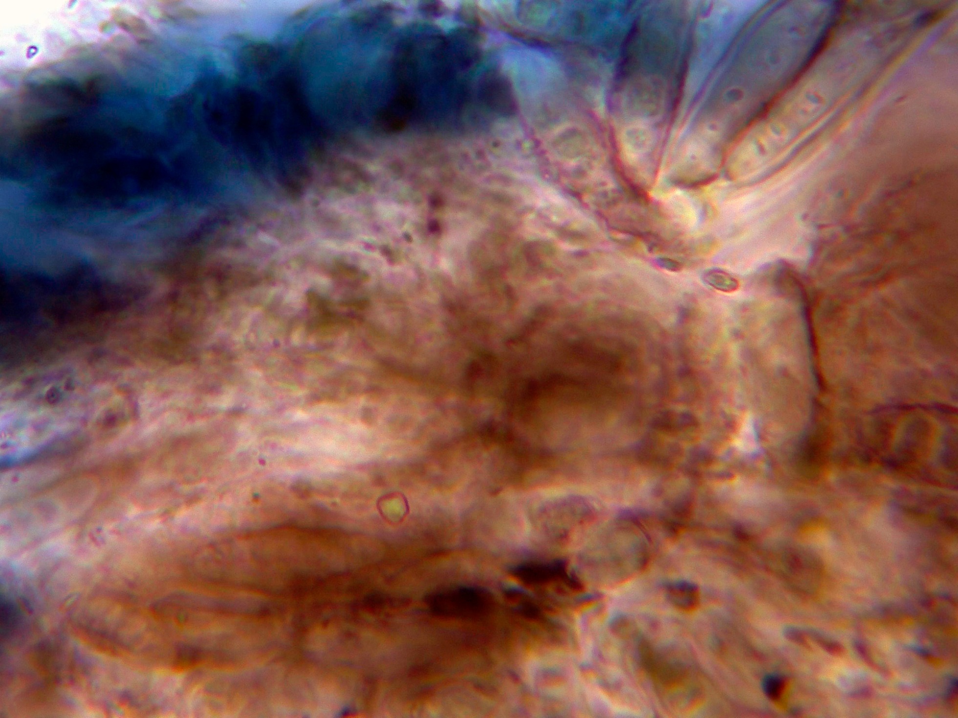 El himenio en reactivo de Melzer, sin ninguna aparente reacción destacable.