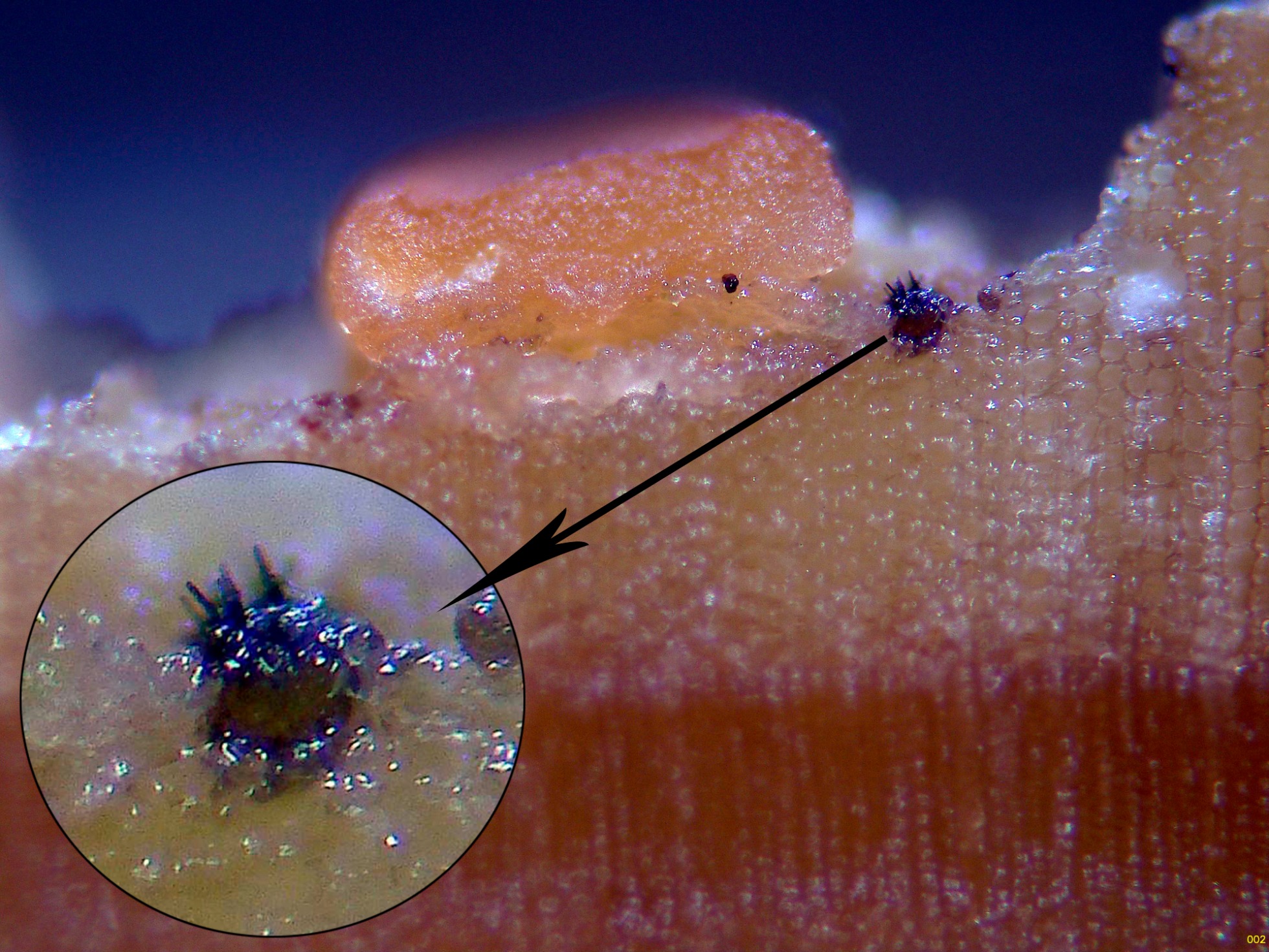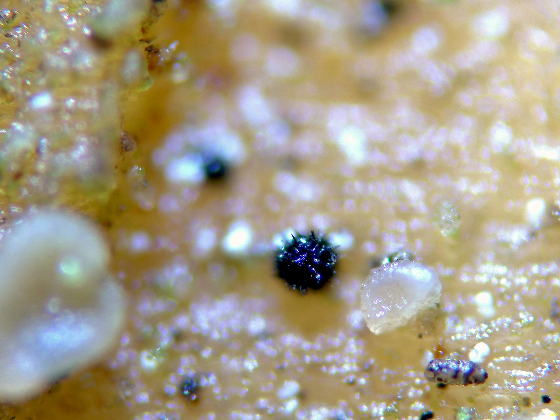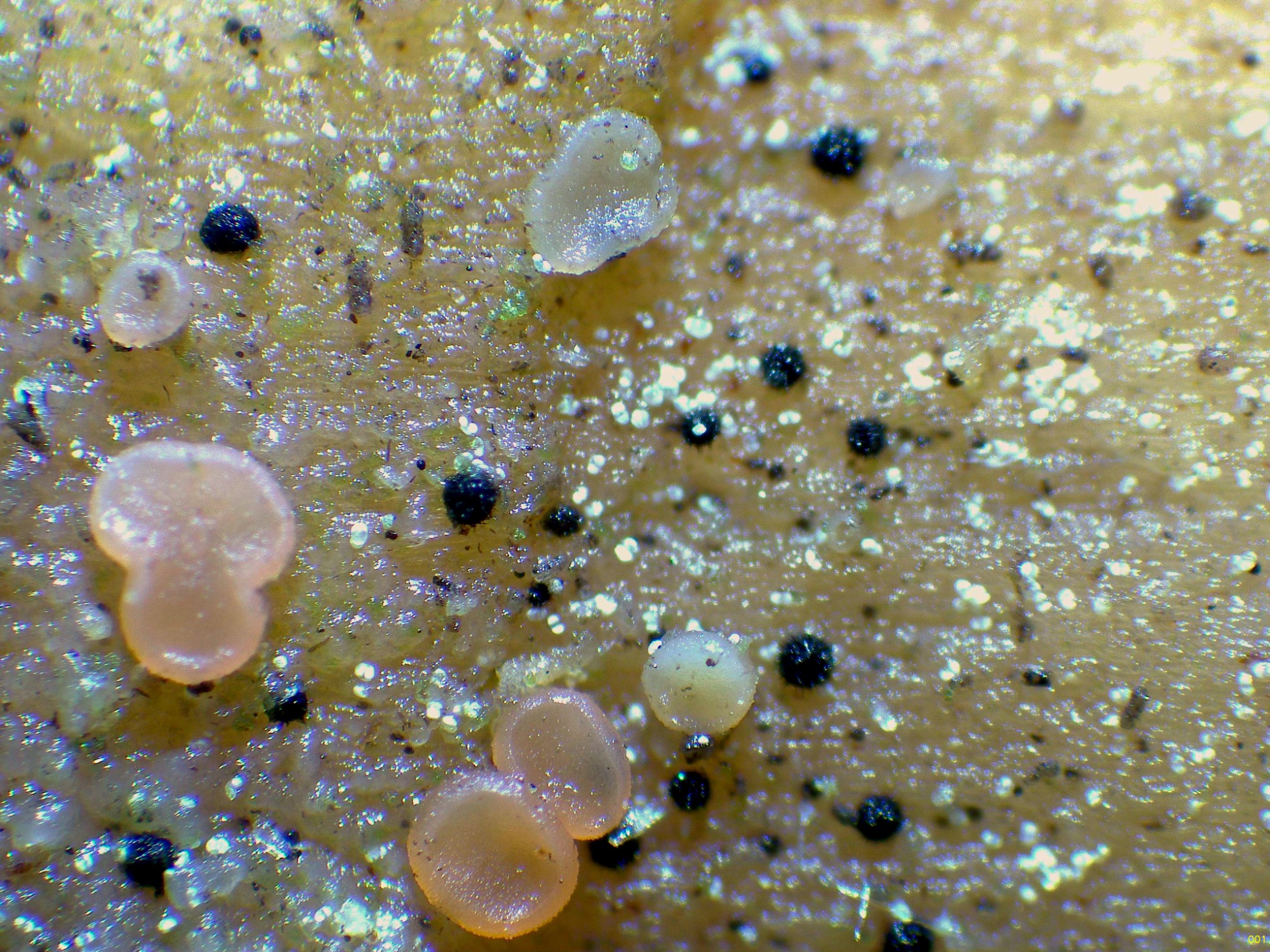 Unos muy diminutos ascomas que a simple vista siempre se nos pasan desapercibidos y que los encontré al lado de la Orbilia eucalypti que he presentado recientemente, fue al sacar las imágenes a 40 aumentos con el microscopio de sobremesa utilizando luz indirecta.