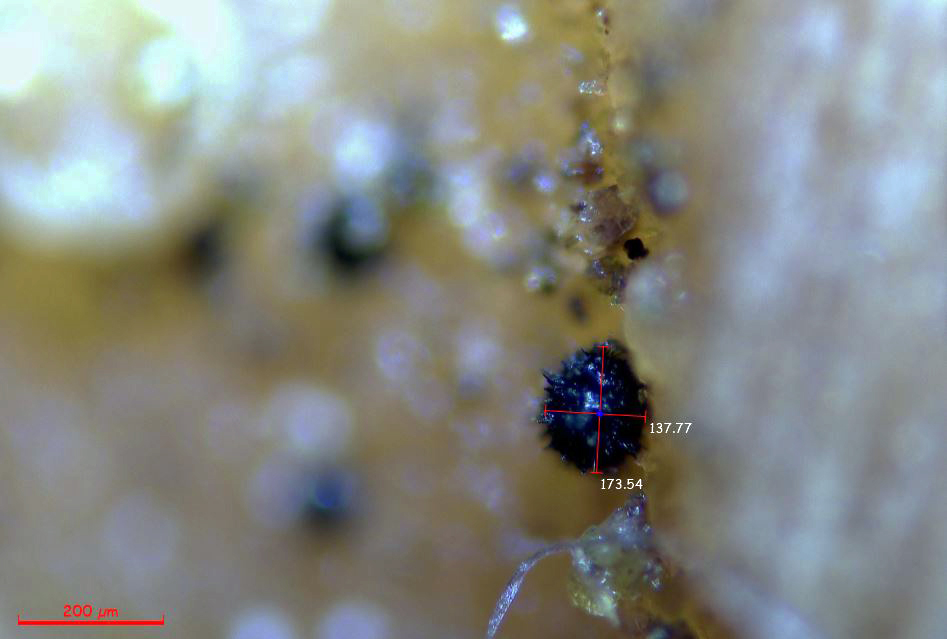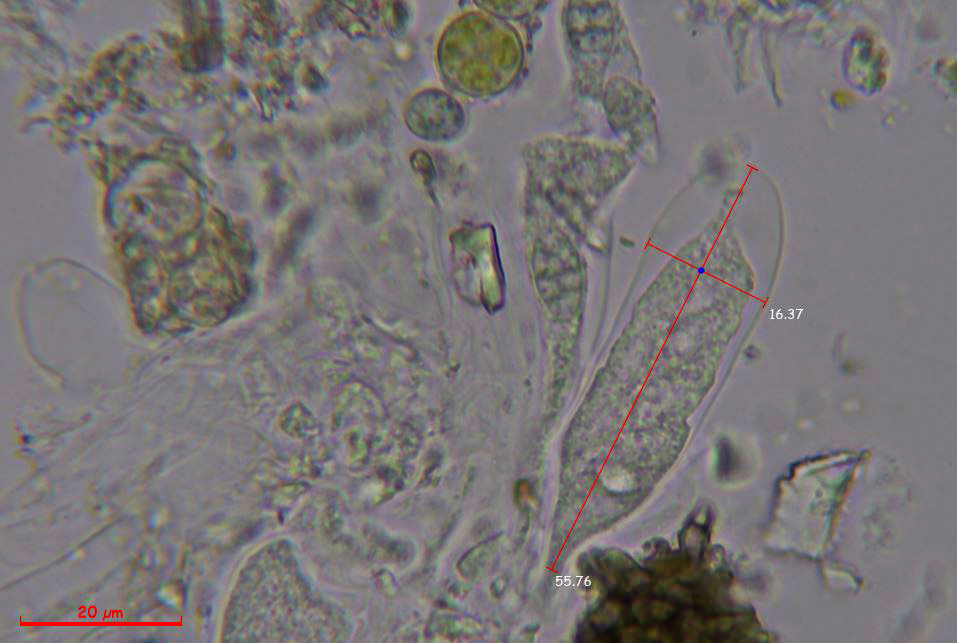 Un ascoma con sus medidas, que en el mejor de los casos no llegaba ni a las 2 décimas de milímetro.