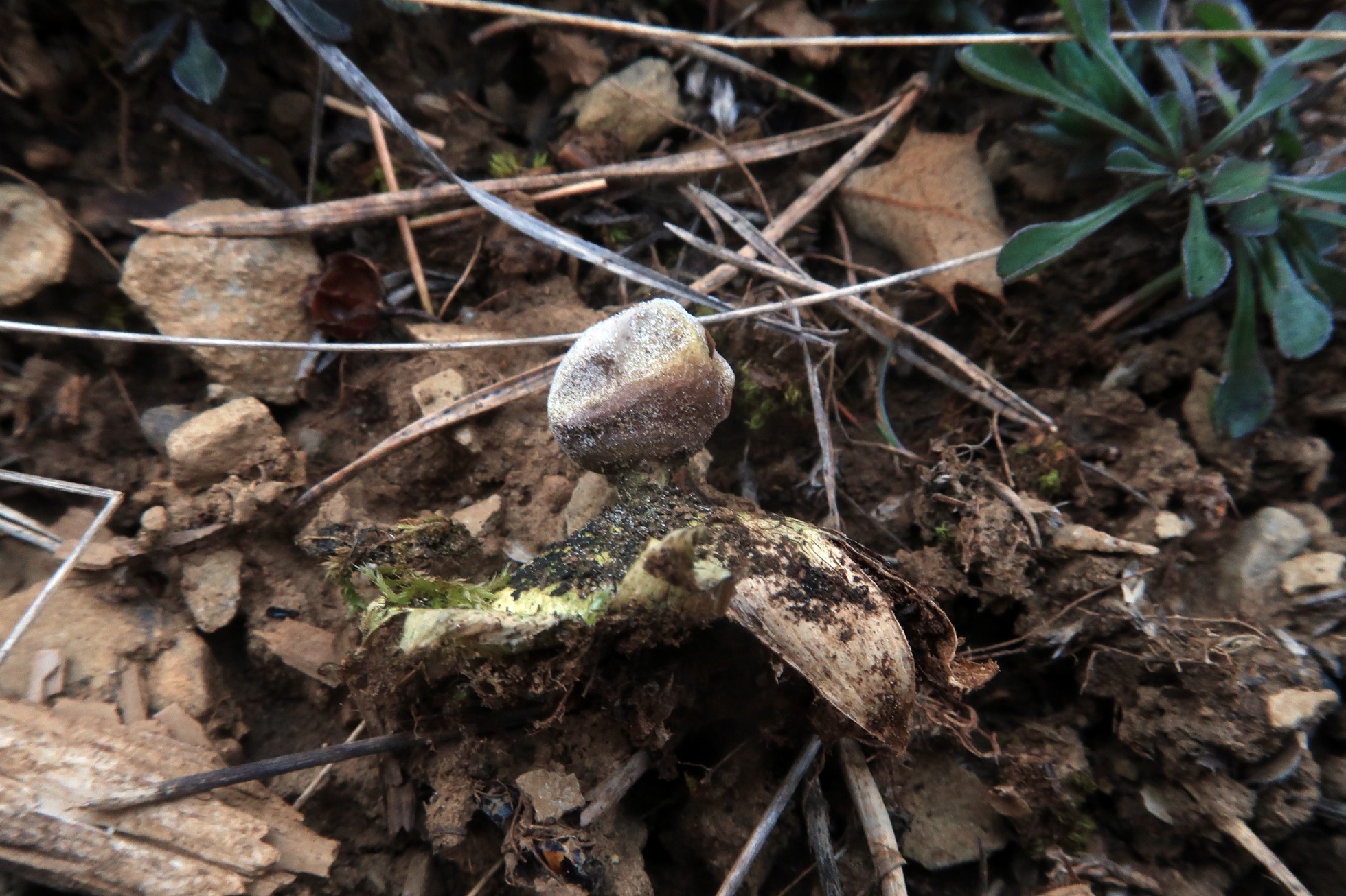 Un Geastrum que ya no pasaba por su mejor momento, su peristoma y su morfología y medidas esporales lo delatan, el Geastrum elegans.