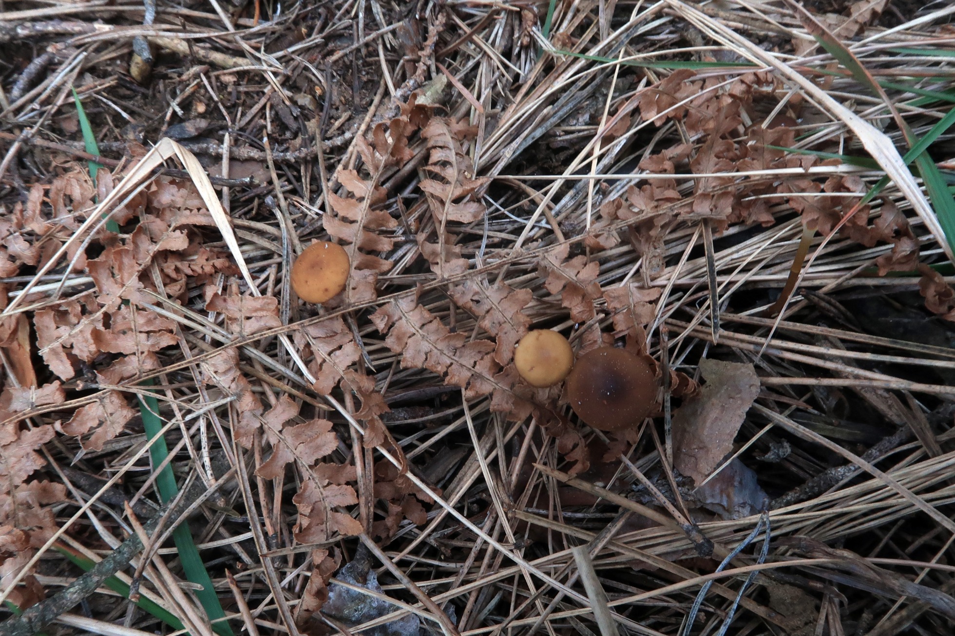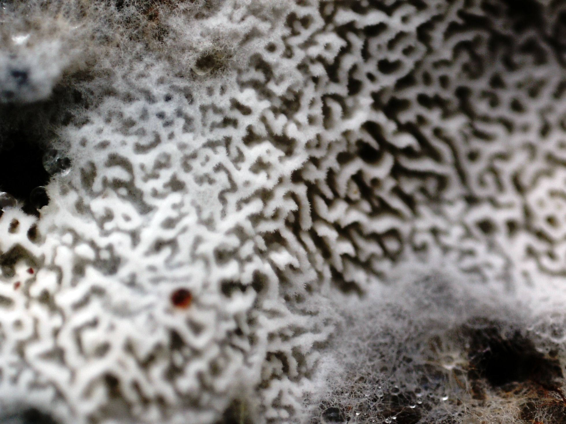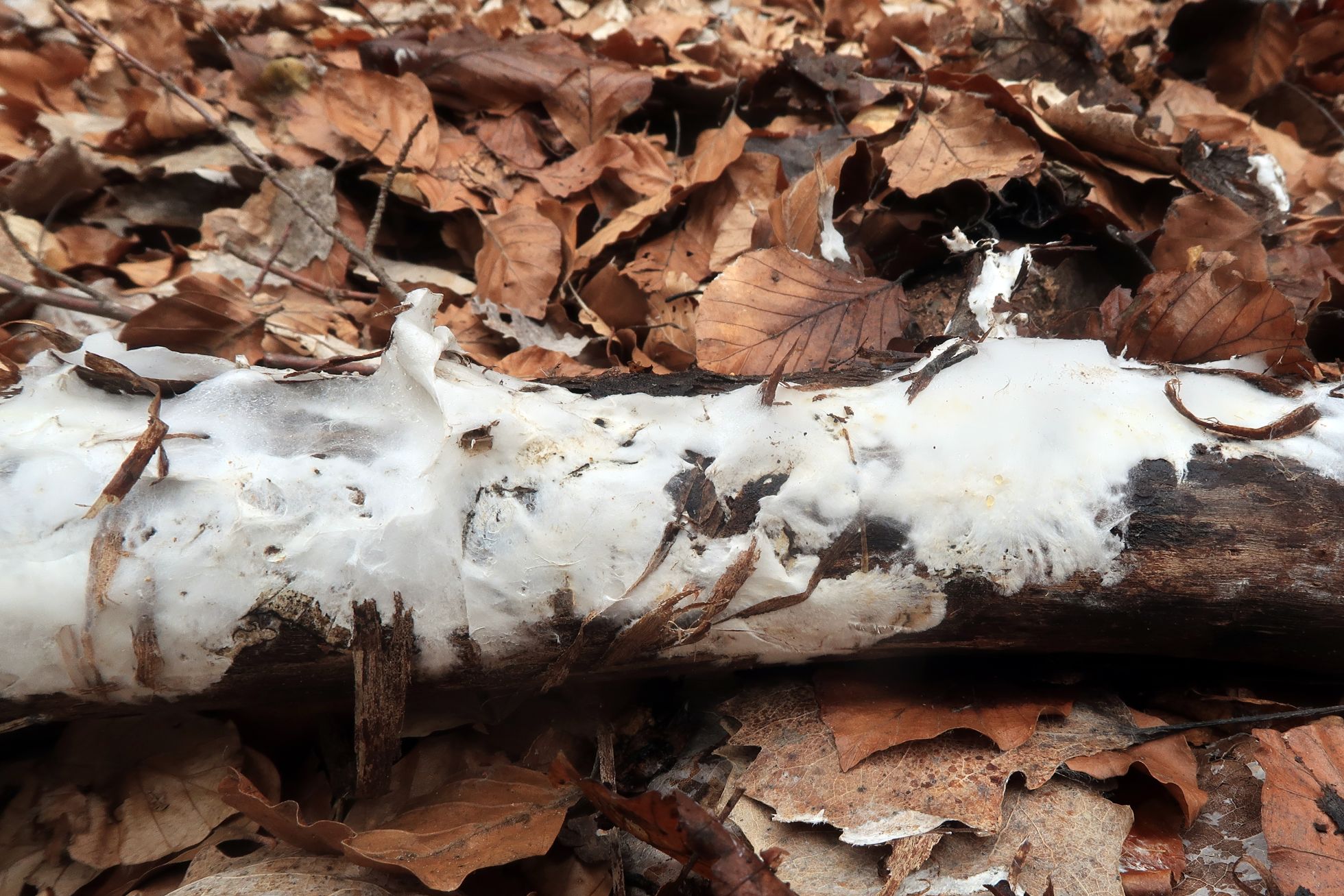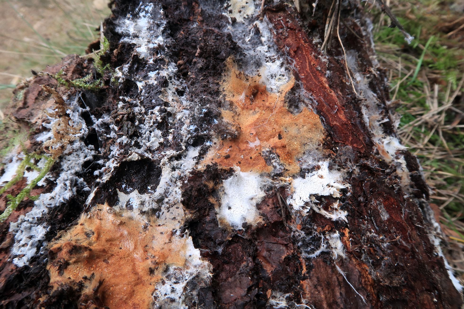 En la superficie de un tronco y en la parte que está en contacto con el suelo, una Tomentella, sus hifas subiculares sin fíbulas allanan mucho el camino a la hora de ponerle apellido, sus cortas espinas ya descartan la Tomentella badia y queda solo como muy probable la Tomentella brunneofirma.