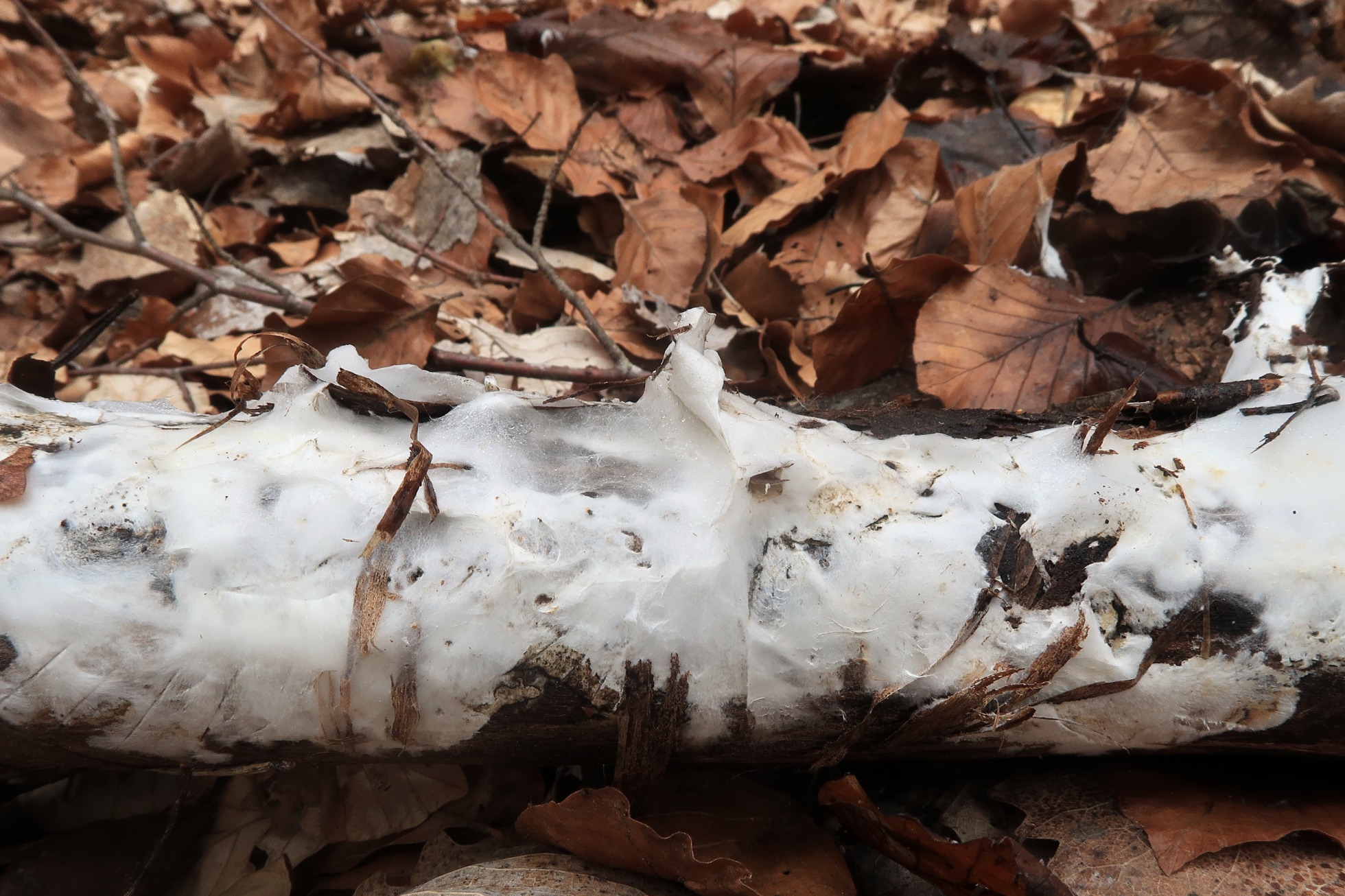 Uno que no lo había visto nunca en este estado, también denominado como "pelo de hielo", la Exidiopsis effusa.