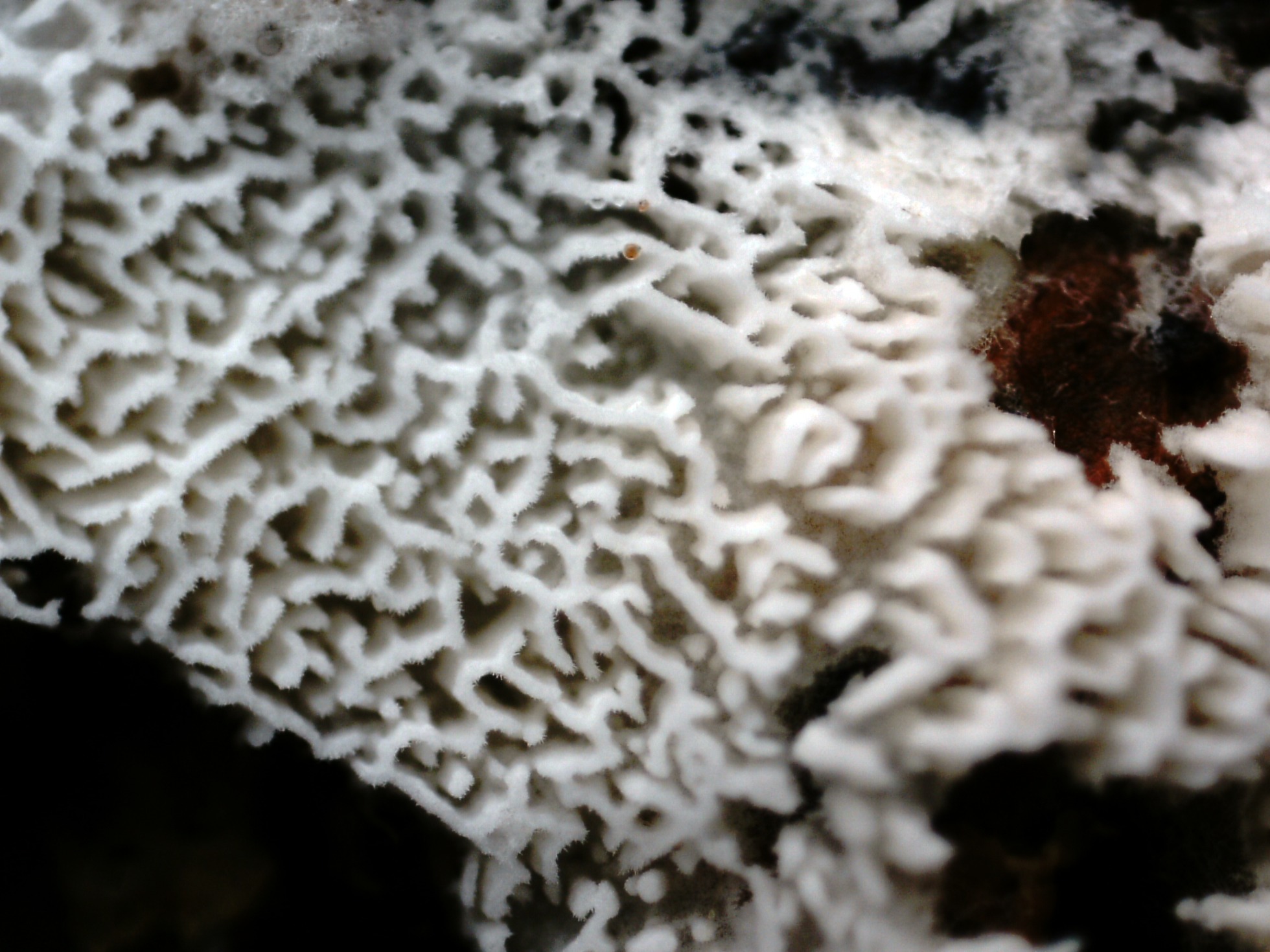 Un Corticial poroide, atendiendo a su aspecto, por el dato de las hifas subhimeniales fibuladas, debo descartar ya la Ceriporia reticulata, y aunque no pude obtener esporas, creo como opción más probable la de la Ceriporiopsis consobrina, actualmente Niemelaea consobrina, especie que ya me he encontrado en varias ocasiones.