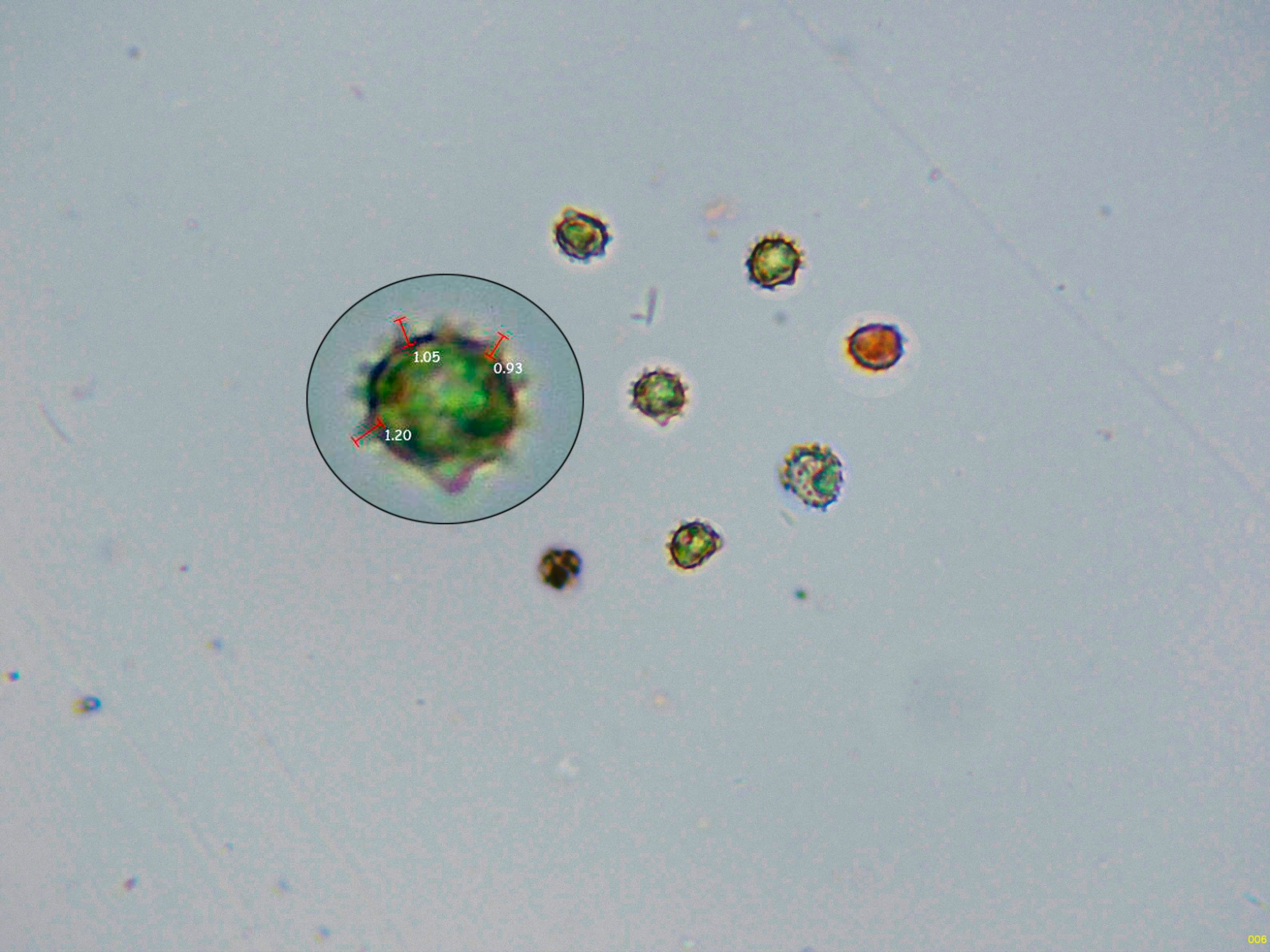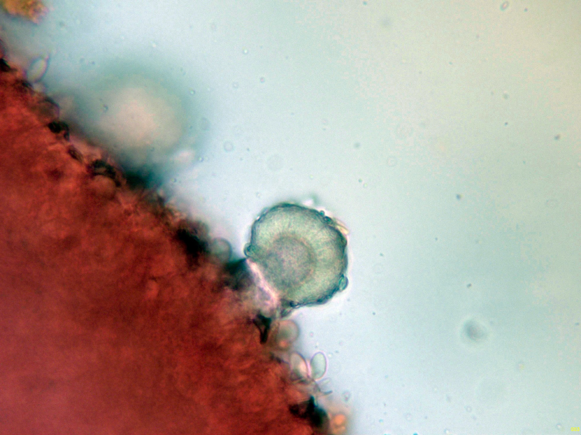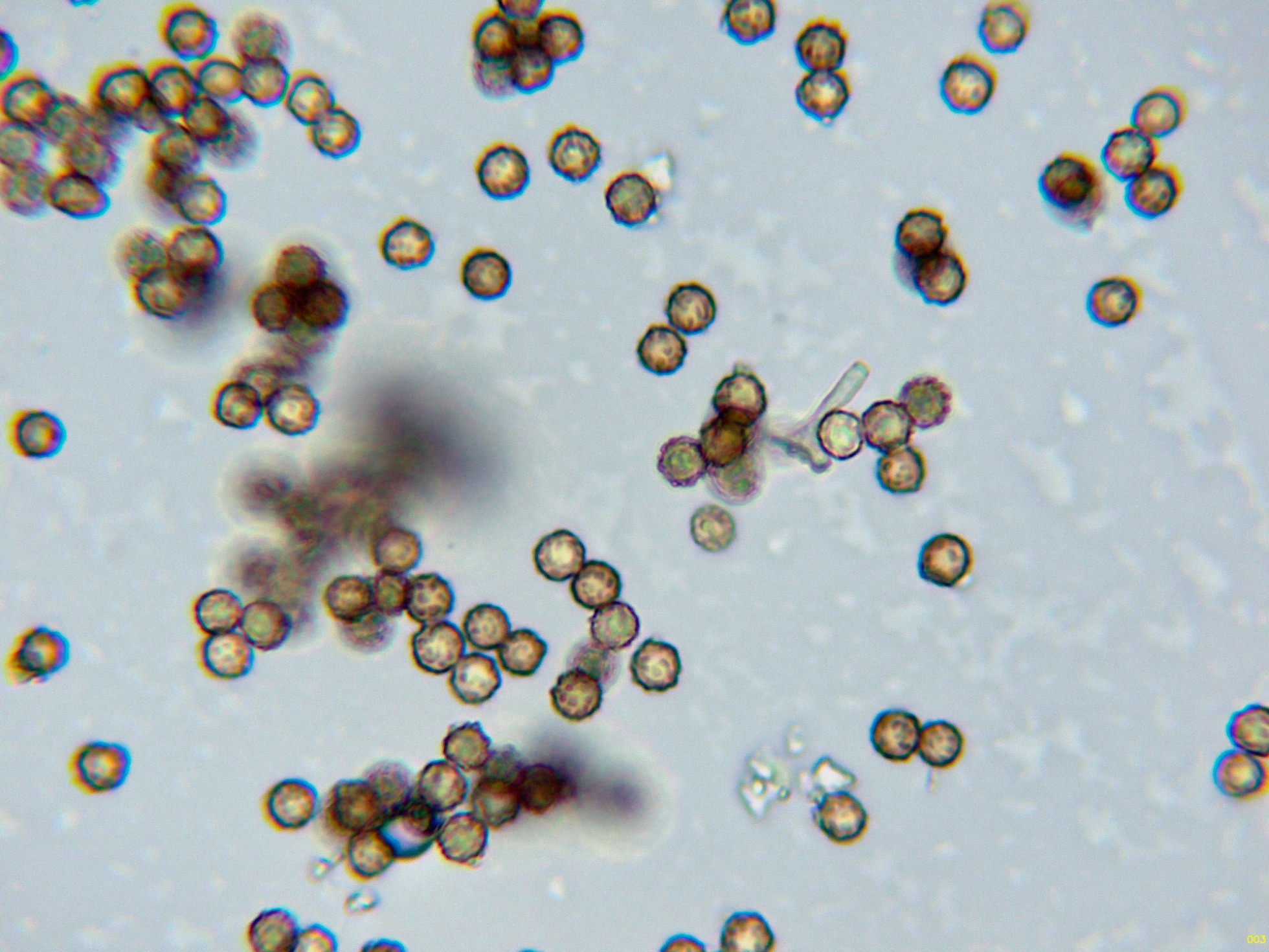 Estas esporas libres con unas medidas de (5.1) 5.2 - 5.5 (6) × (4.1) 4.6 - 5.2 (5.6) µm.