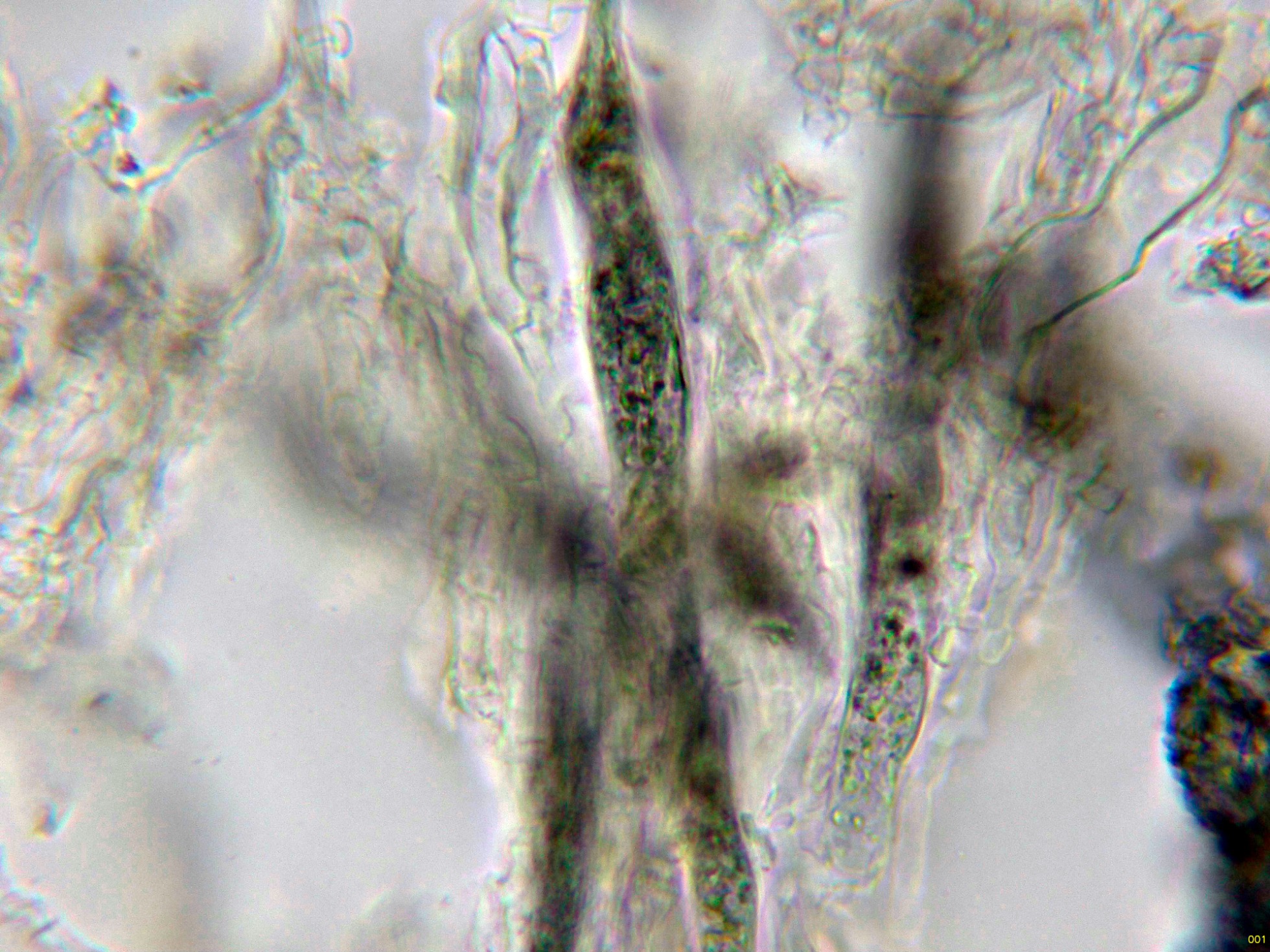 A pie de campo me pareció que podría tratarse muy probablemente de su congénere, la Peniophora incarnata, con la microscopía pude comprobar que se trataba de un "cromo nuevo".