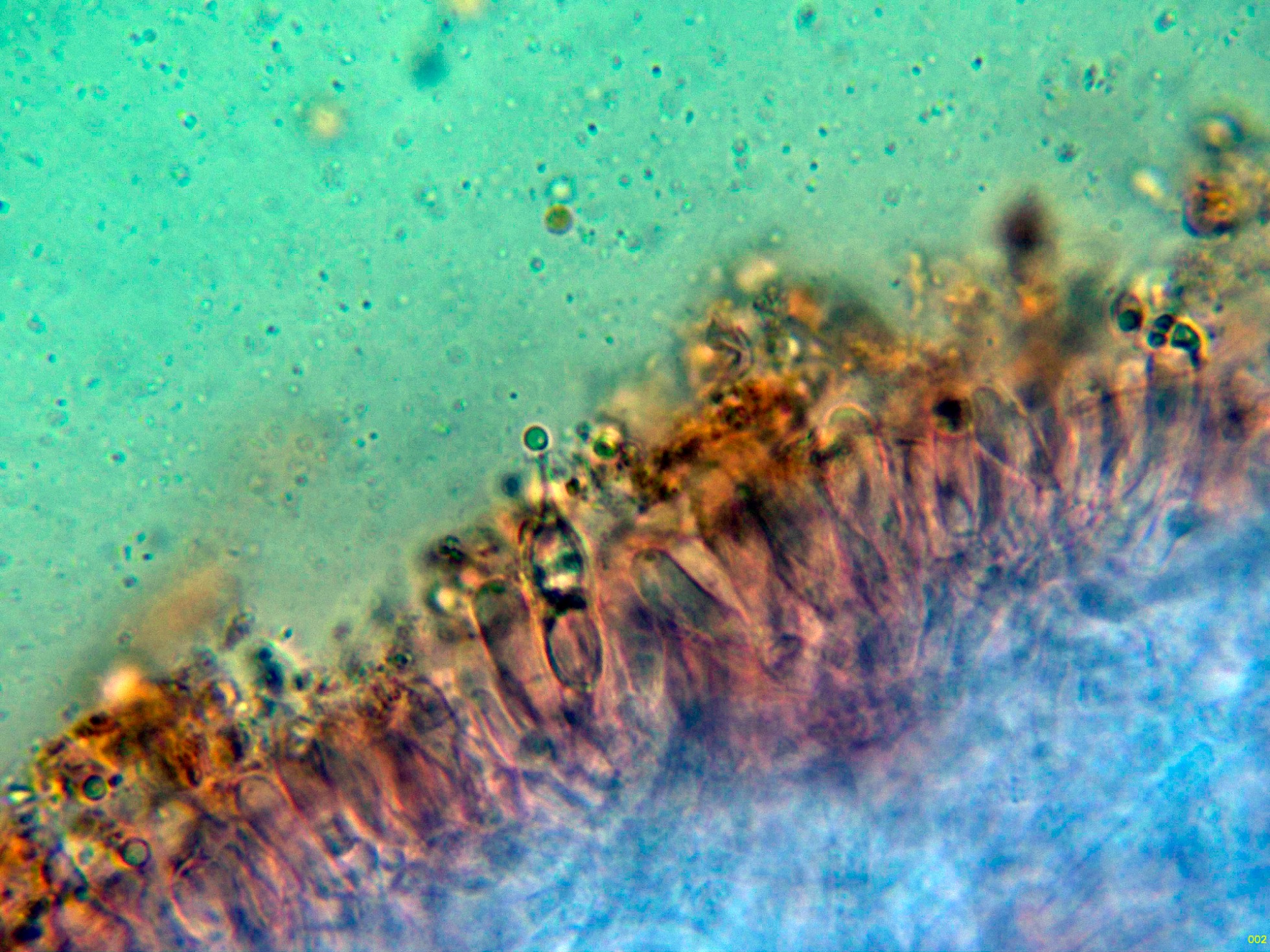 Los basidios de la cara laminar en solución de Rojo Congo, tetraspóricos.