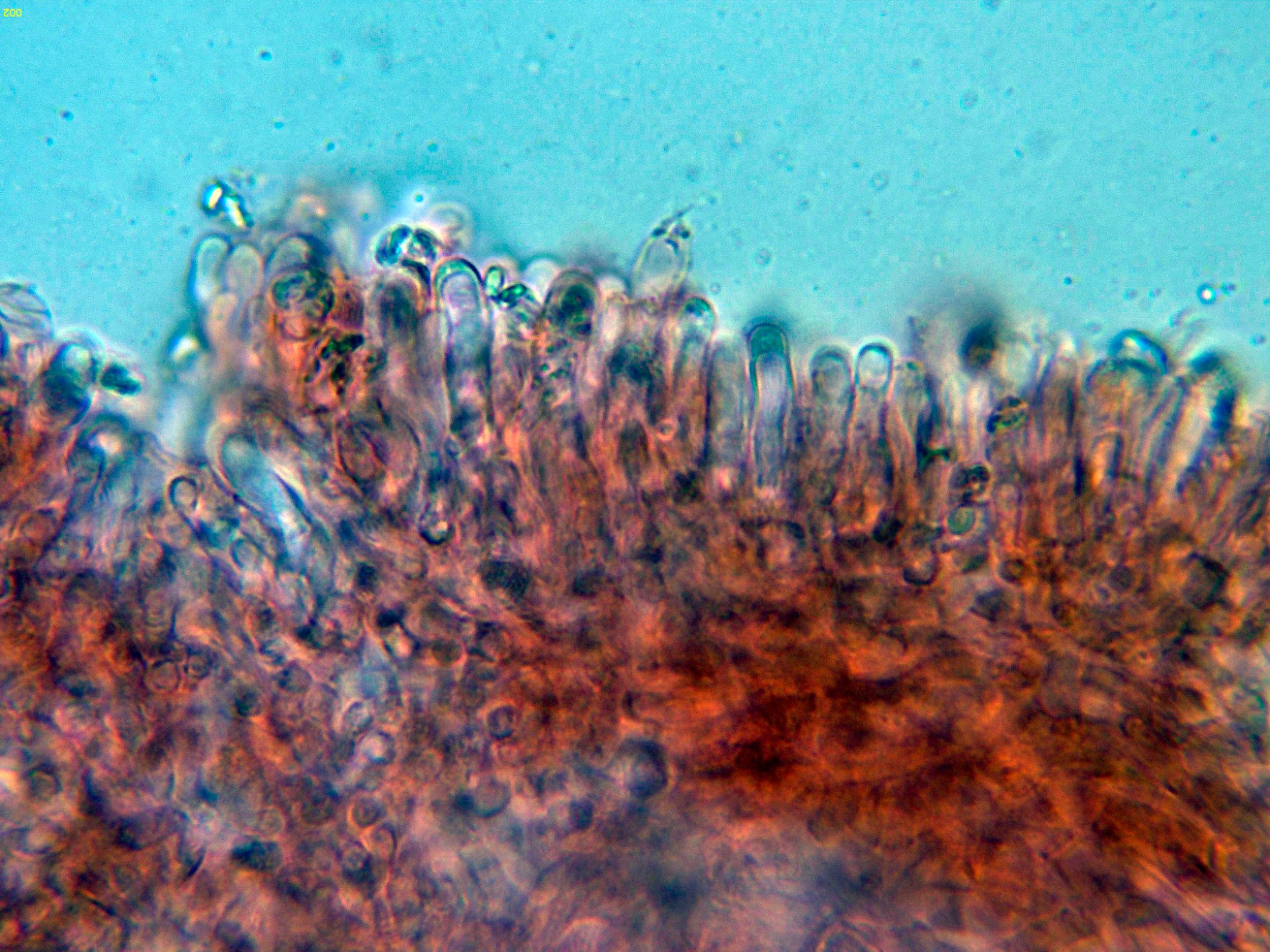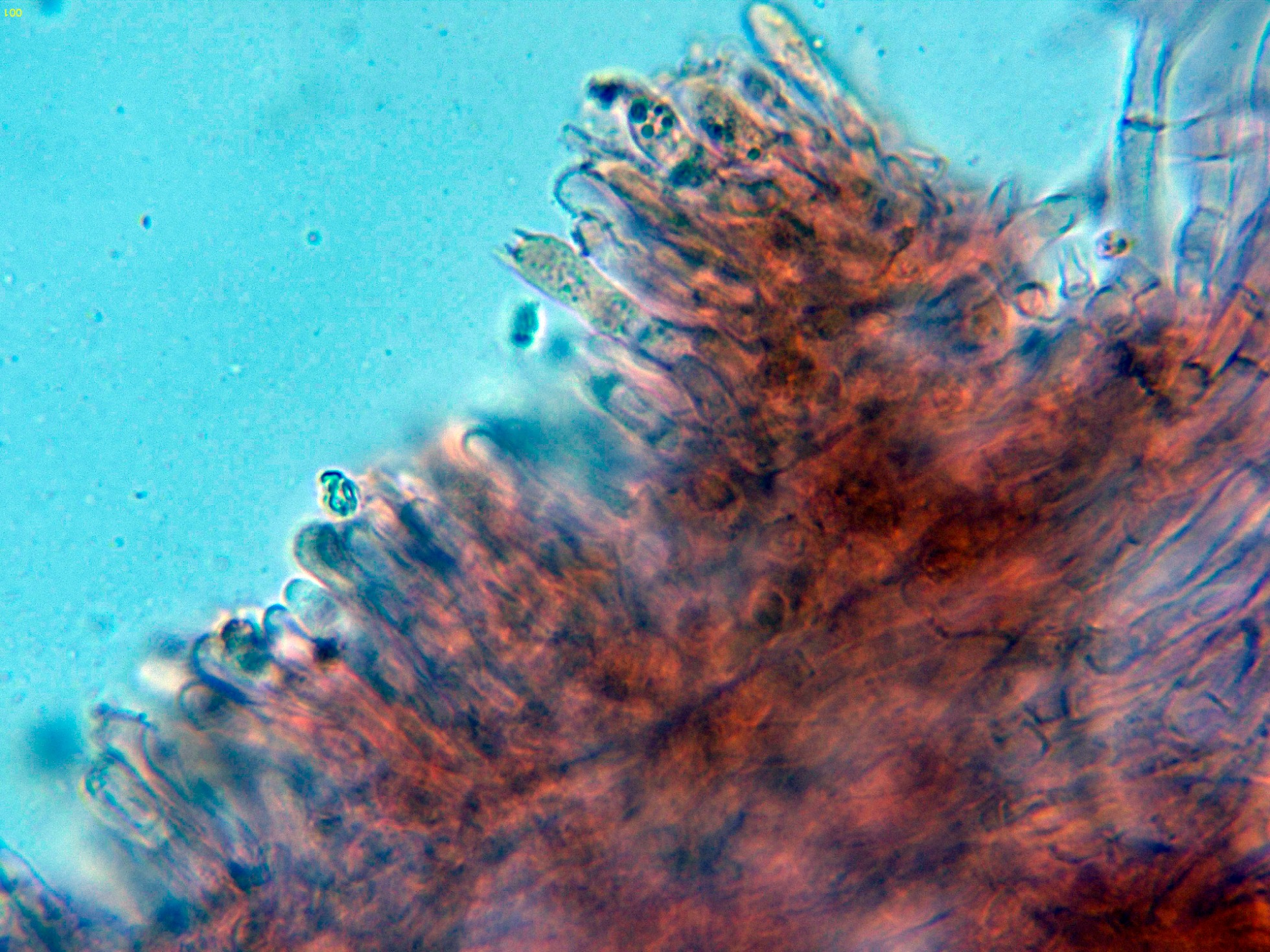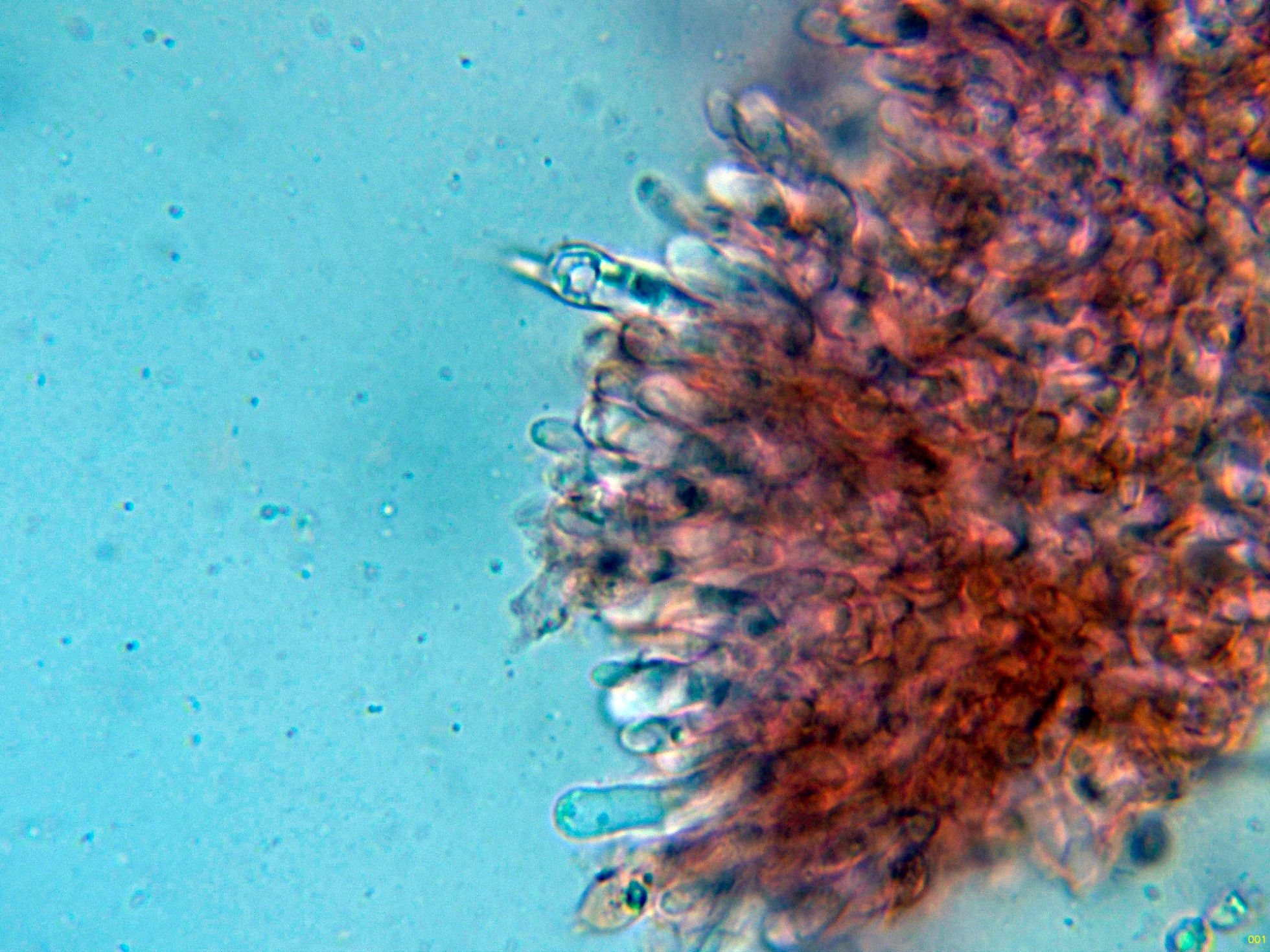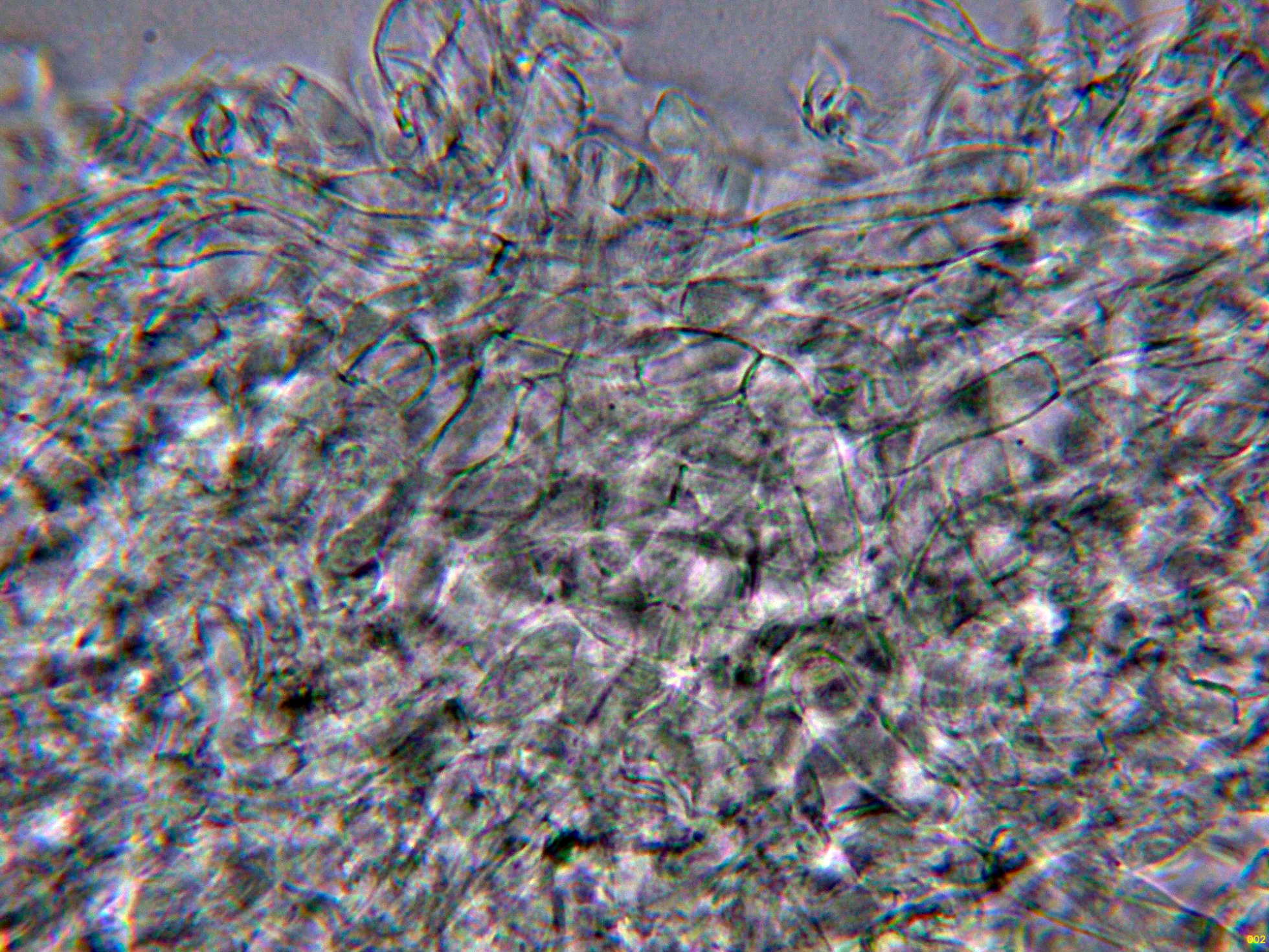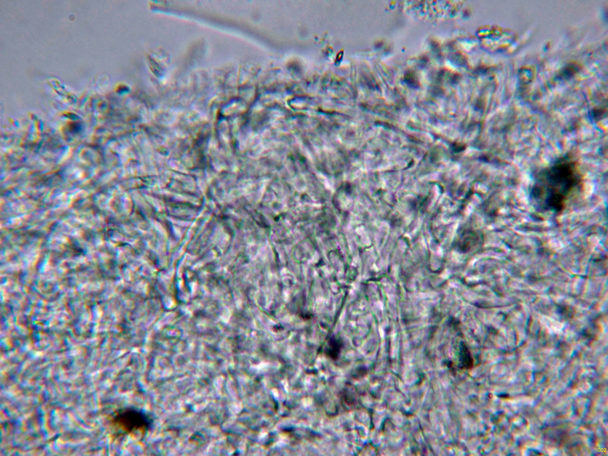 Las hifas de la subpellis, hialinas y algo más anchas que las de la suprapellis.