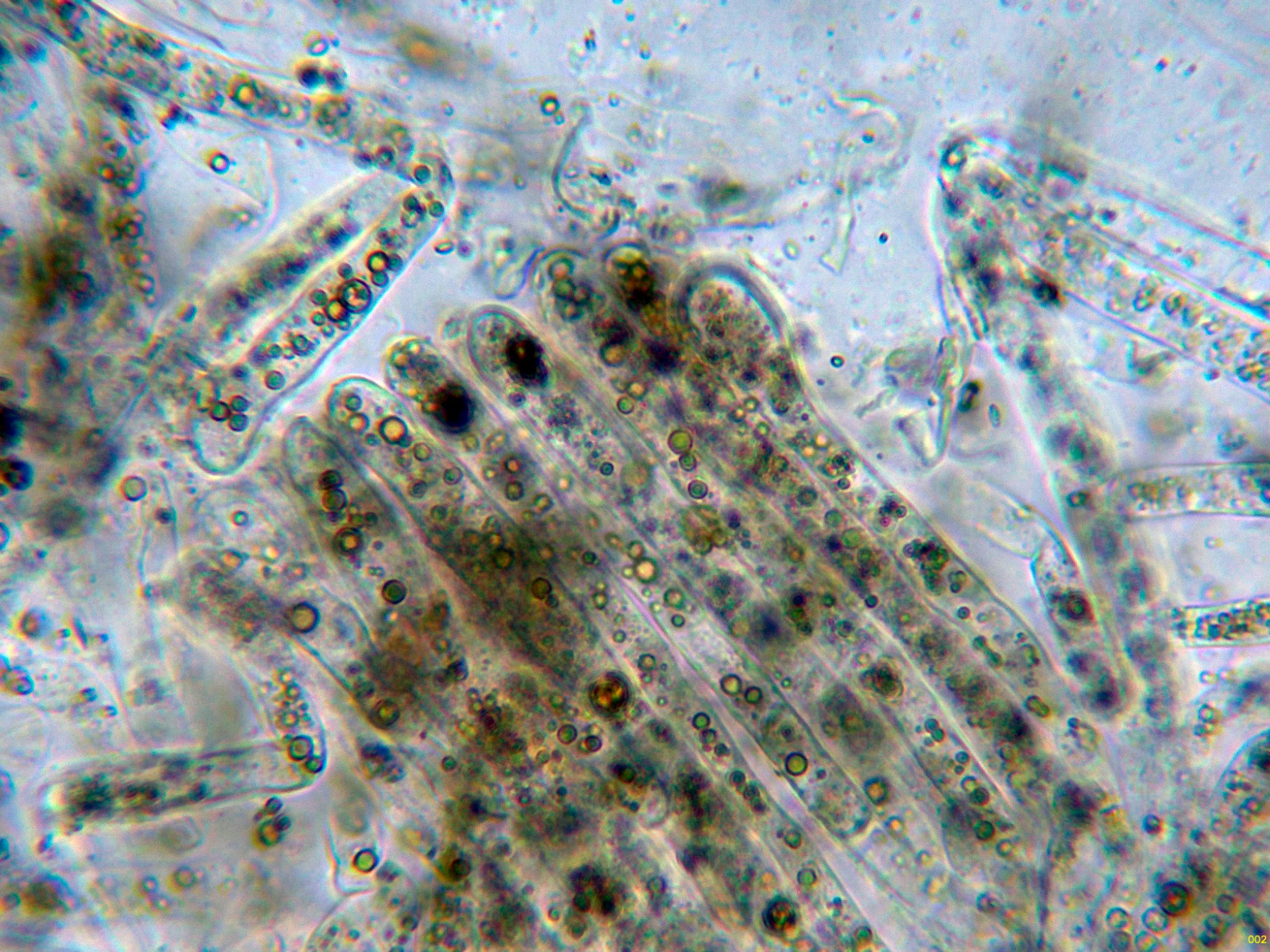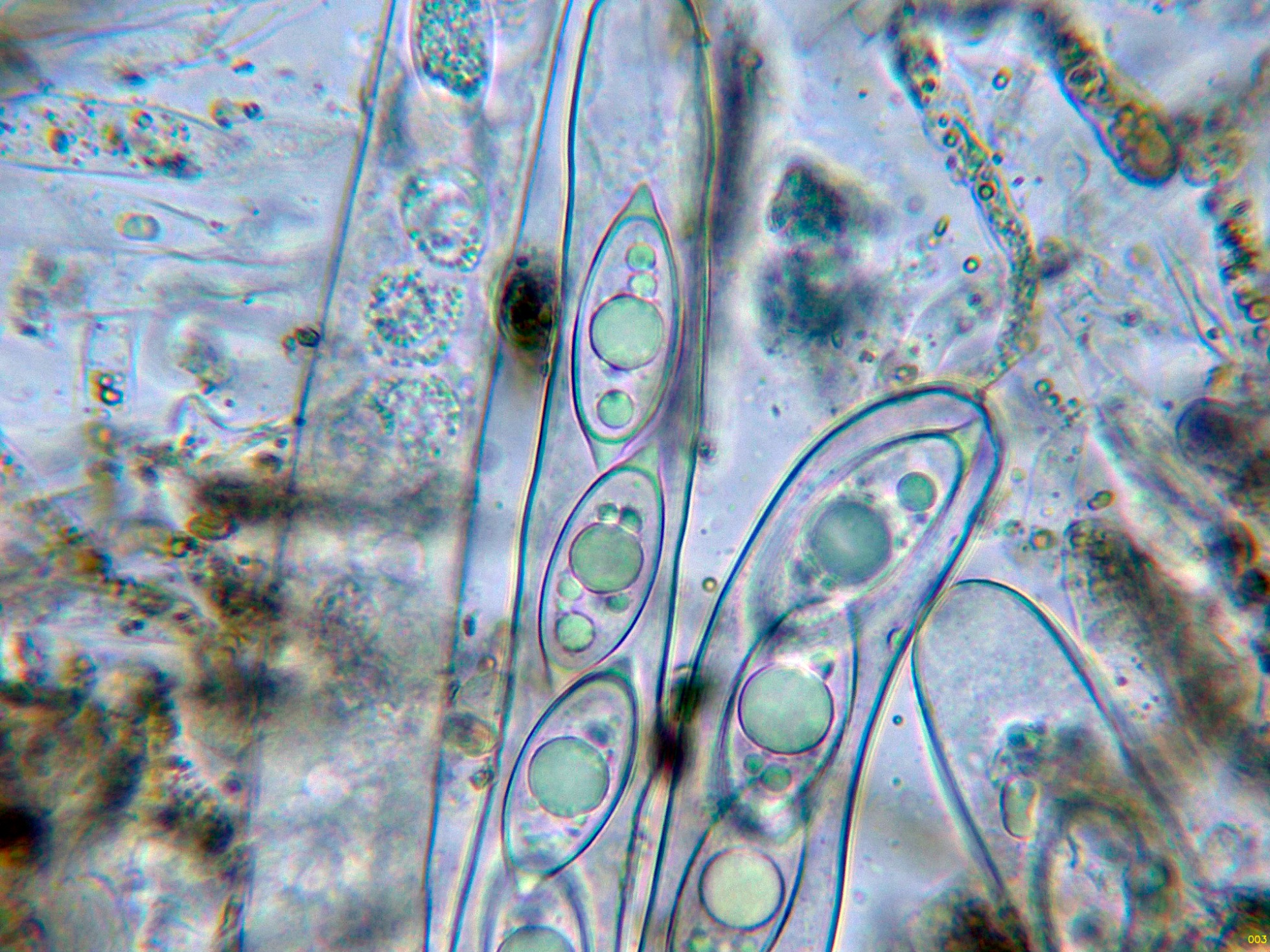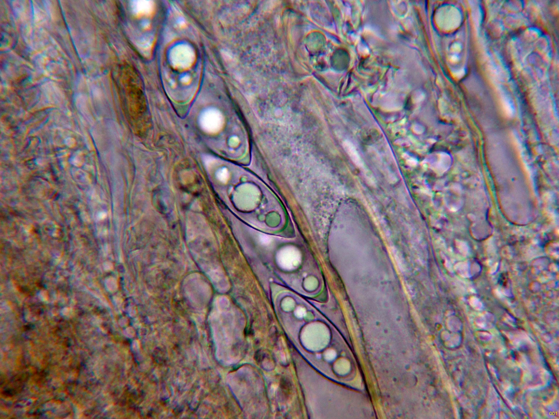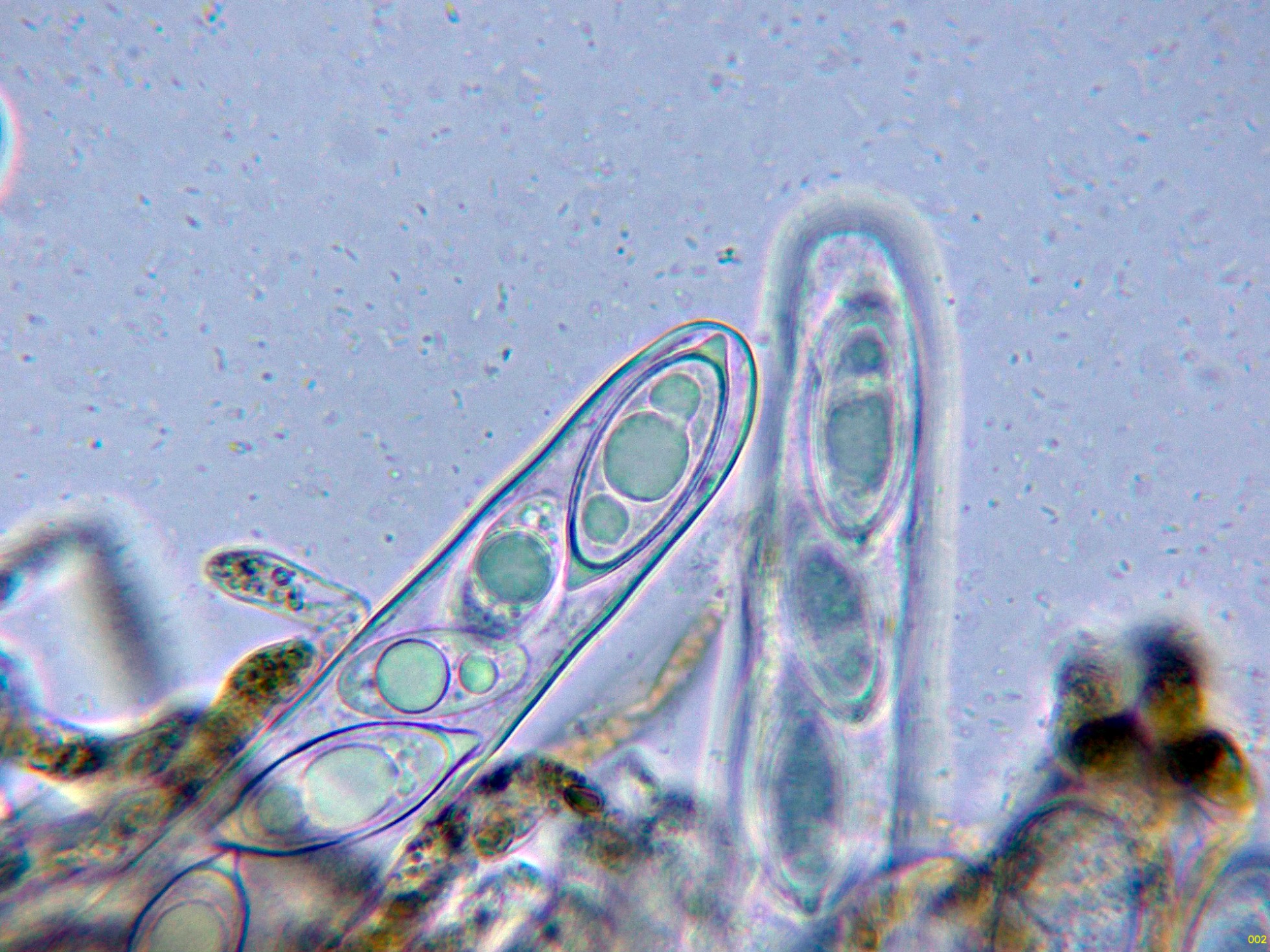 Los ascos en reactivo de Melzer, sin ninguna reacción aparente.