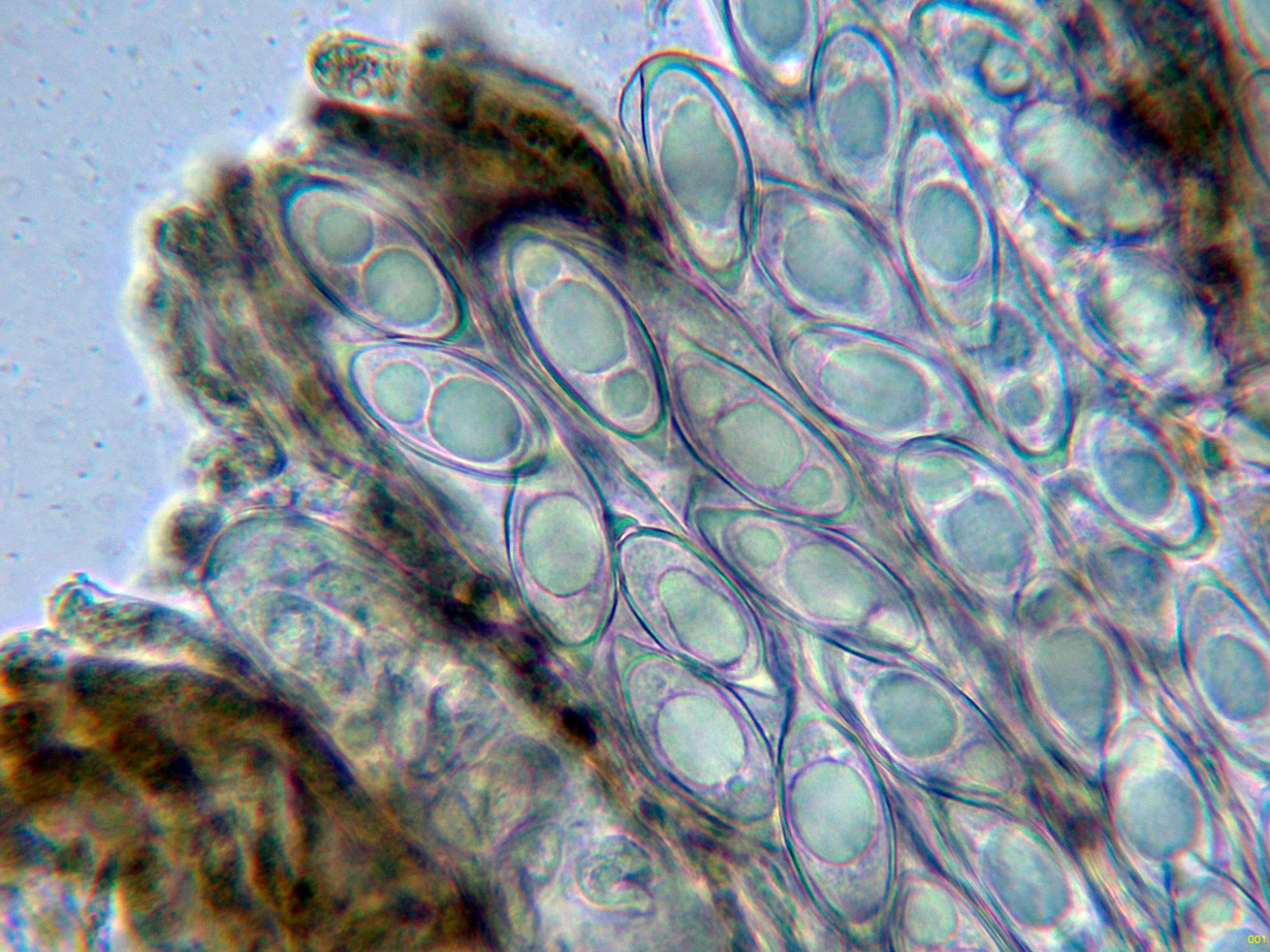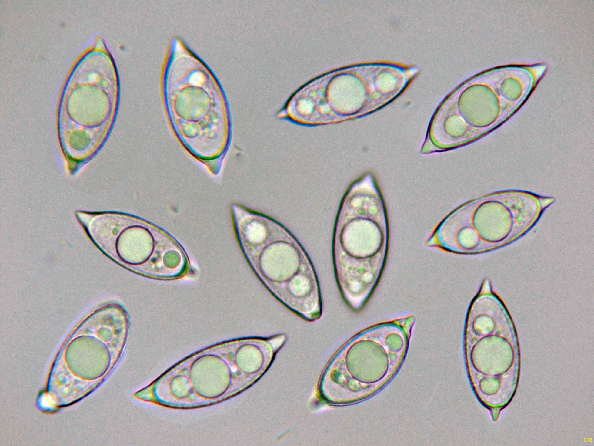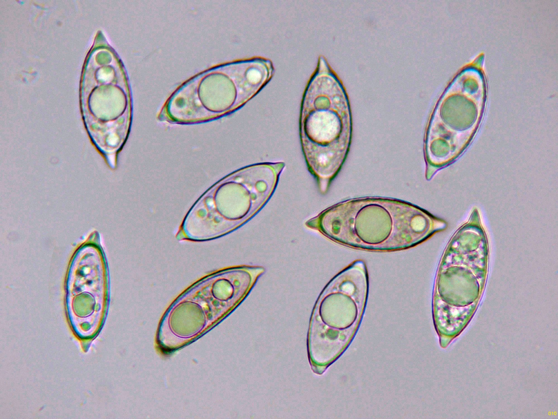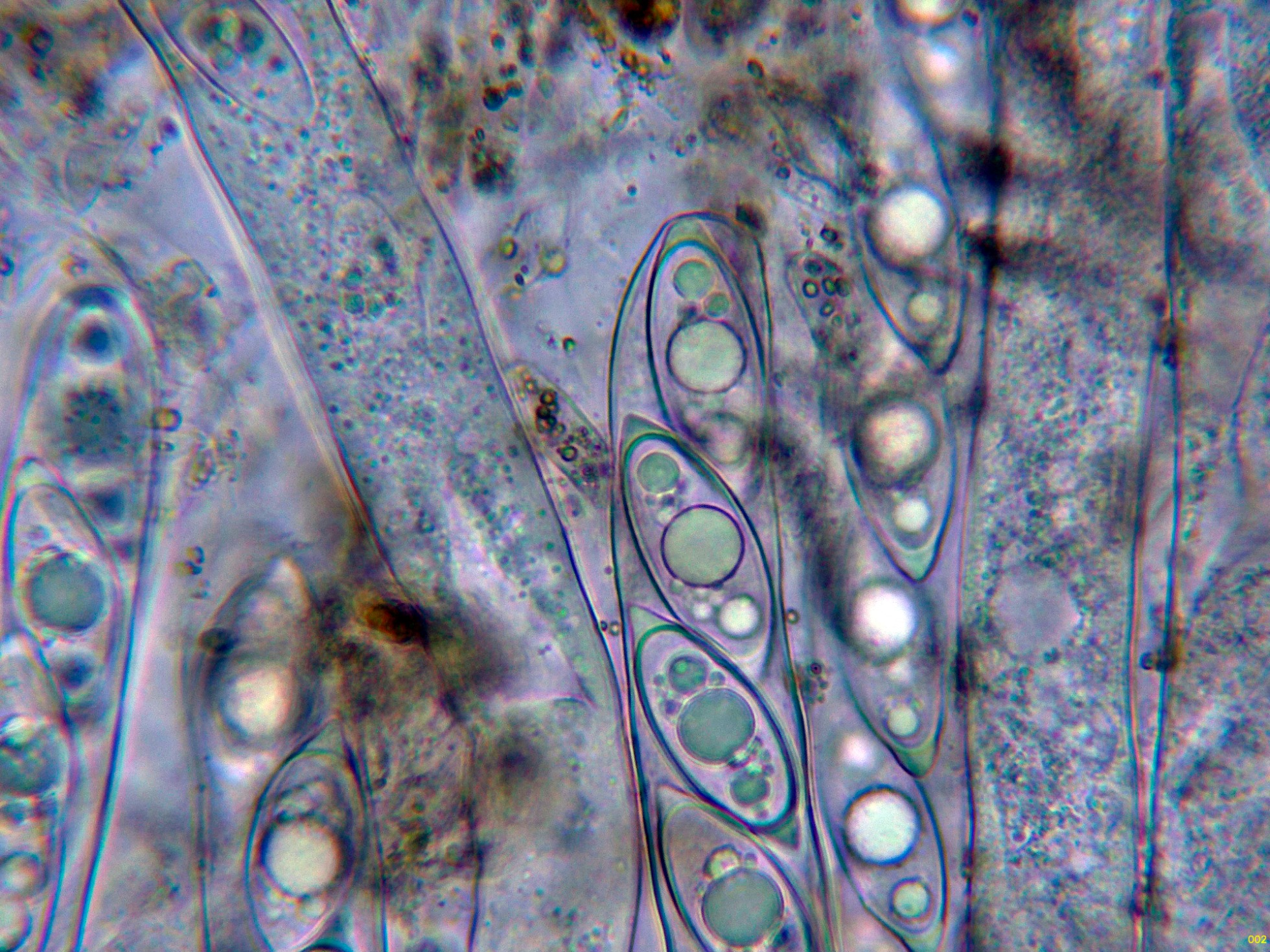 Los ascos en reactivo de Melzer, sin ninguna reacción aparente.