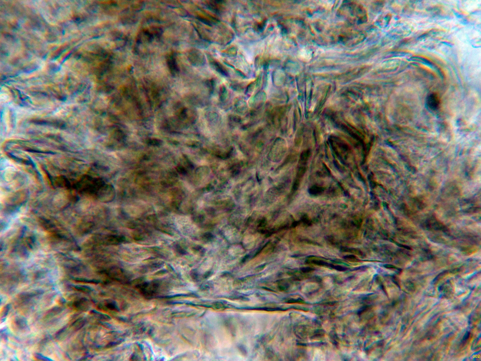 Hifas del excípulo externo en reactivo de Melzer.