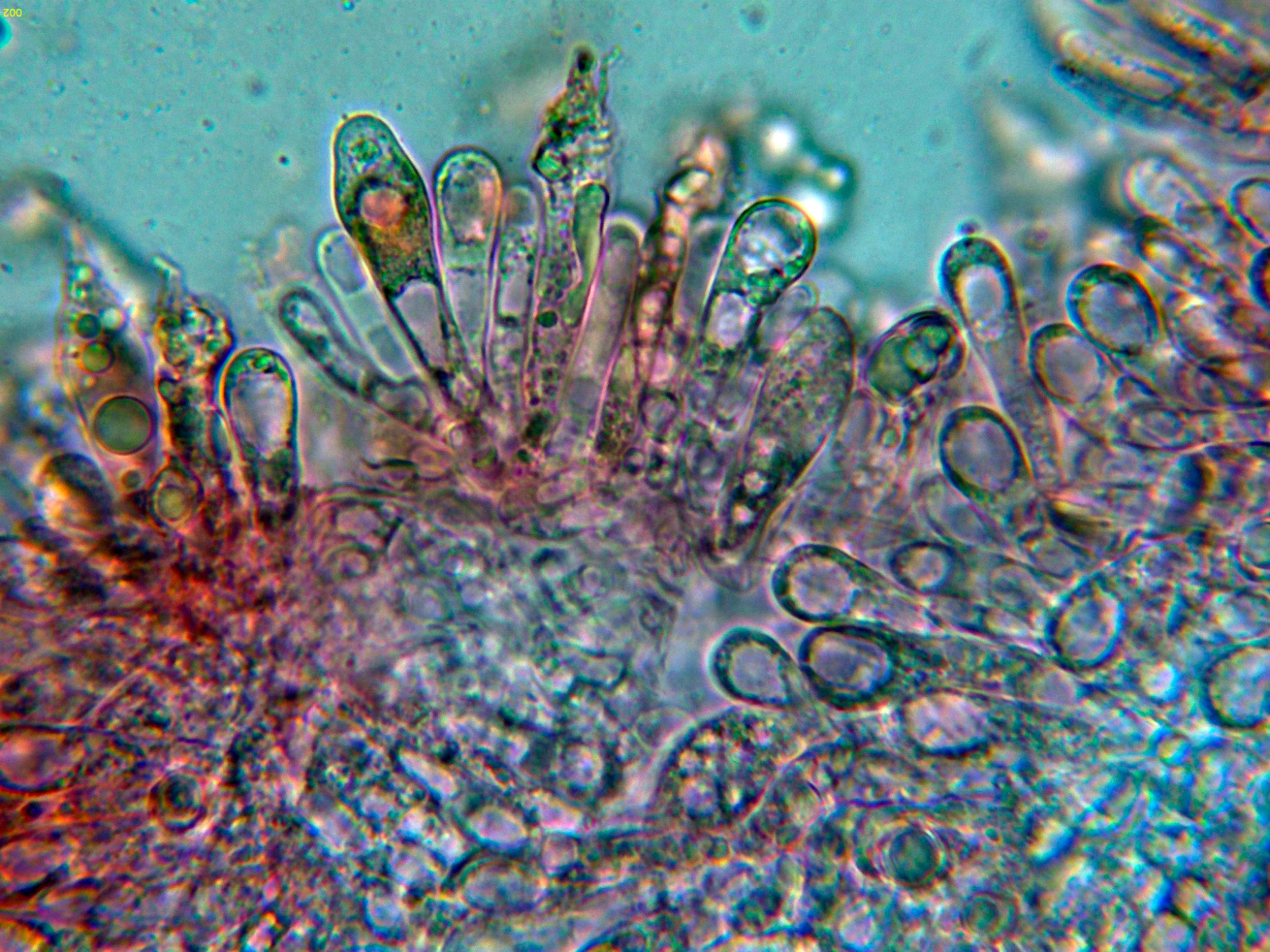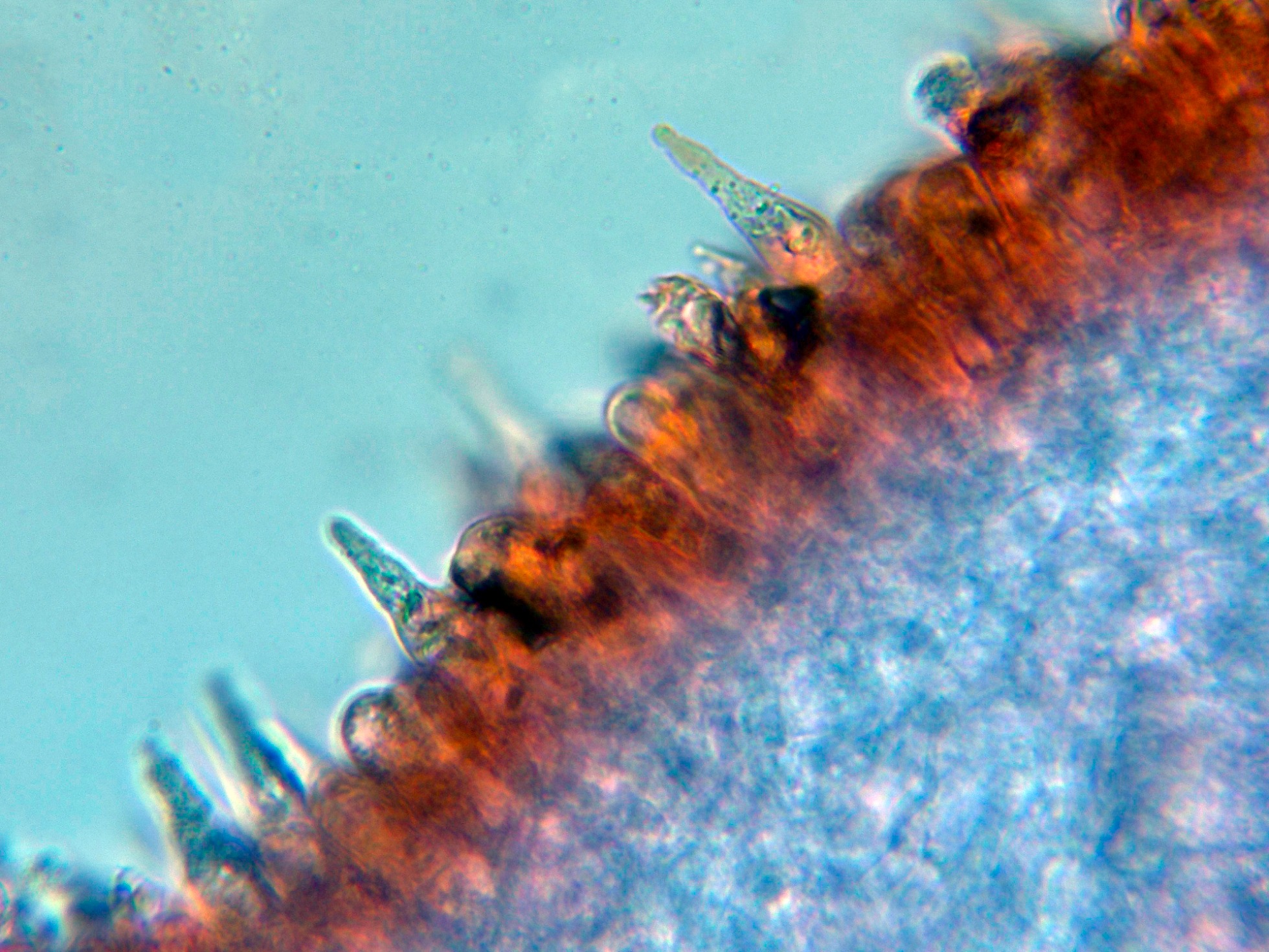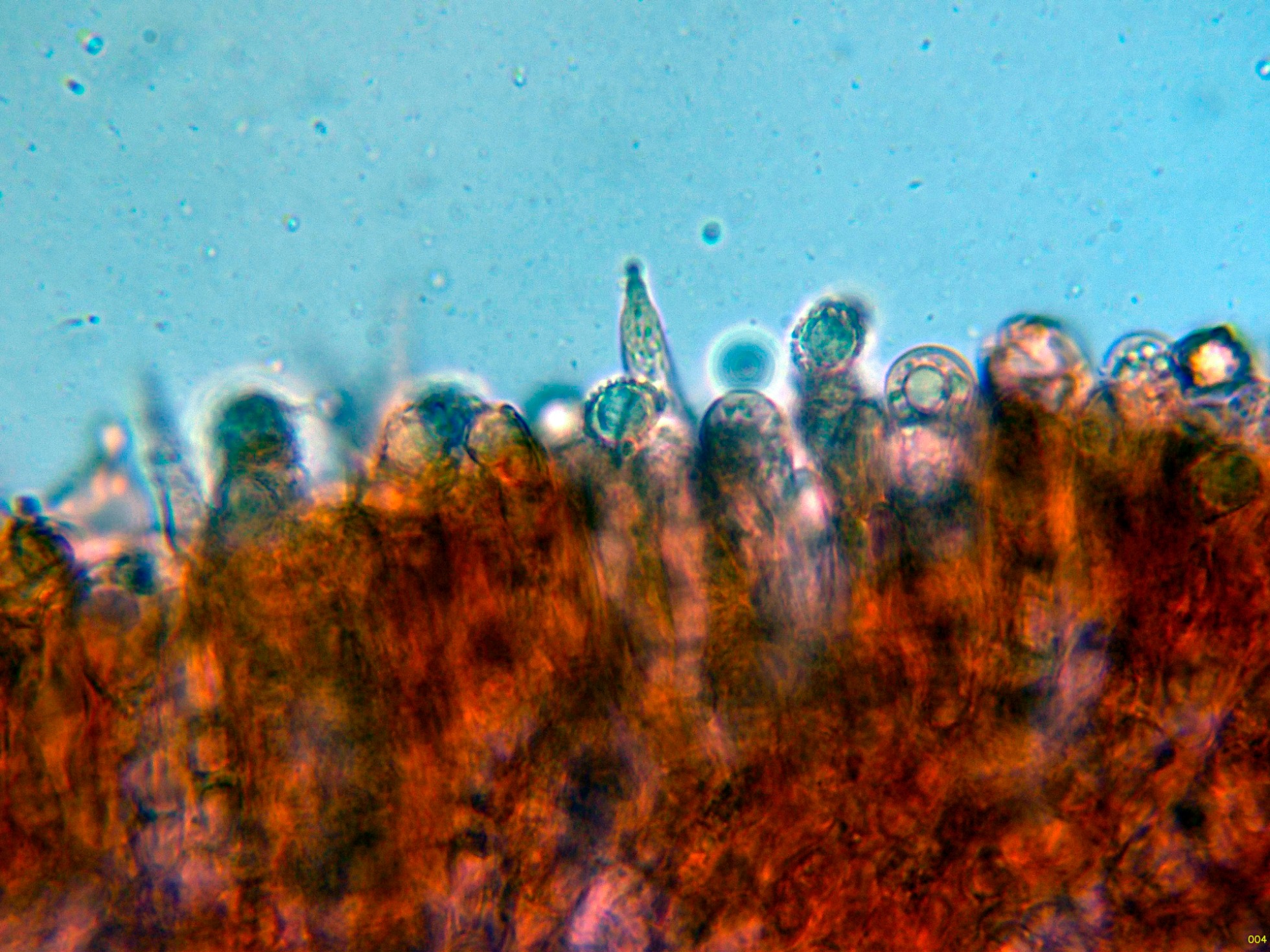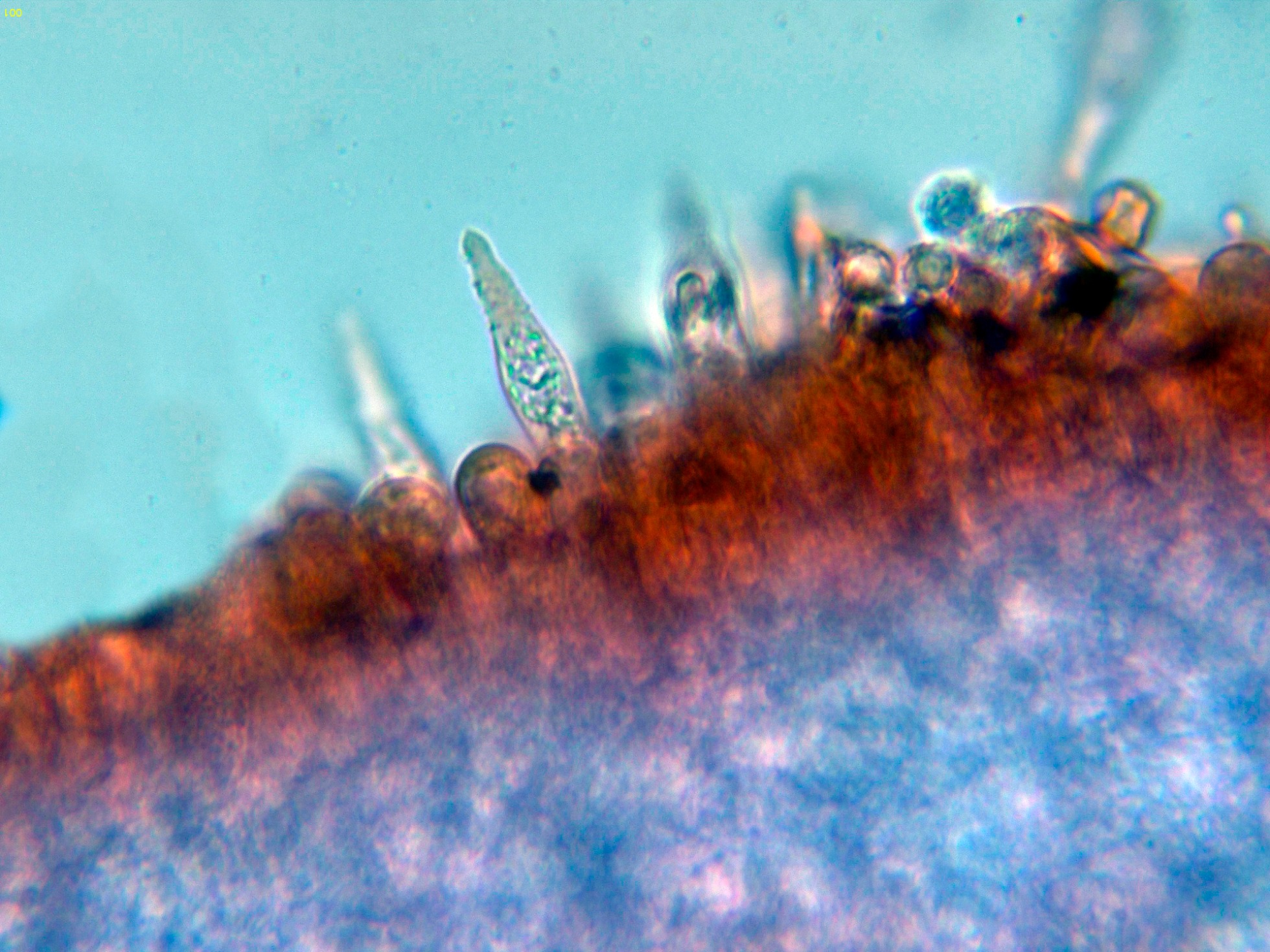 Queilocistidios en Rojo Congo diluido.