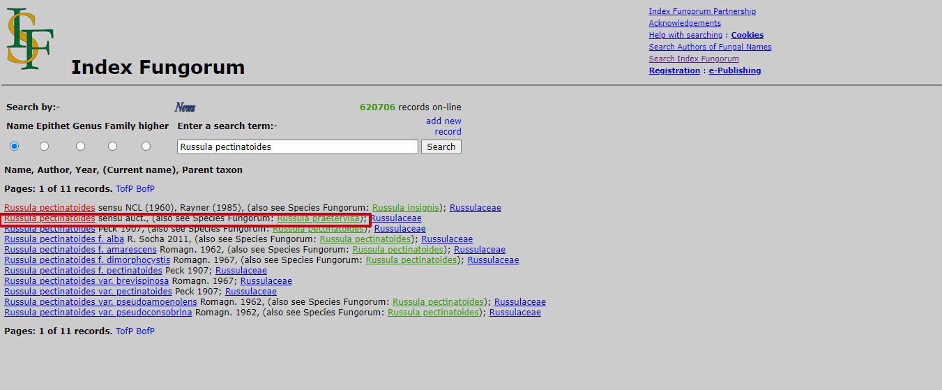 Parece que todos los datos tanto macroscópicos como también a nivel microscópico, entrarían aunque de manera un poco forzada dentro del rango de los del presente estudio, parece ser que a día de hoy ambas especies estarían separadas en base a datos moleculares, ambas con taxón propio, añado una captura de pantalla de Index Fungorum en la que aparece una sinonimia actualmente en desuso.