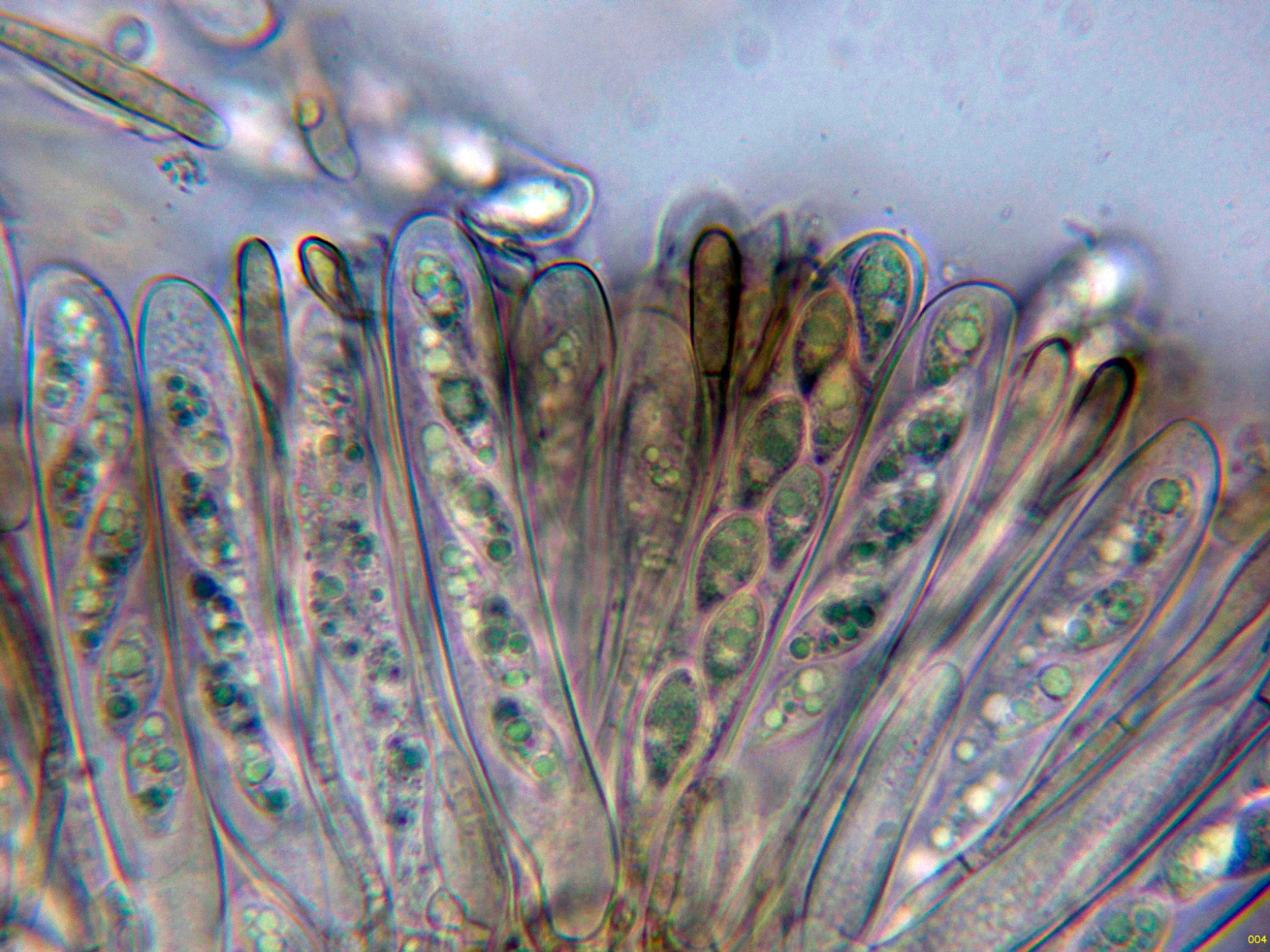 Los ascos en reactivo de Melzer, sin ninguna reacción aparentemente significativa.