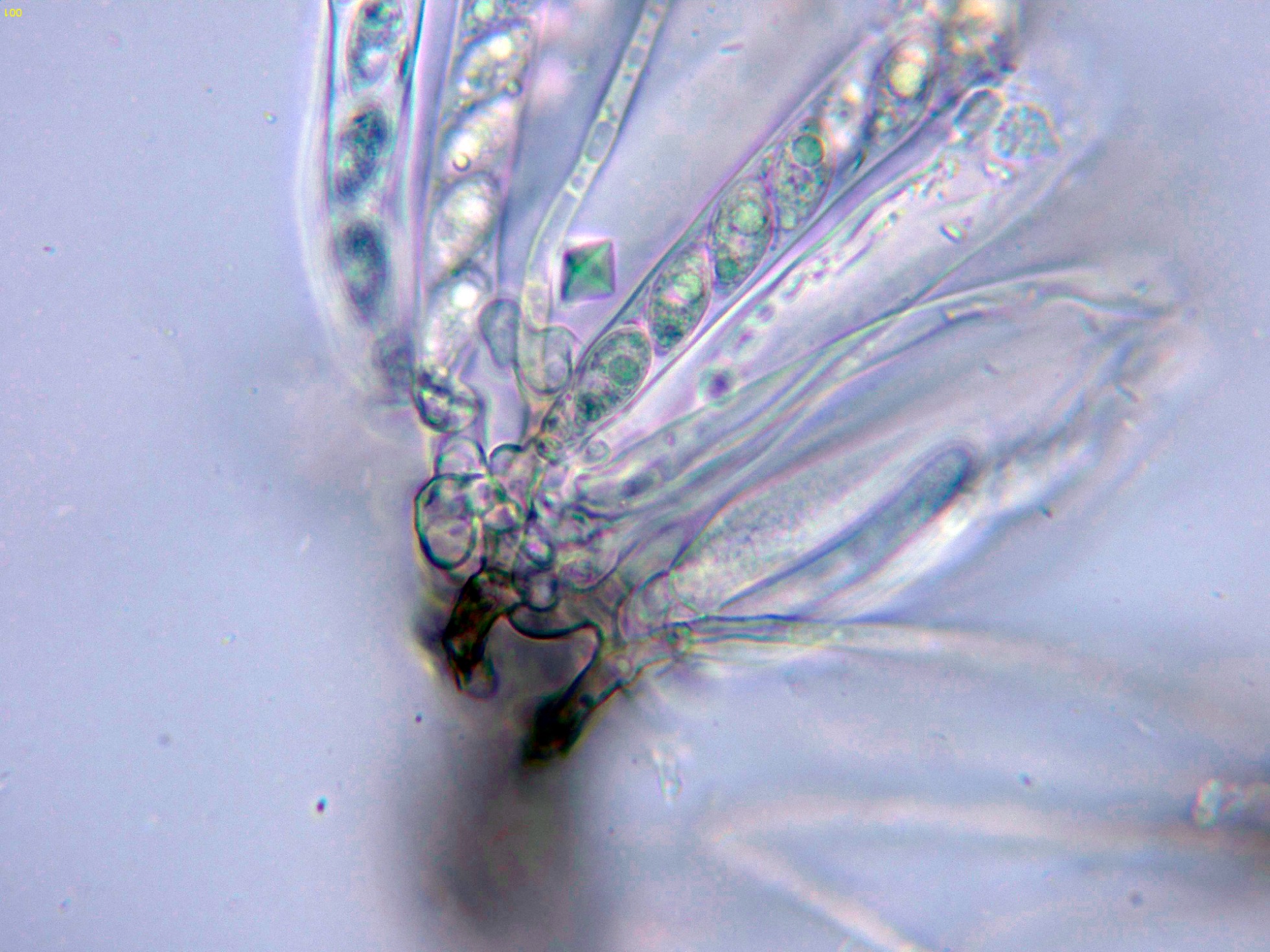 Base de los ascos donde si parece observarse uncínulos.