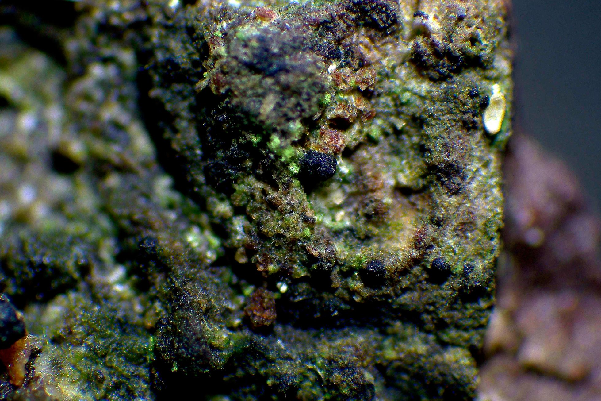 En el mismo tronco que la anterior y compartiendo espacio con la Terana caerulea, tenemos una Capronia, por sus características, las Claves del género me conducen a la Capronia fusispora.