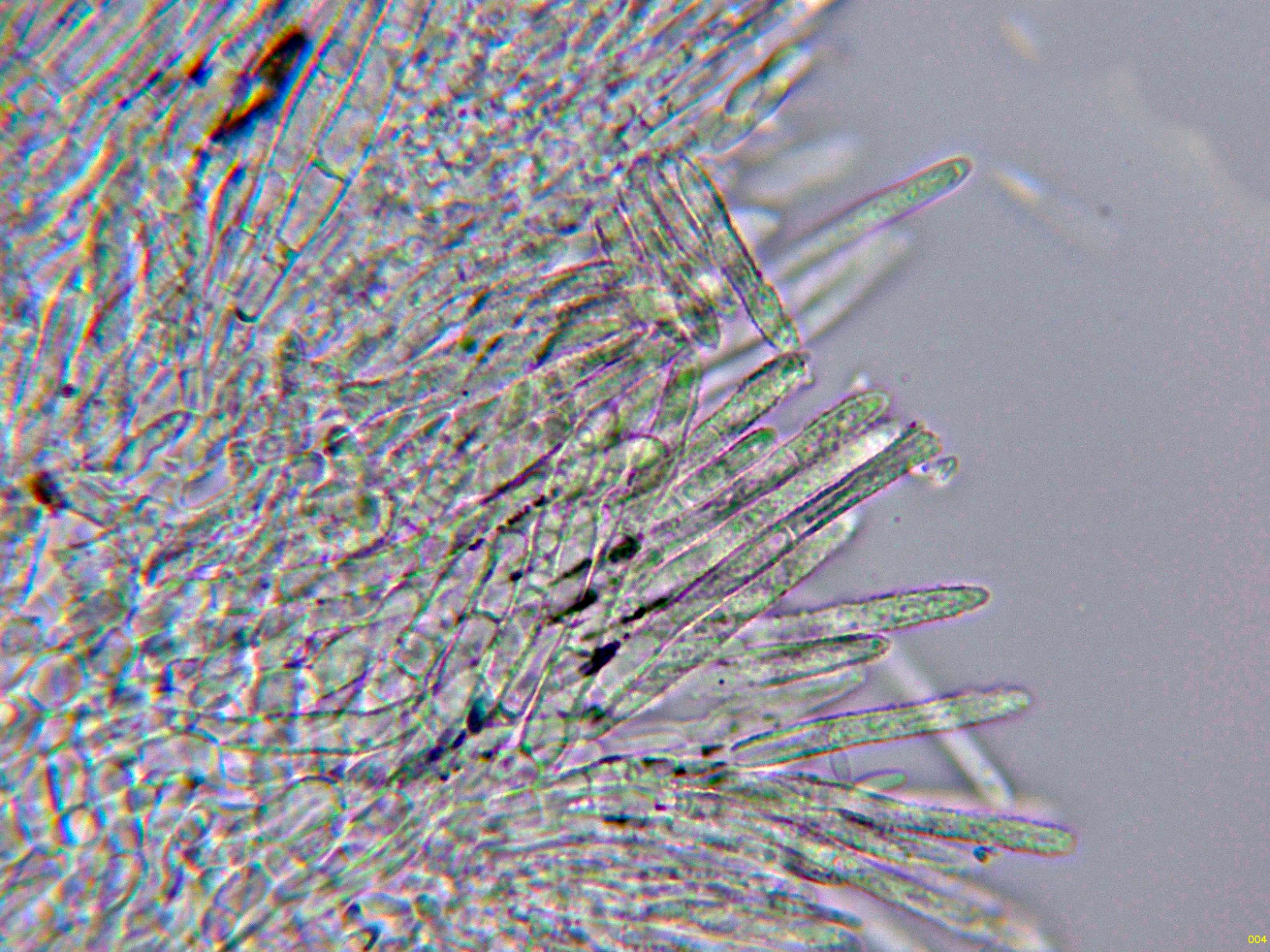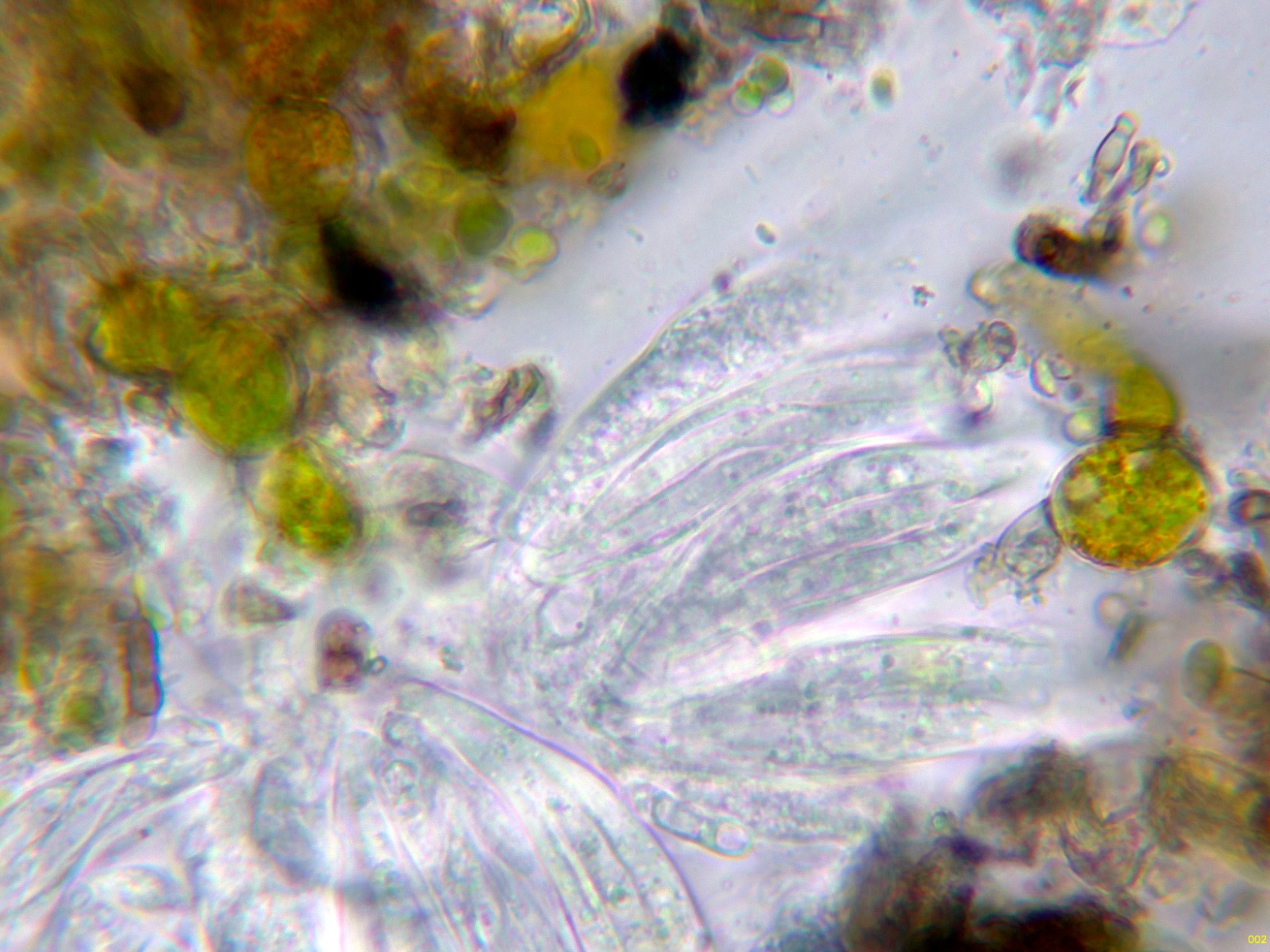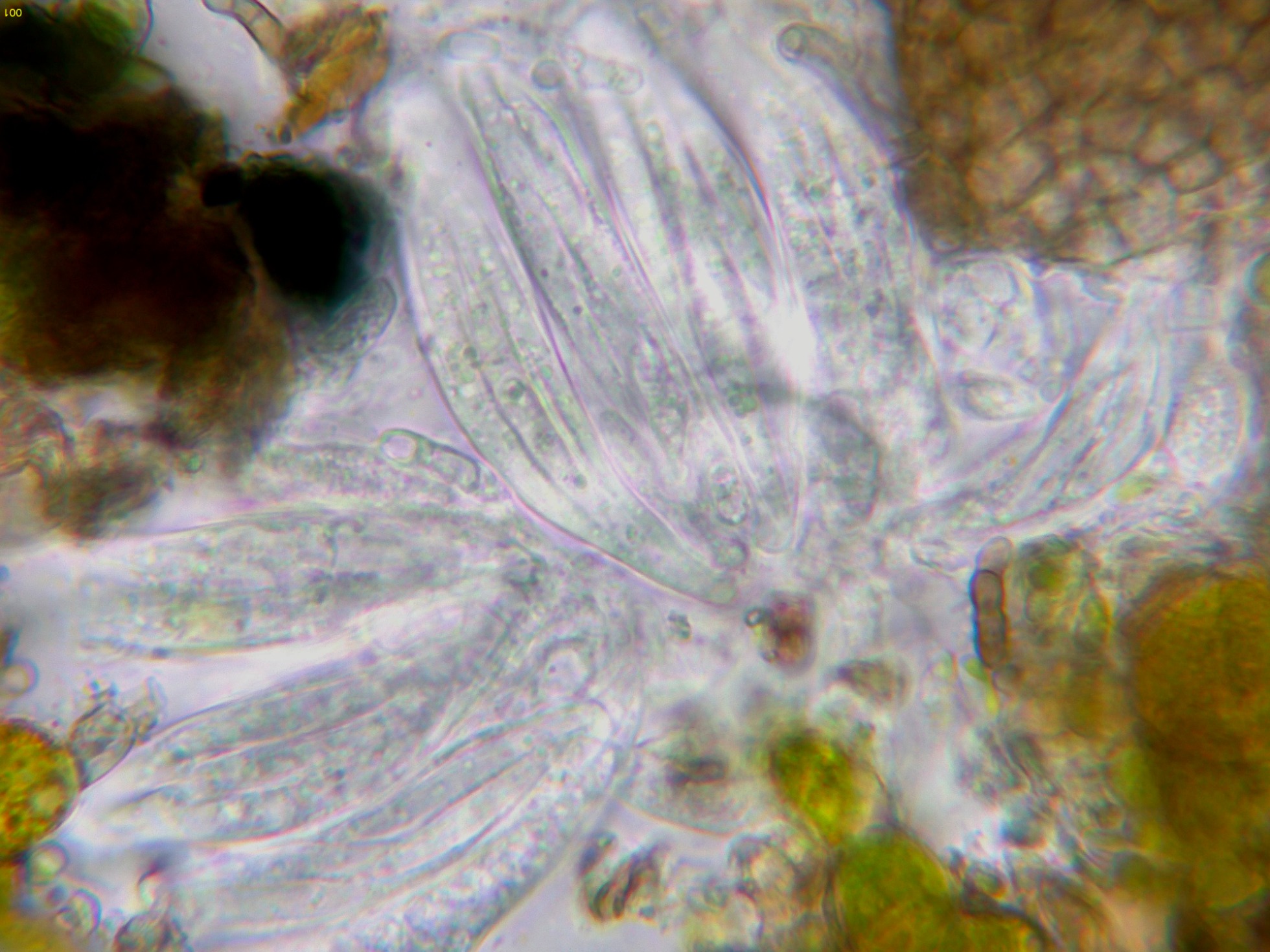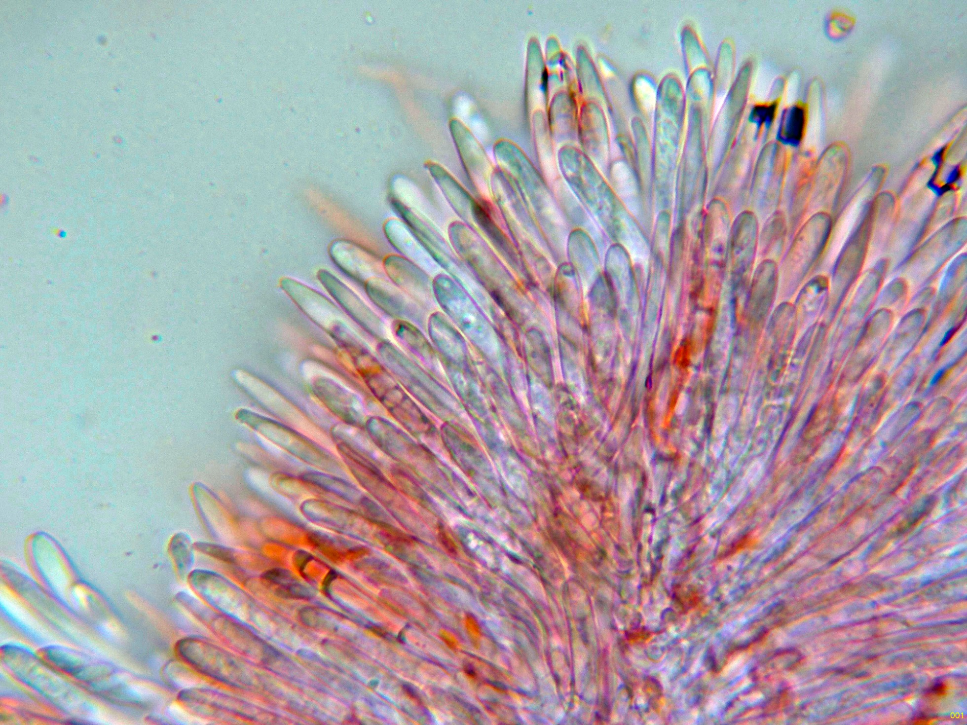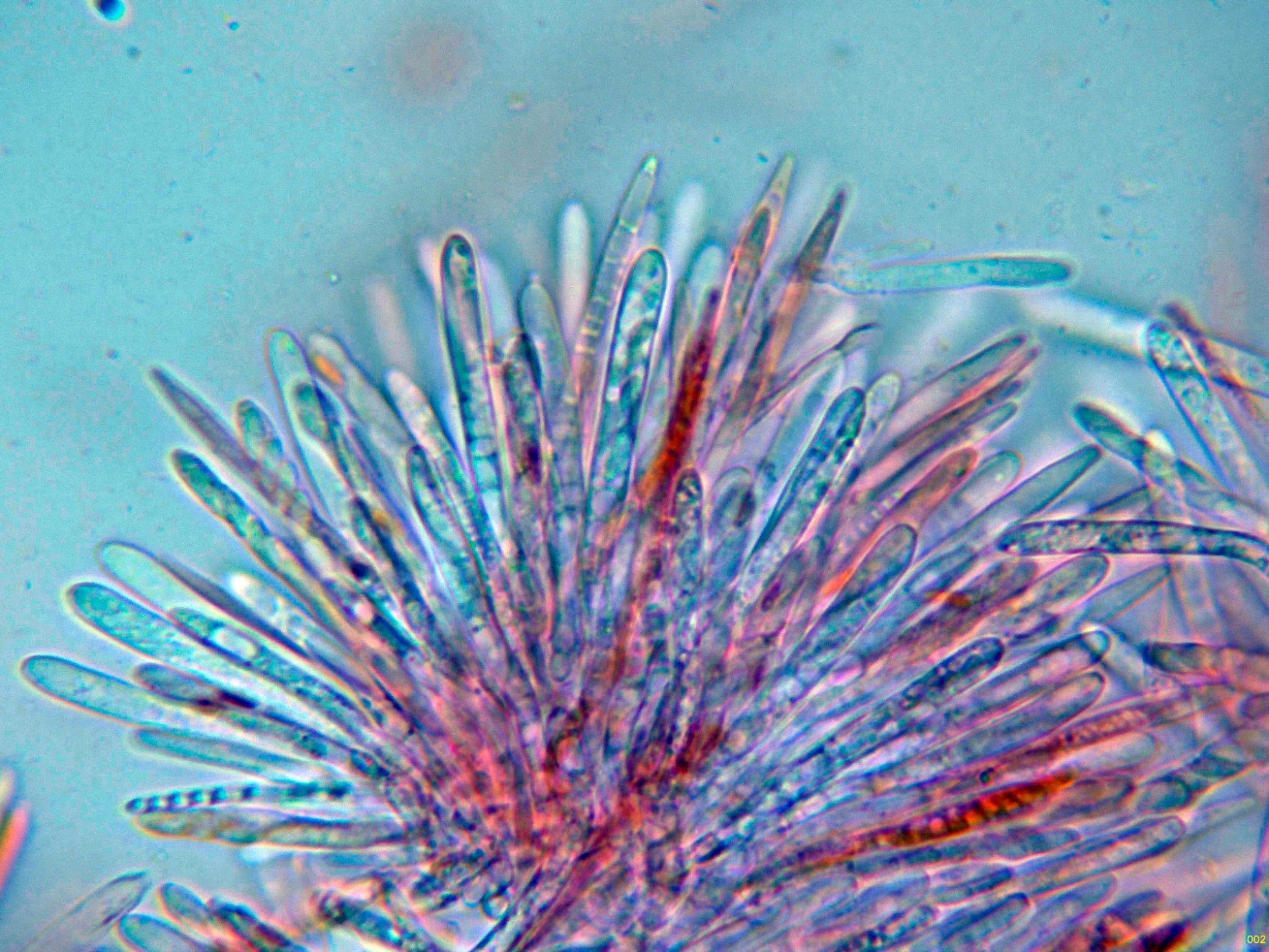 Ascos y paráfisis en Rojo Congo diluido. Los ascos con unas medidas de (40.9) 43.8 - 47.2 (50.2) × (3.8) 4.3 - 4.8 (6) µm.