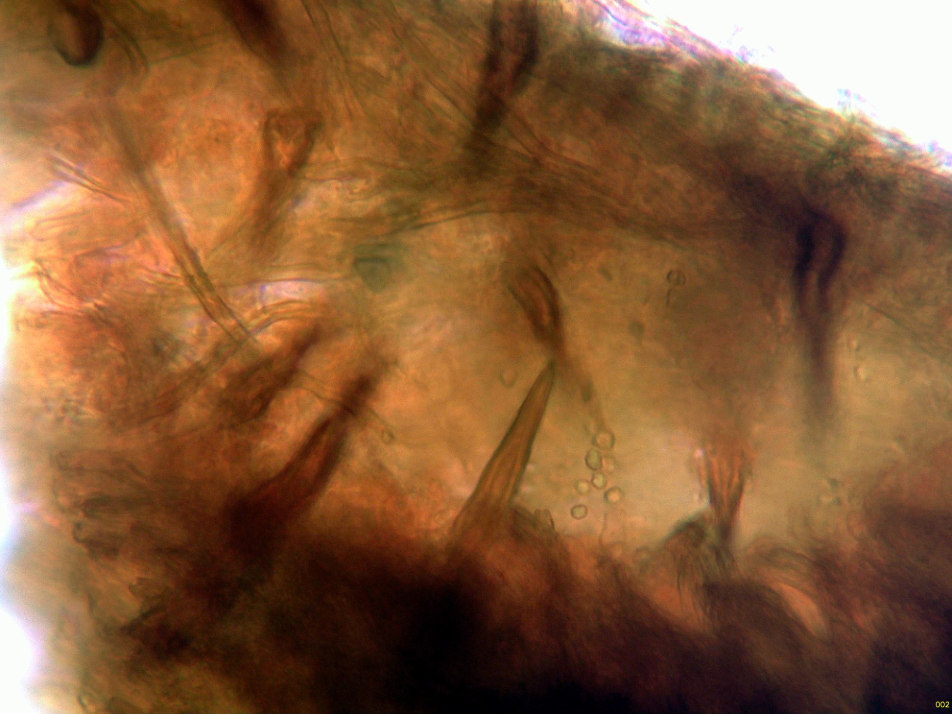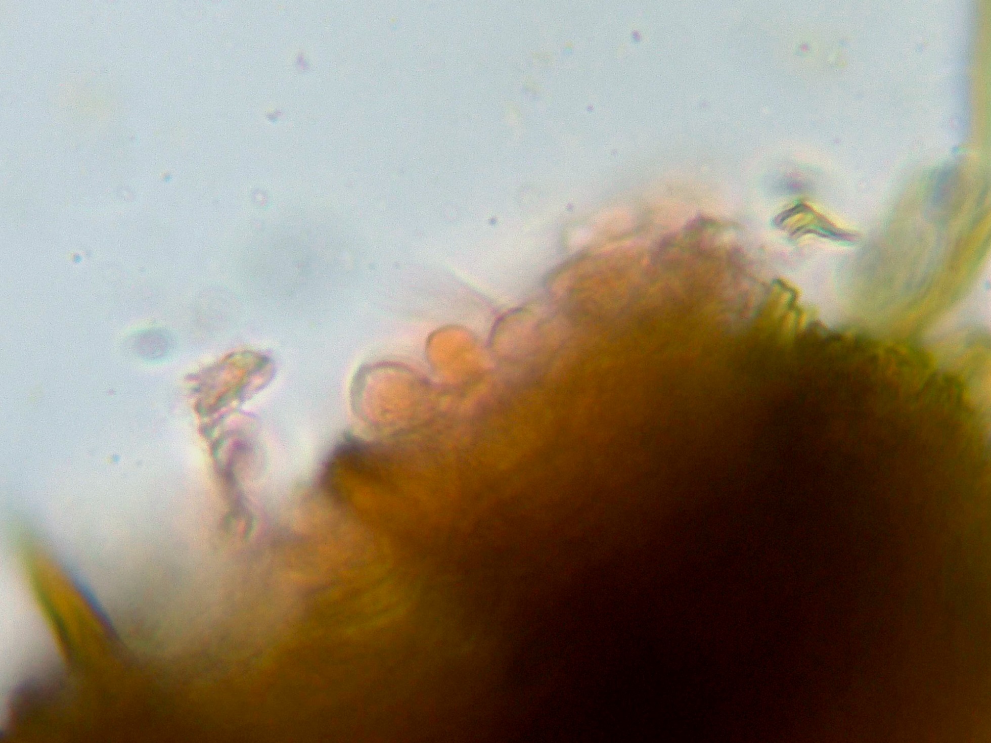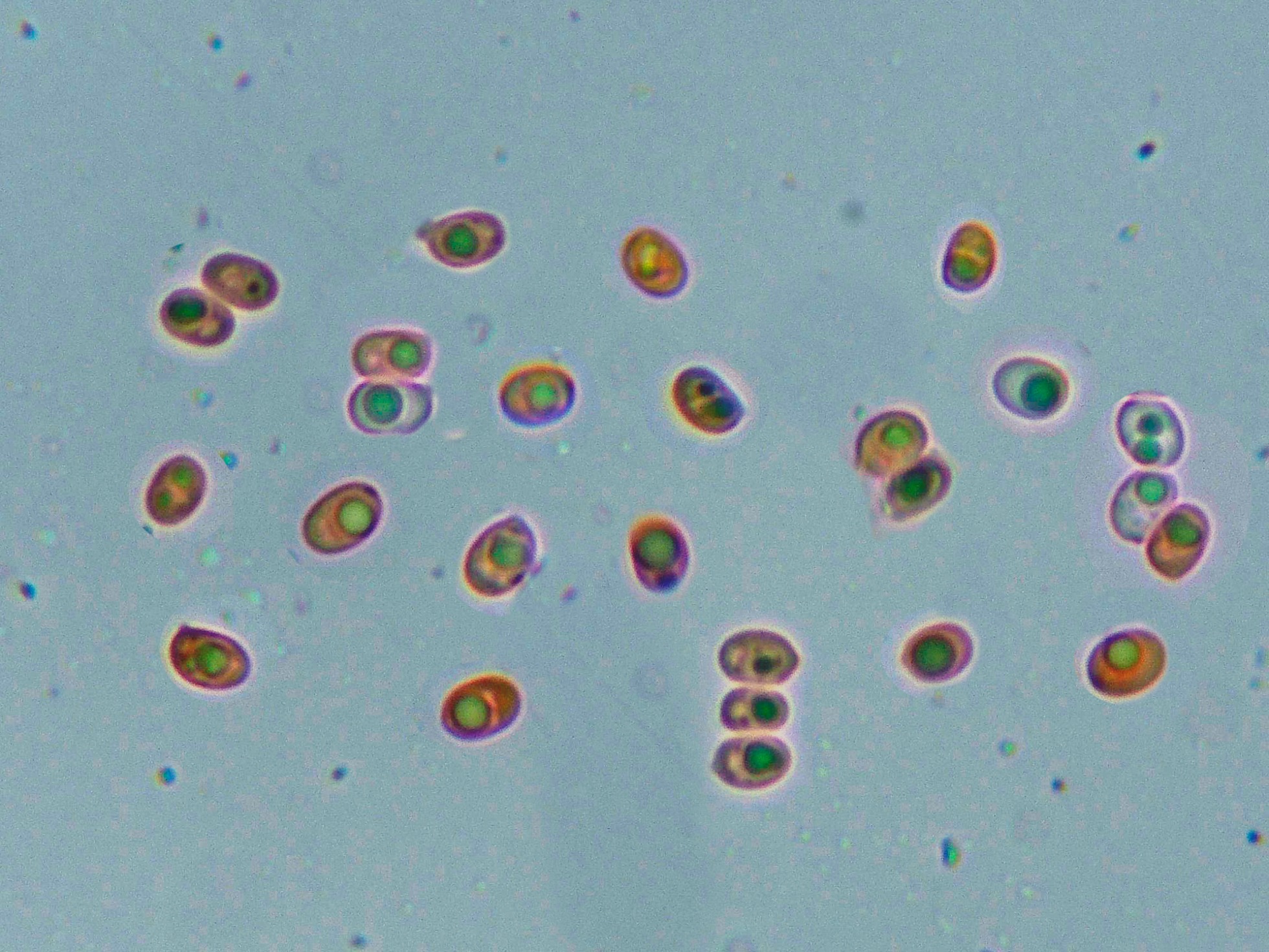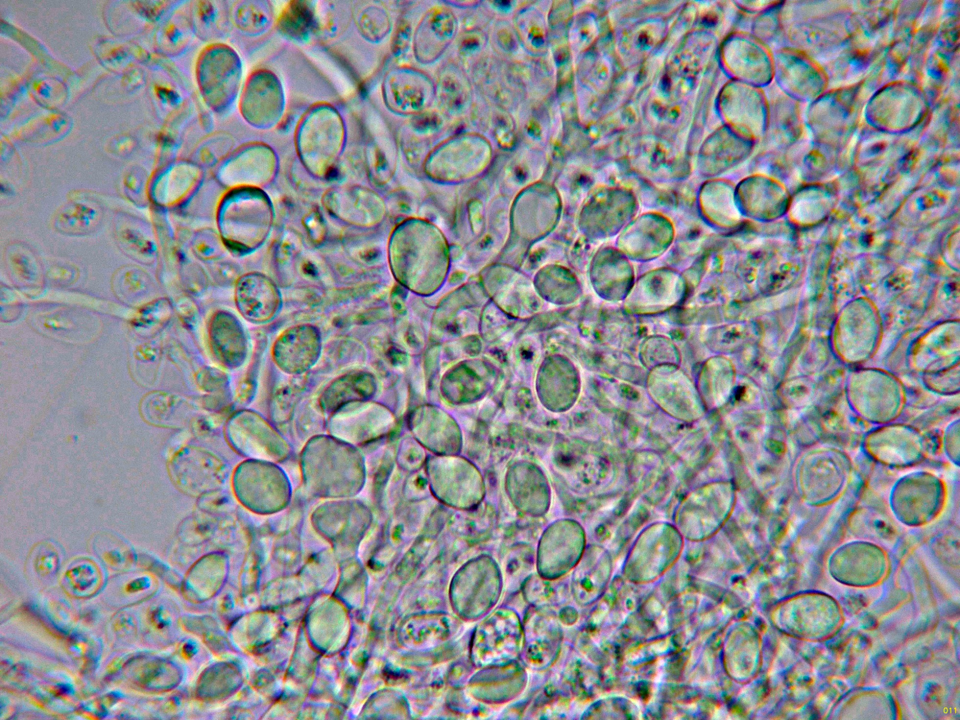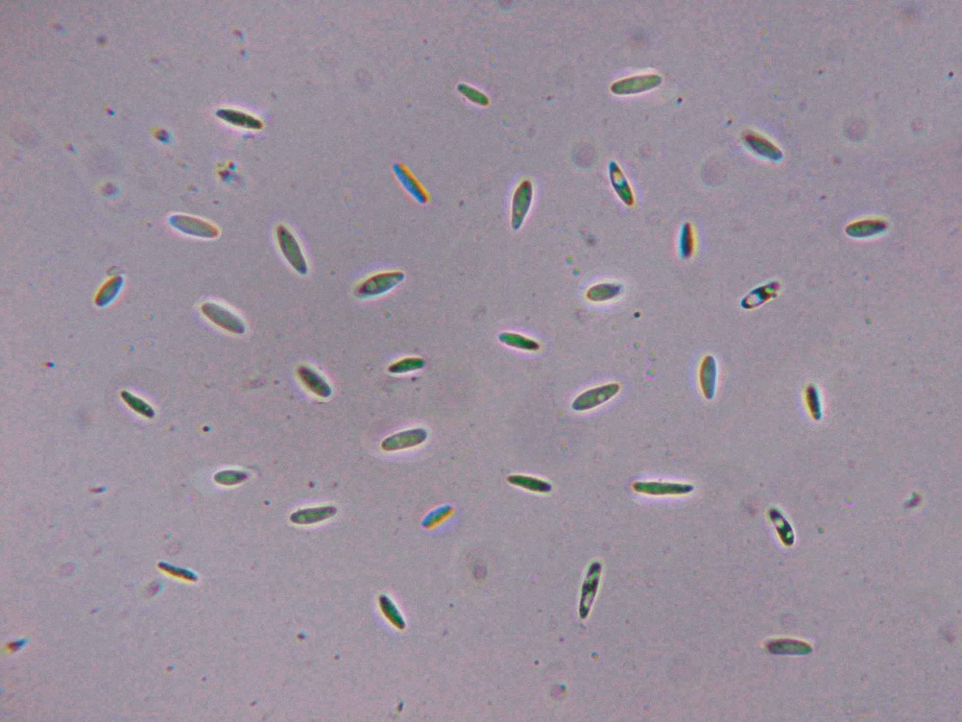 Al estar los basidiomas muy resecos, no pude obtener esporas por esporulación natural y me tuve que conformar con las esporas libres en las muestras.