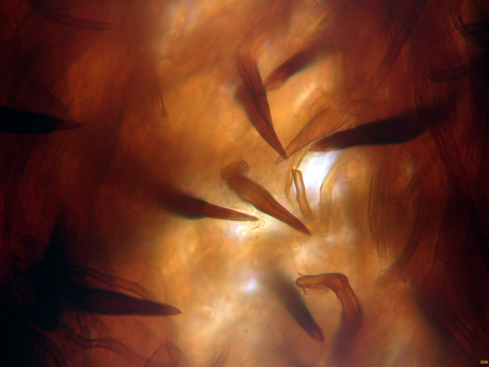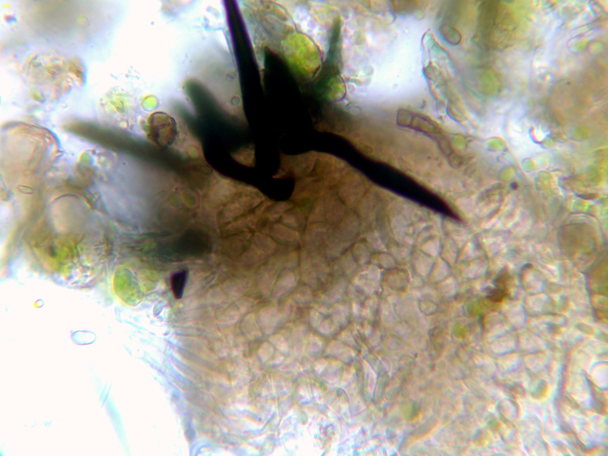 Un Lachnum, al igual que los anteriores completamente reseco, aunque al hidratarlo ya mejoró notablemente su aspecto. Por los datos obtenidos apunta claramente a Lachnum fasciculare.