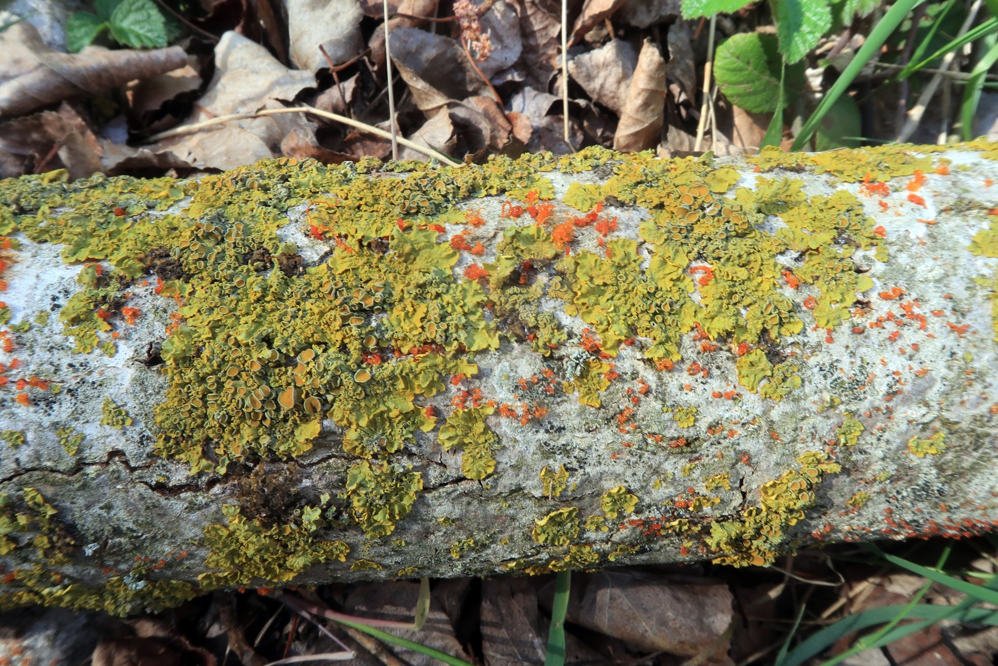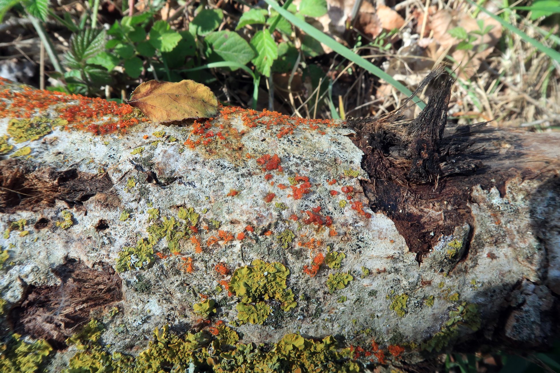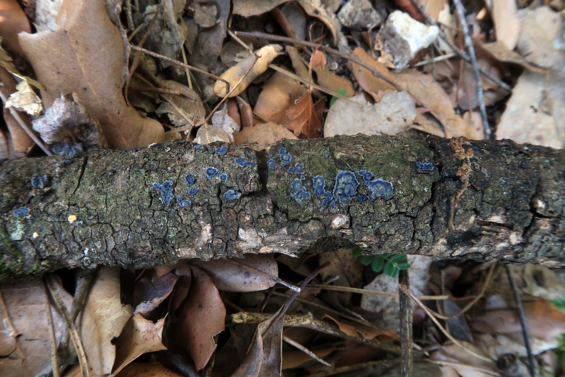 Aunque un poco reseca, sobre la corteza de un tronco tumbado del suelo, vistosa como siempre tenemos la Terana coerulea.