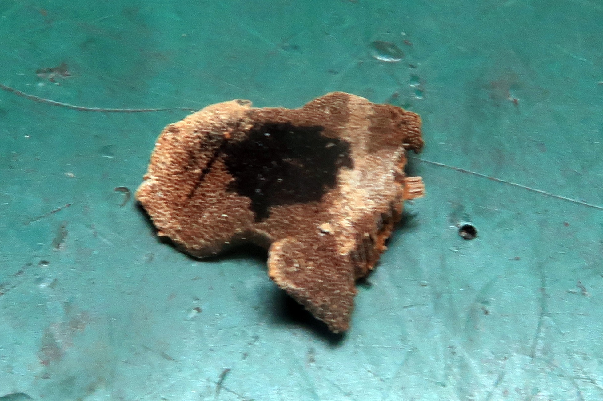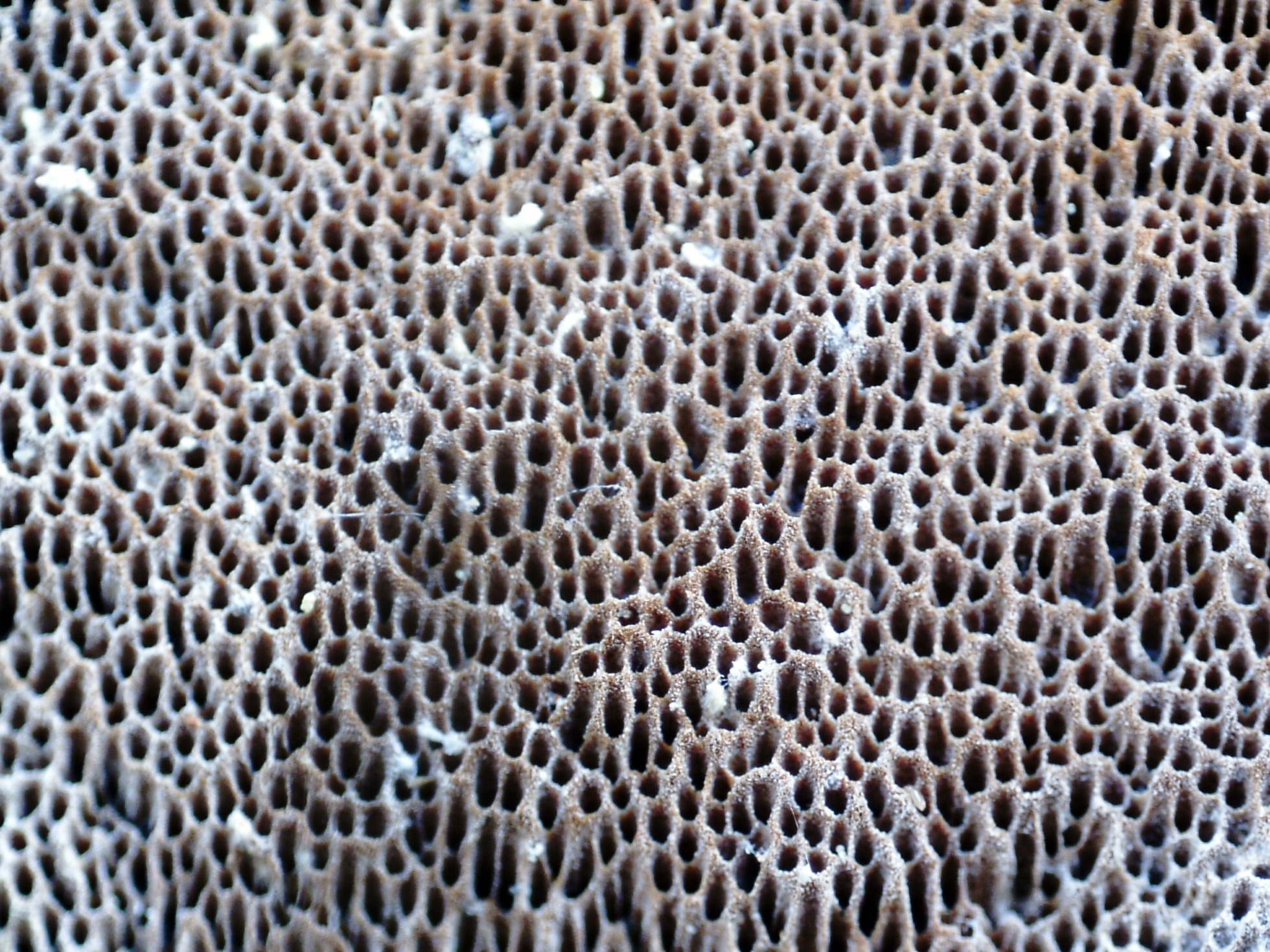 Superficie poroide que reacciona a negro al aplicar KOH.