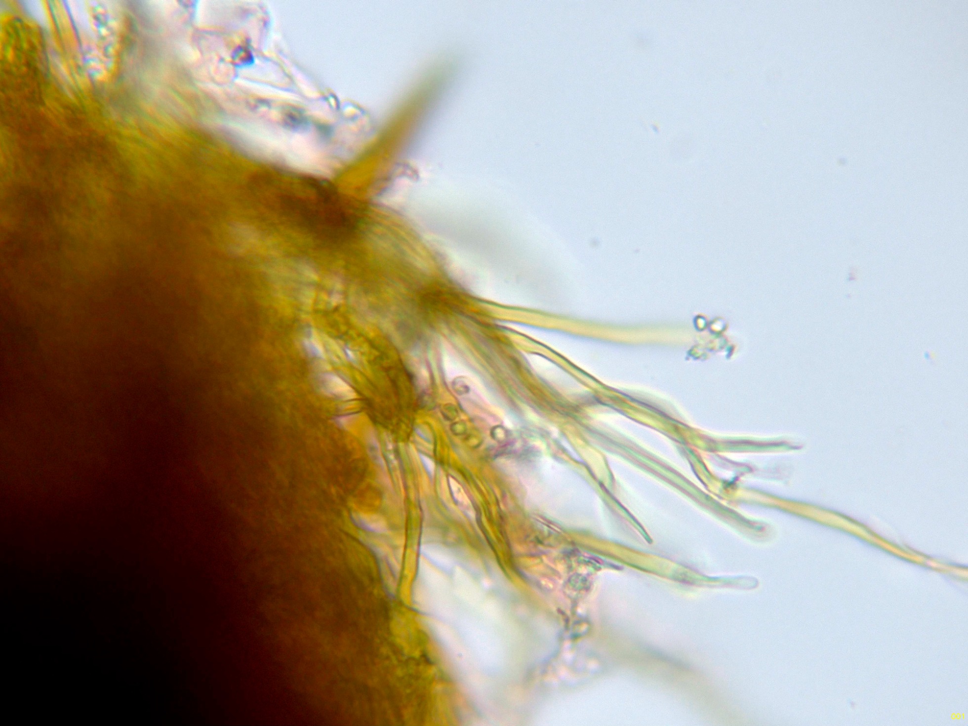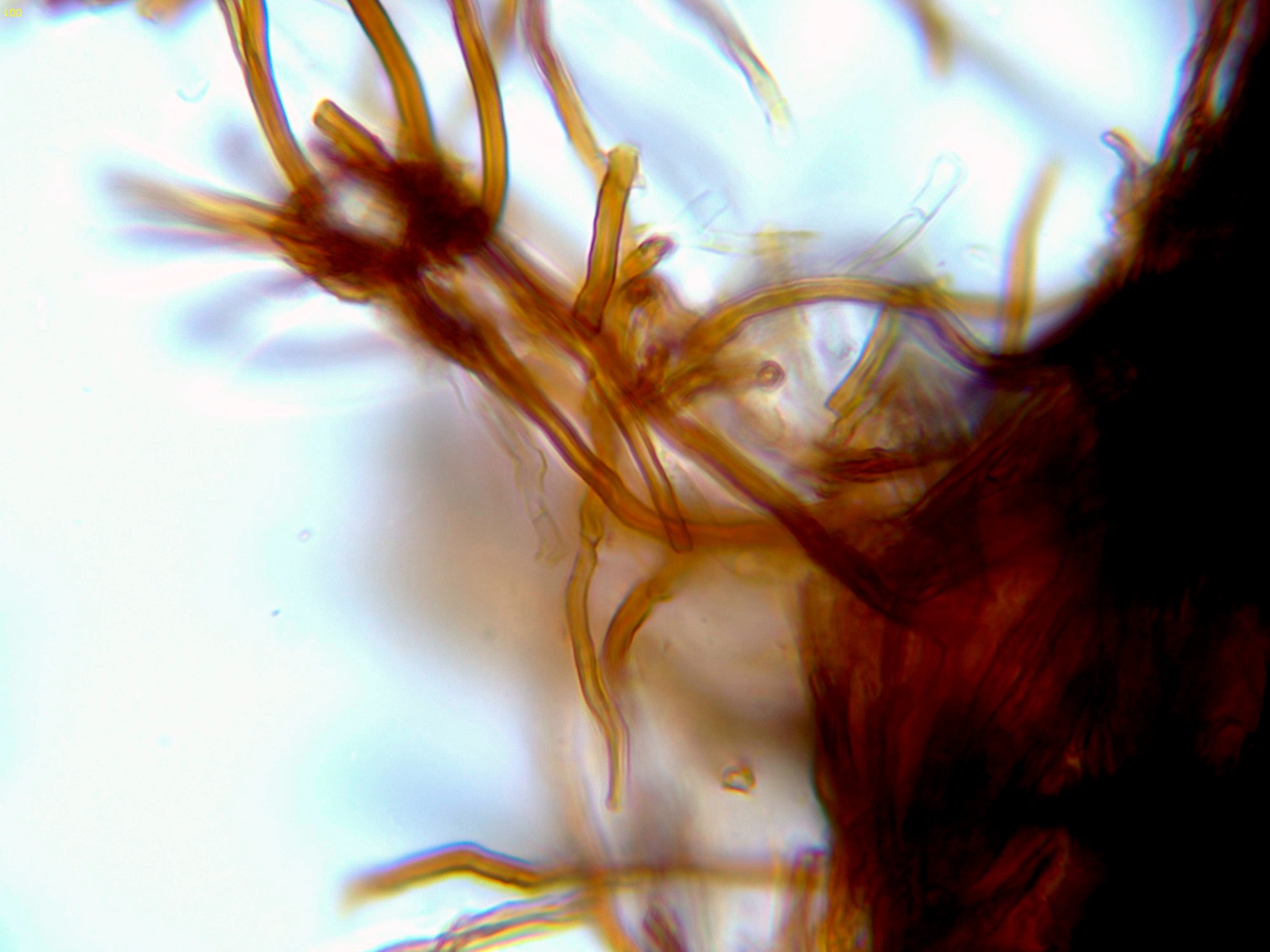 Las hifas subiculares en KOH, en este medio oscurecen a marrón.