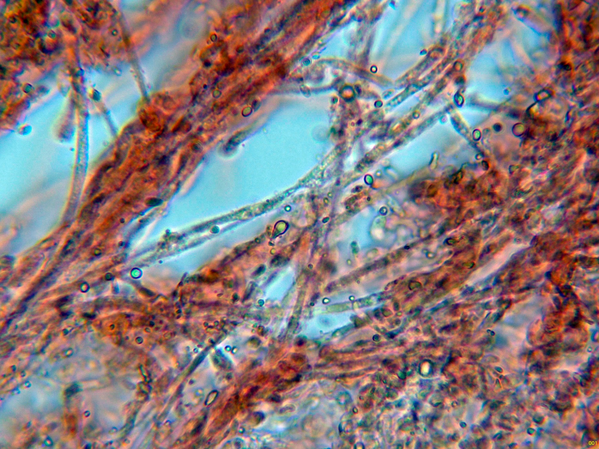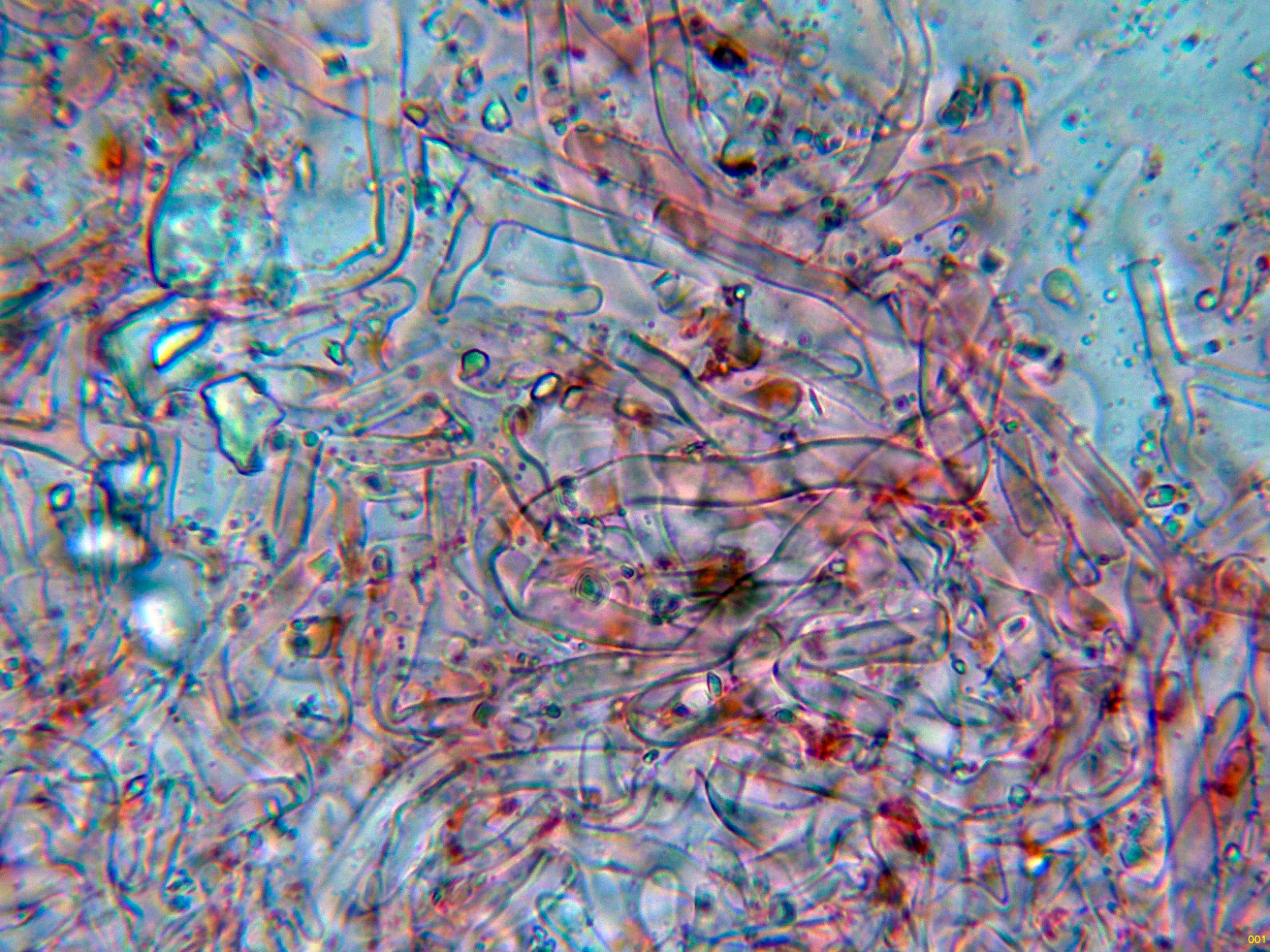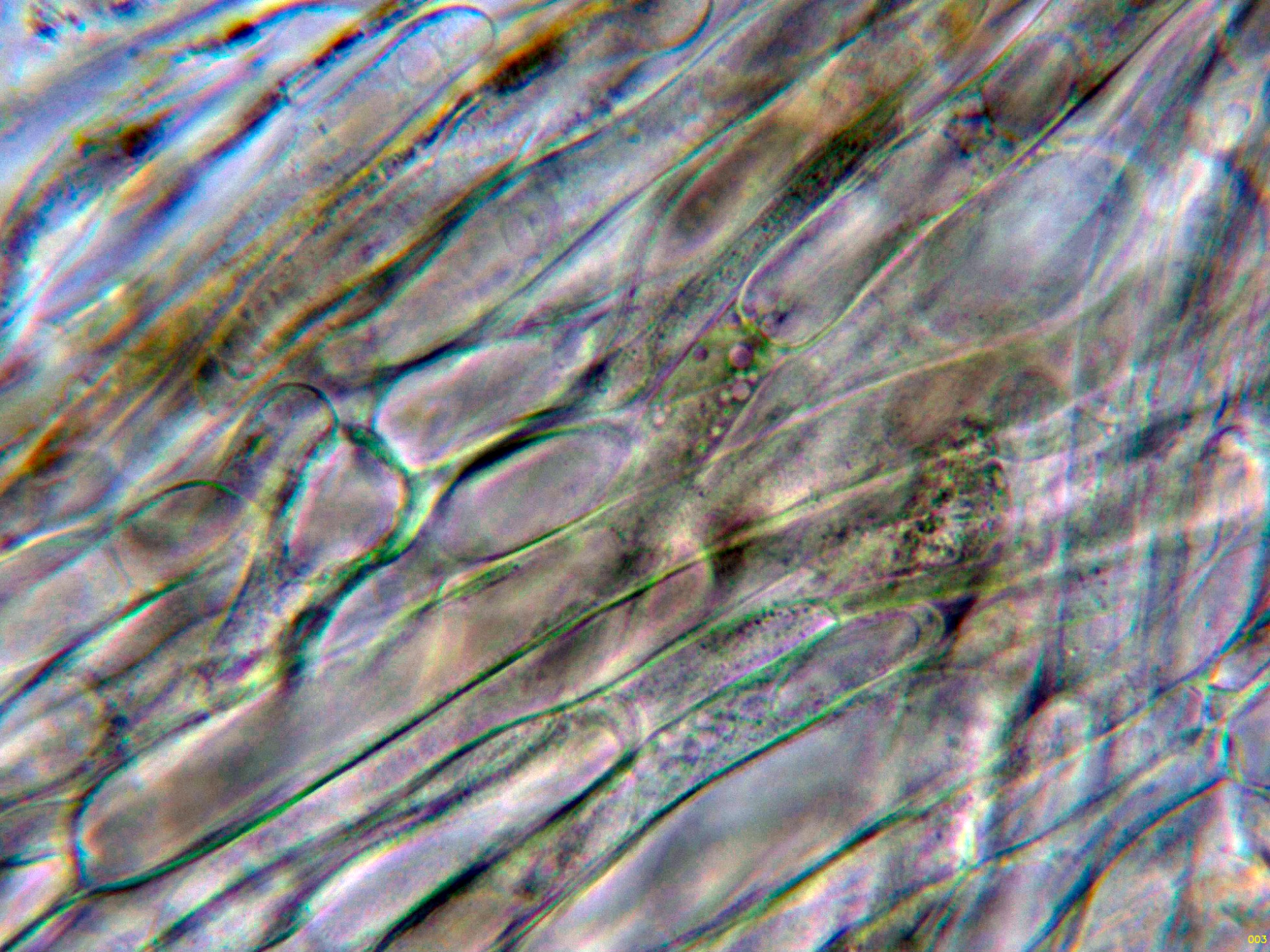 Y por debajo de las anteriores, las hifas de la subpellis en agua, prácticamente idénticas a las de la suprapellis.