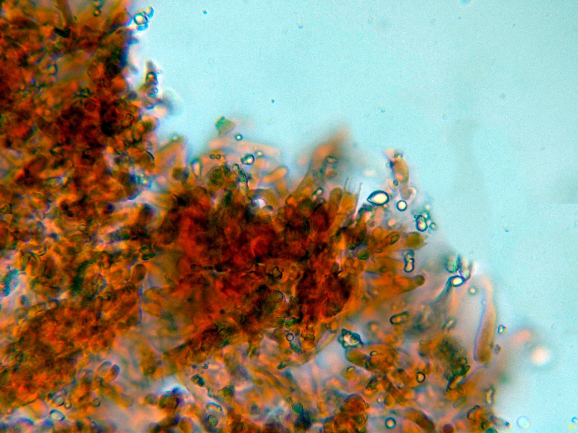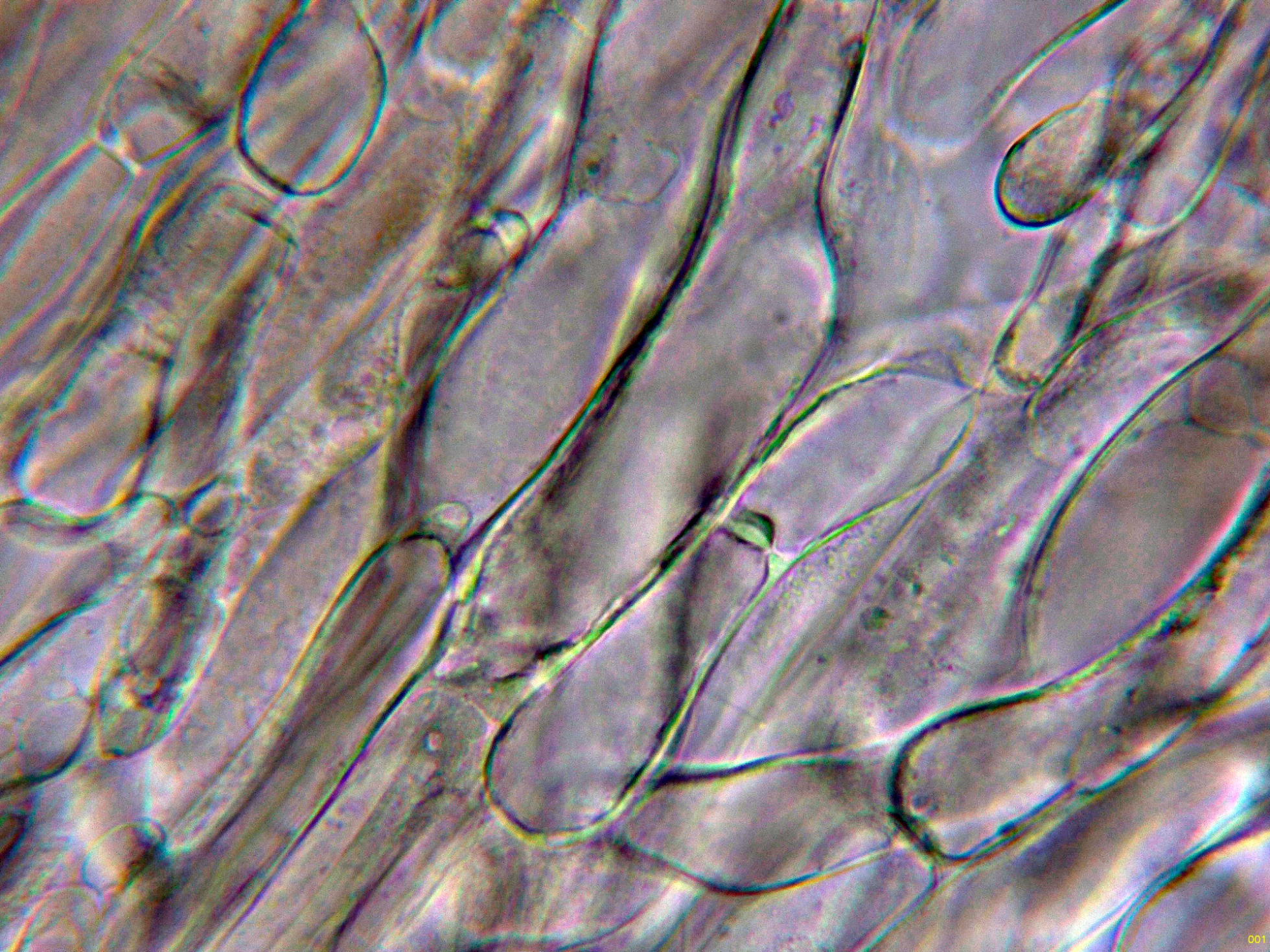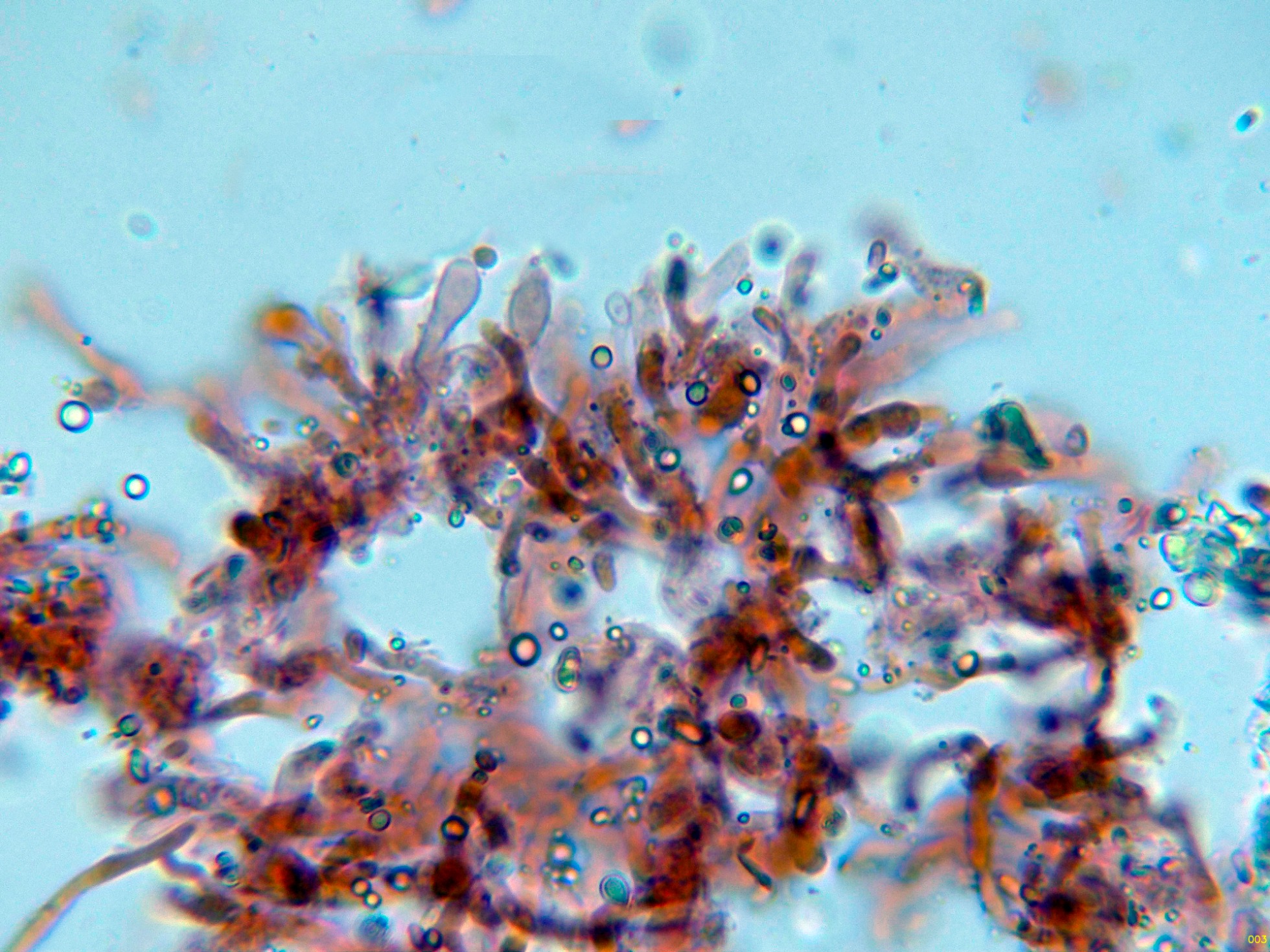 Y por debajo de las anteriores, las hifas de la subpellis en agua, prácticamente idénticas a las de la suprapellis.