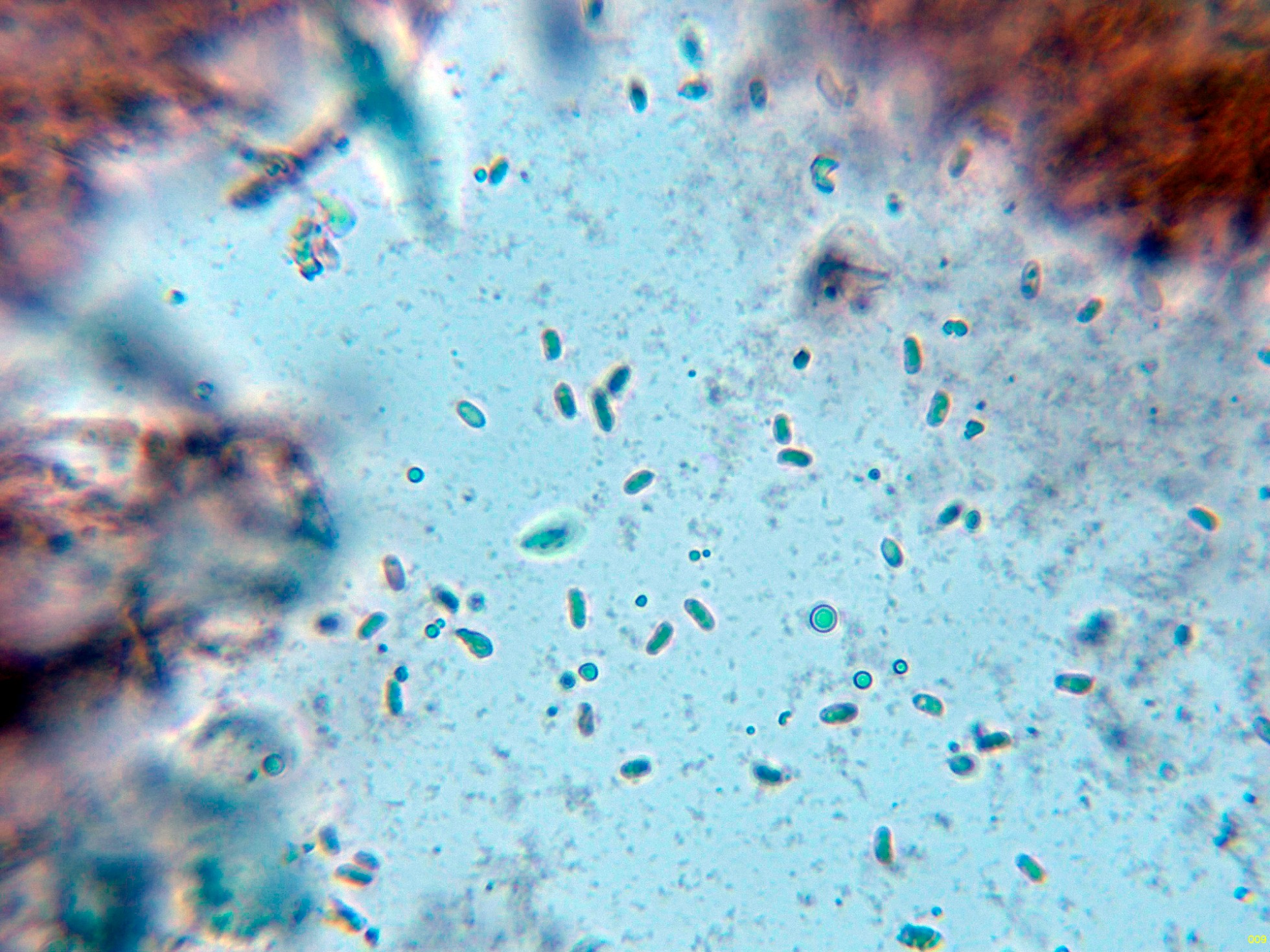 No conseguí obtener esporas por medio de la esporulación natural, por lo que me tuve que contentar con las esporas libres en las muestras.
