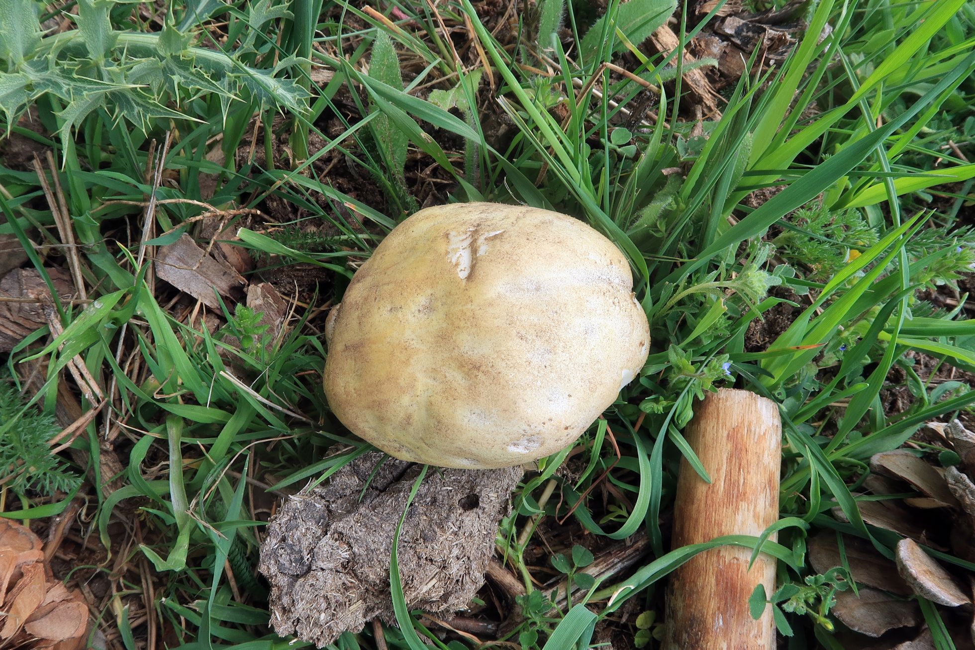 Un Agaricus de campa de altura, ligeramente amarilleante con la manipulación, el Agaricus arvensis.
