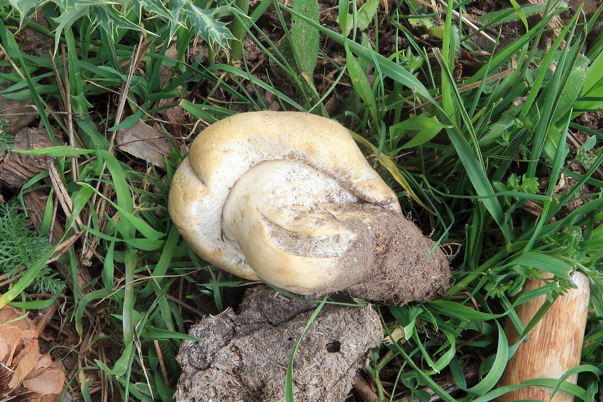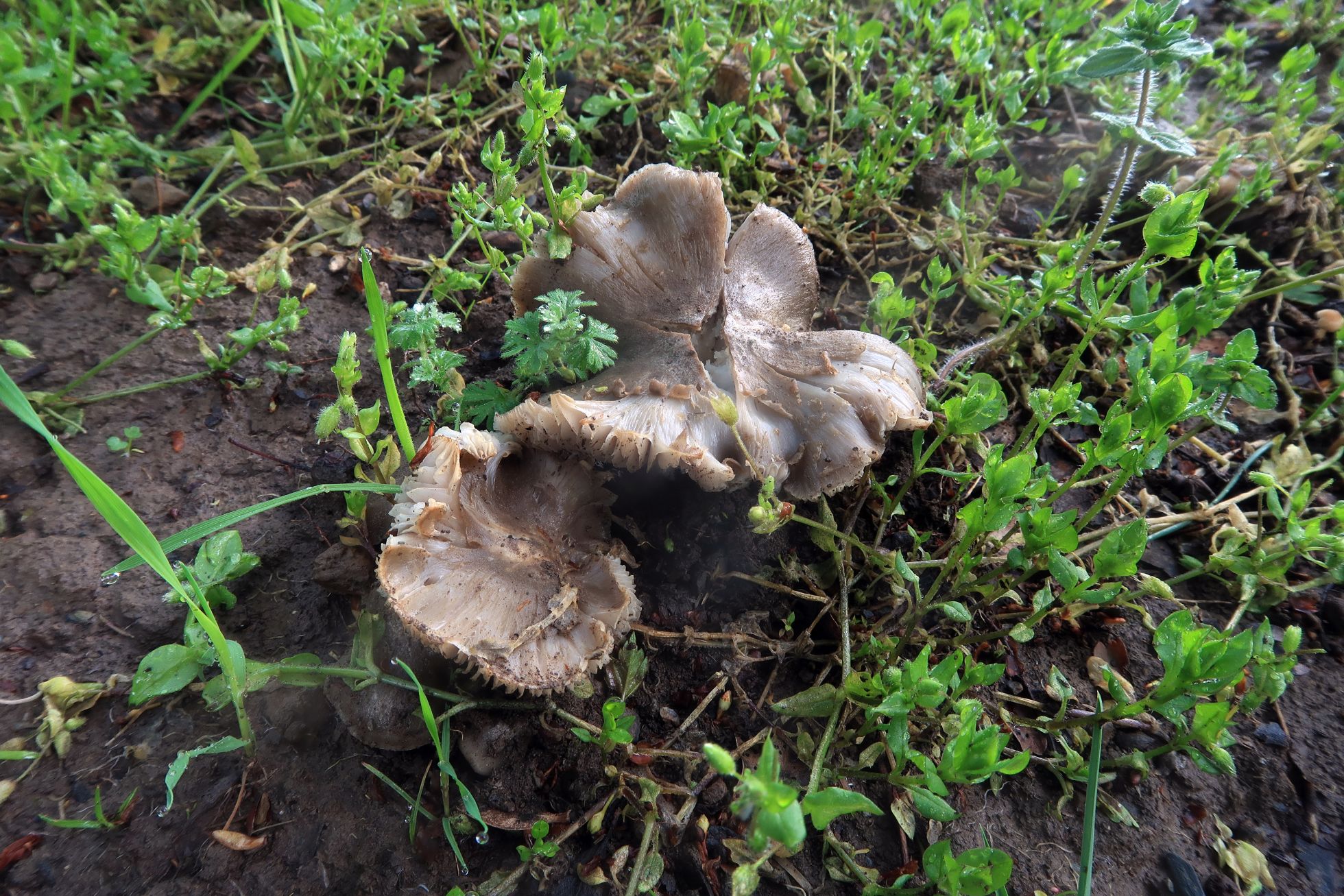 Y ya para terminar y sin microscopía, una que aunque parecía brotar del suelo, sin duda debía hacerlo sobre madera o raíces enterradas, el Polyporus arcularius, actualmente Lentinus arcularius.