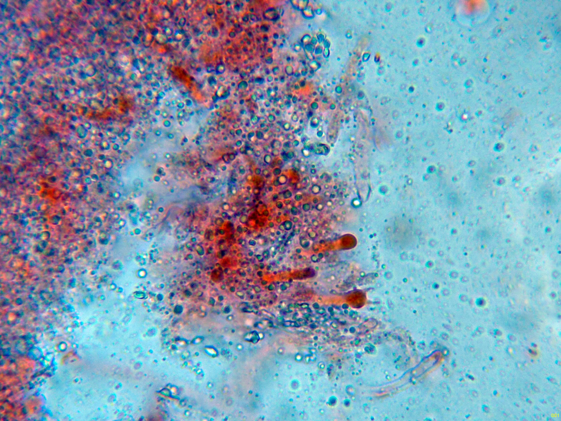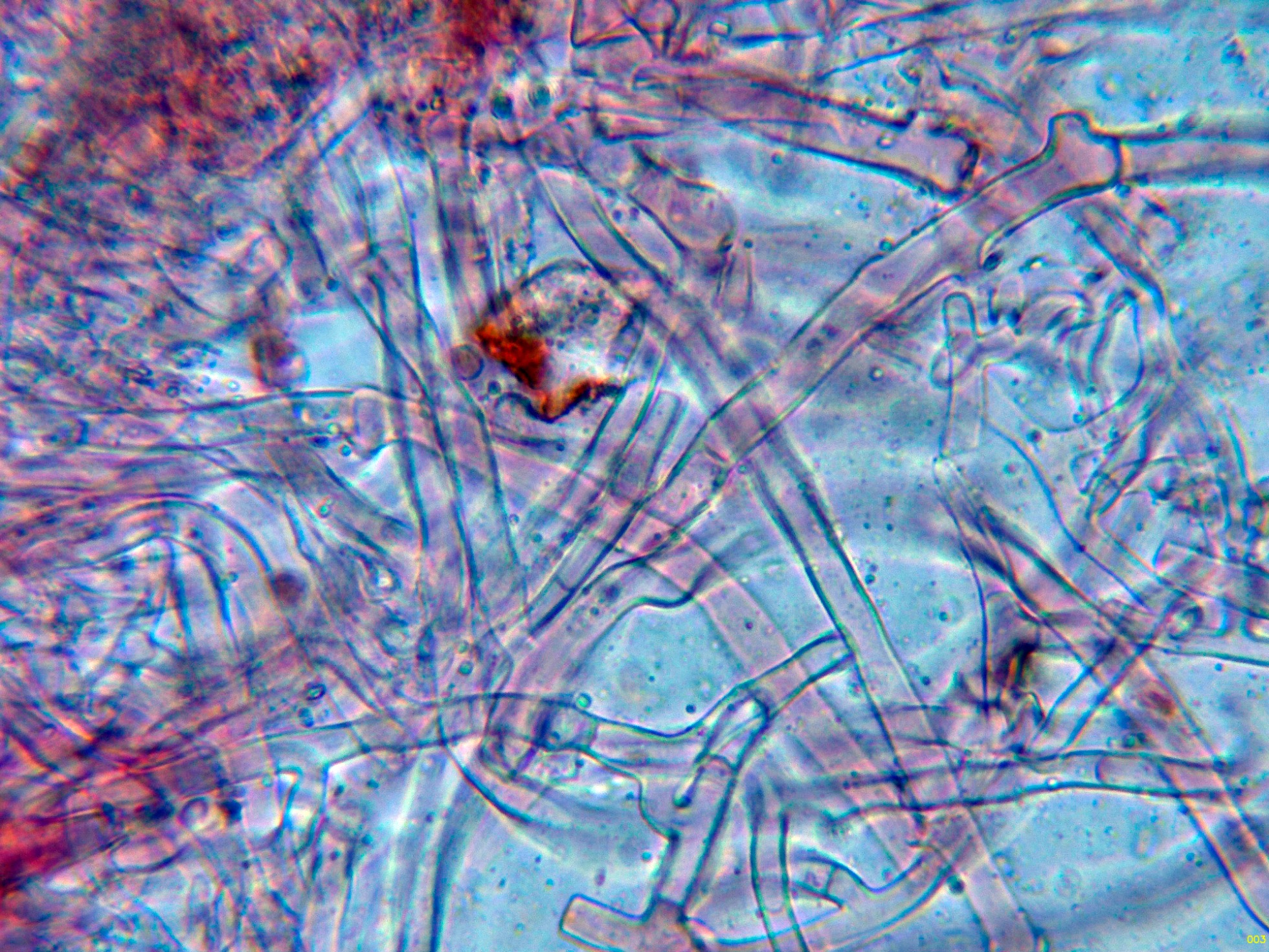 Las hifas subiculares en solución de Rojo Congo diluido.