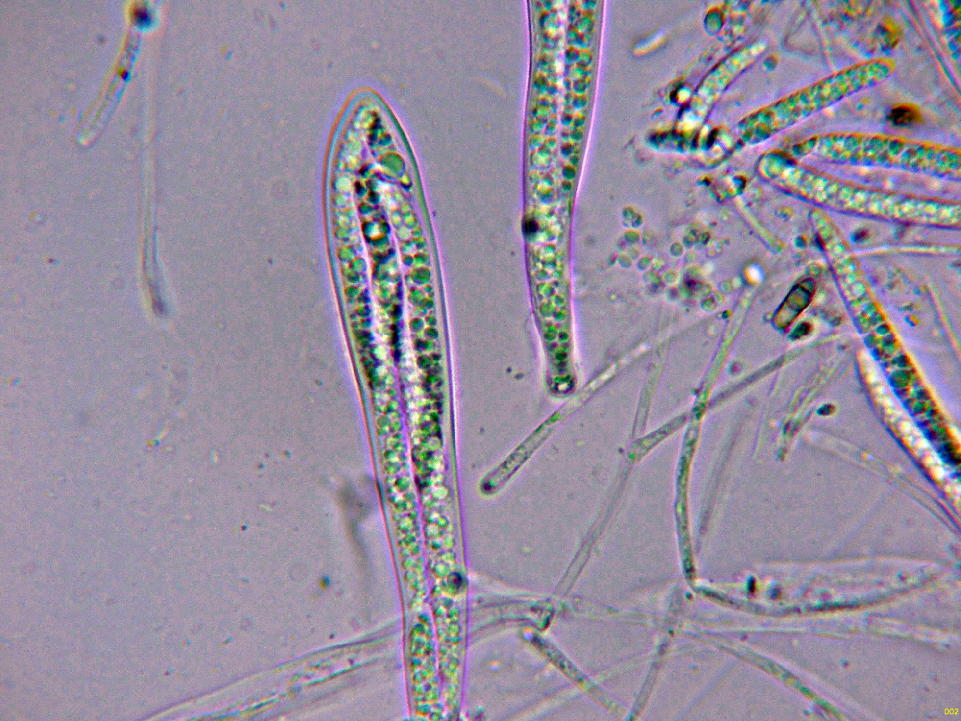 Las paráfisis filiformes en agua.