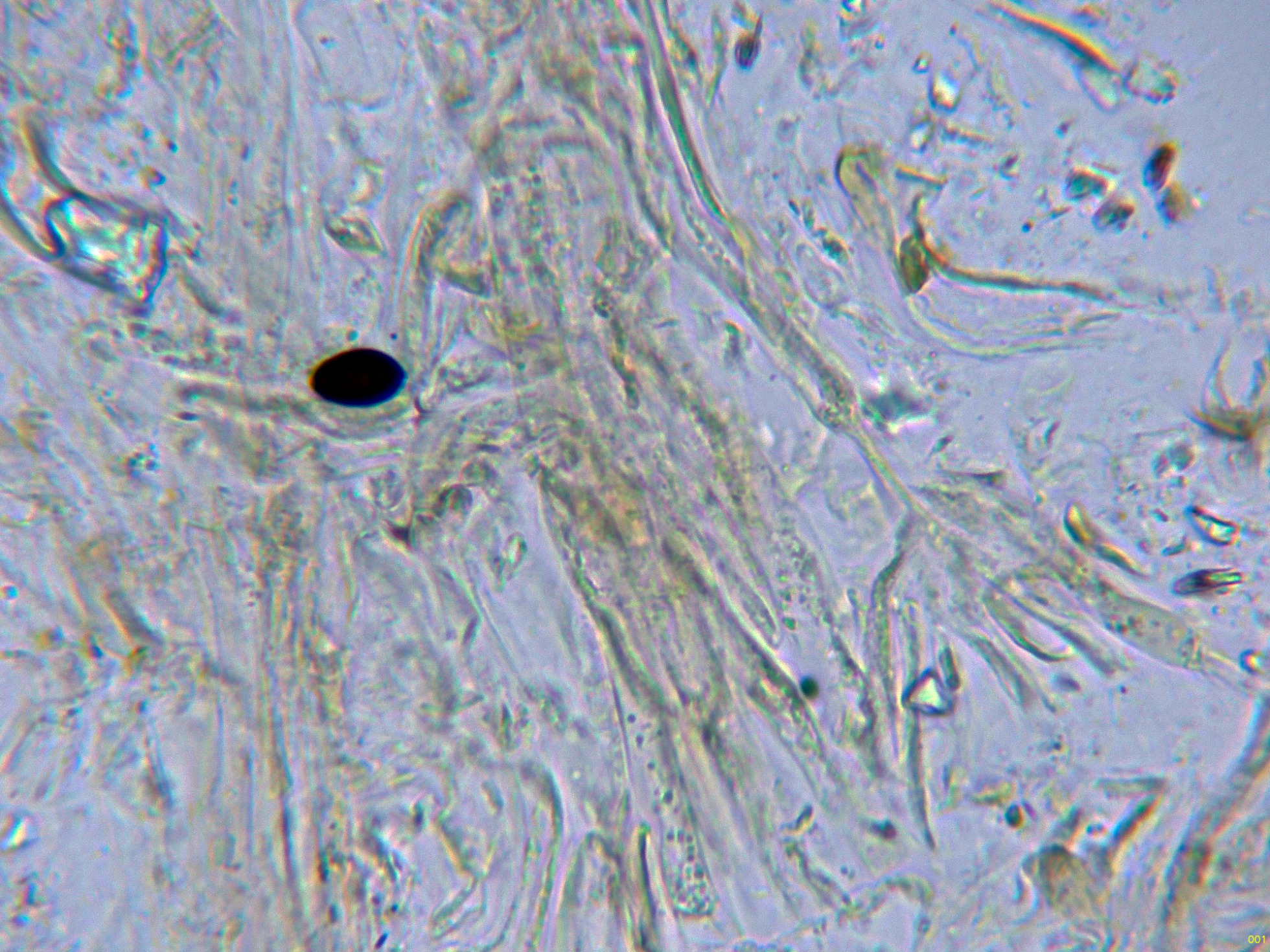 Un hongo Coprinoide del 19 de mayo pasado, este ya creo haberlo encontrado en un par de ocasiones anteriores, pero ya muchos años atrás, cuando aun no había empezado con el microscopio, con lo que no disponía de su microscopía.