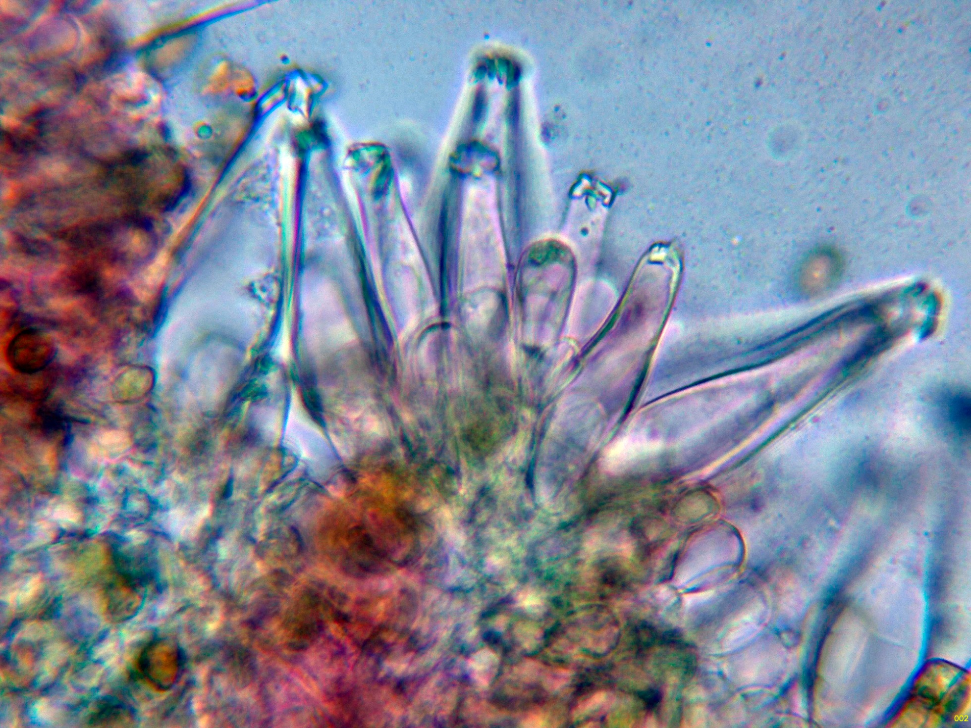 Caulocistidios presentes en la parte alta del pie.