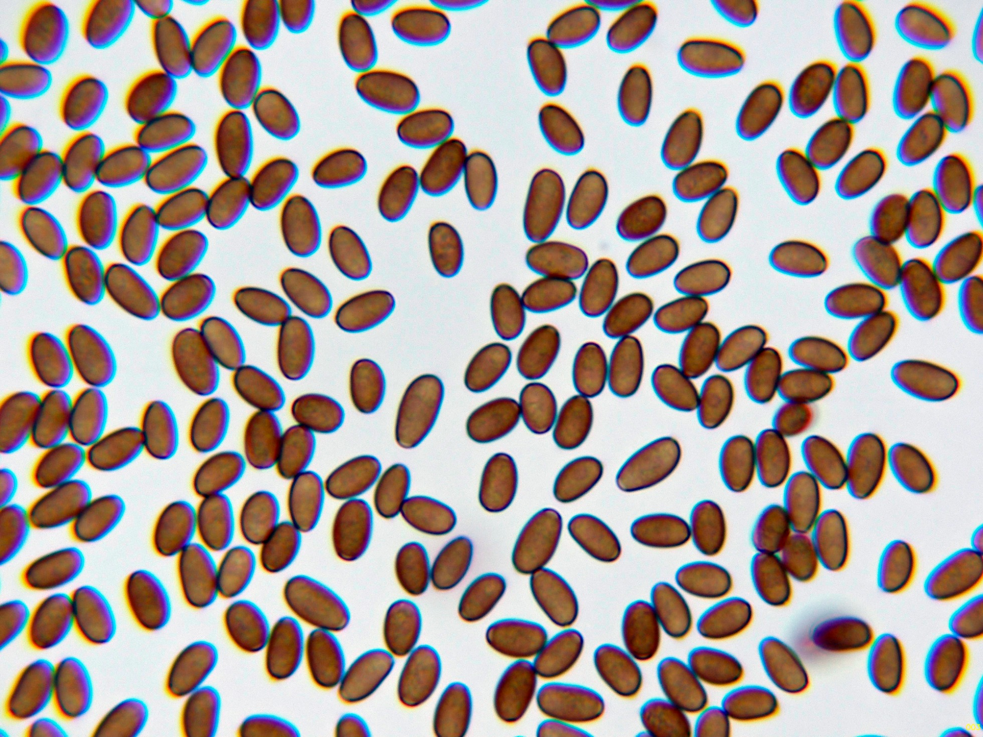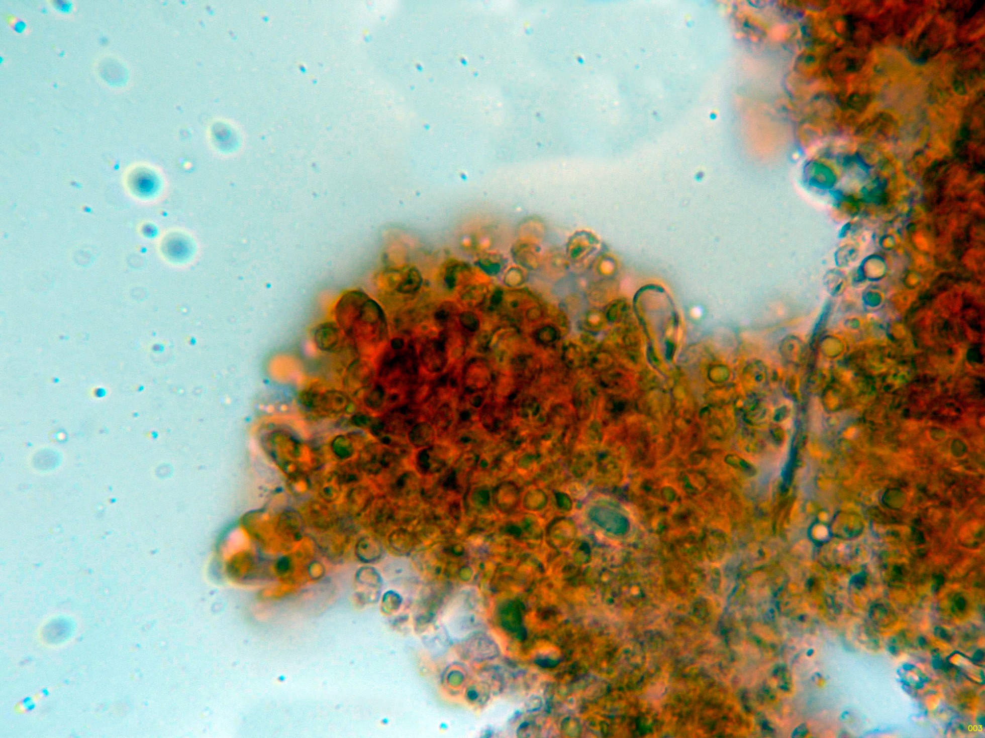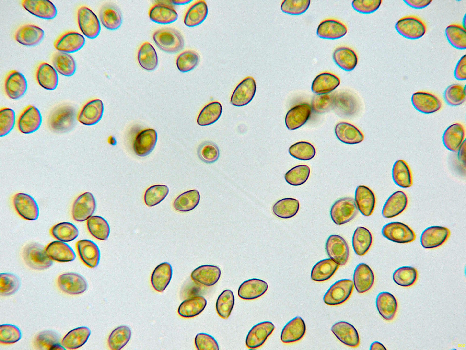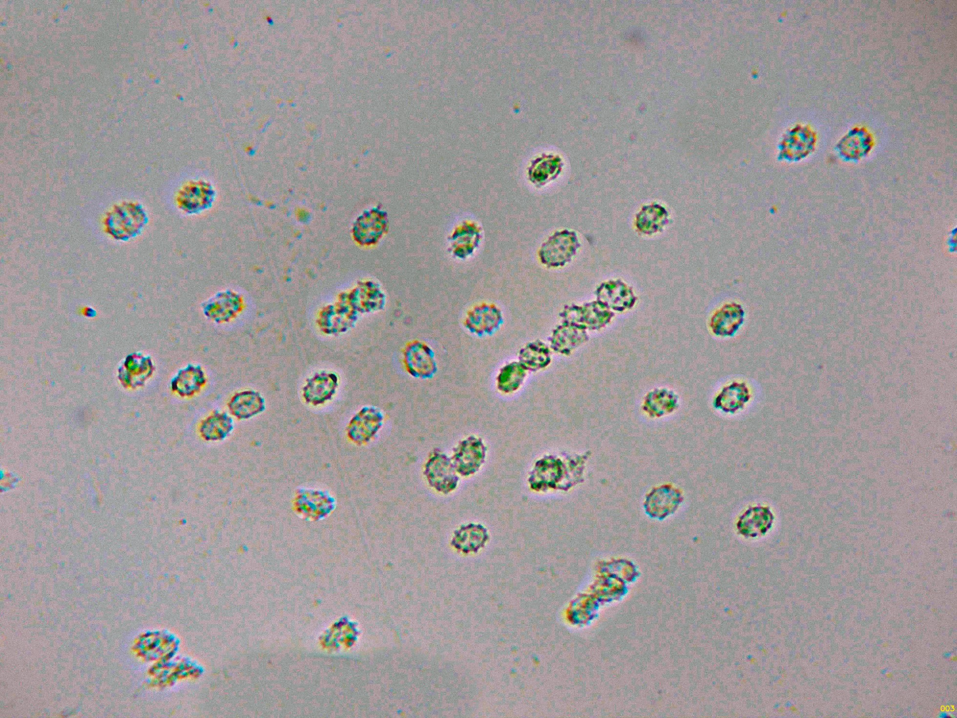 Y una composición de las pocas esporas obtenidas por esporulación natural y en agua, tengo tan clara su identidad que ni tan siquiera me molesté en medirlas.