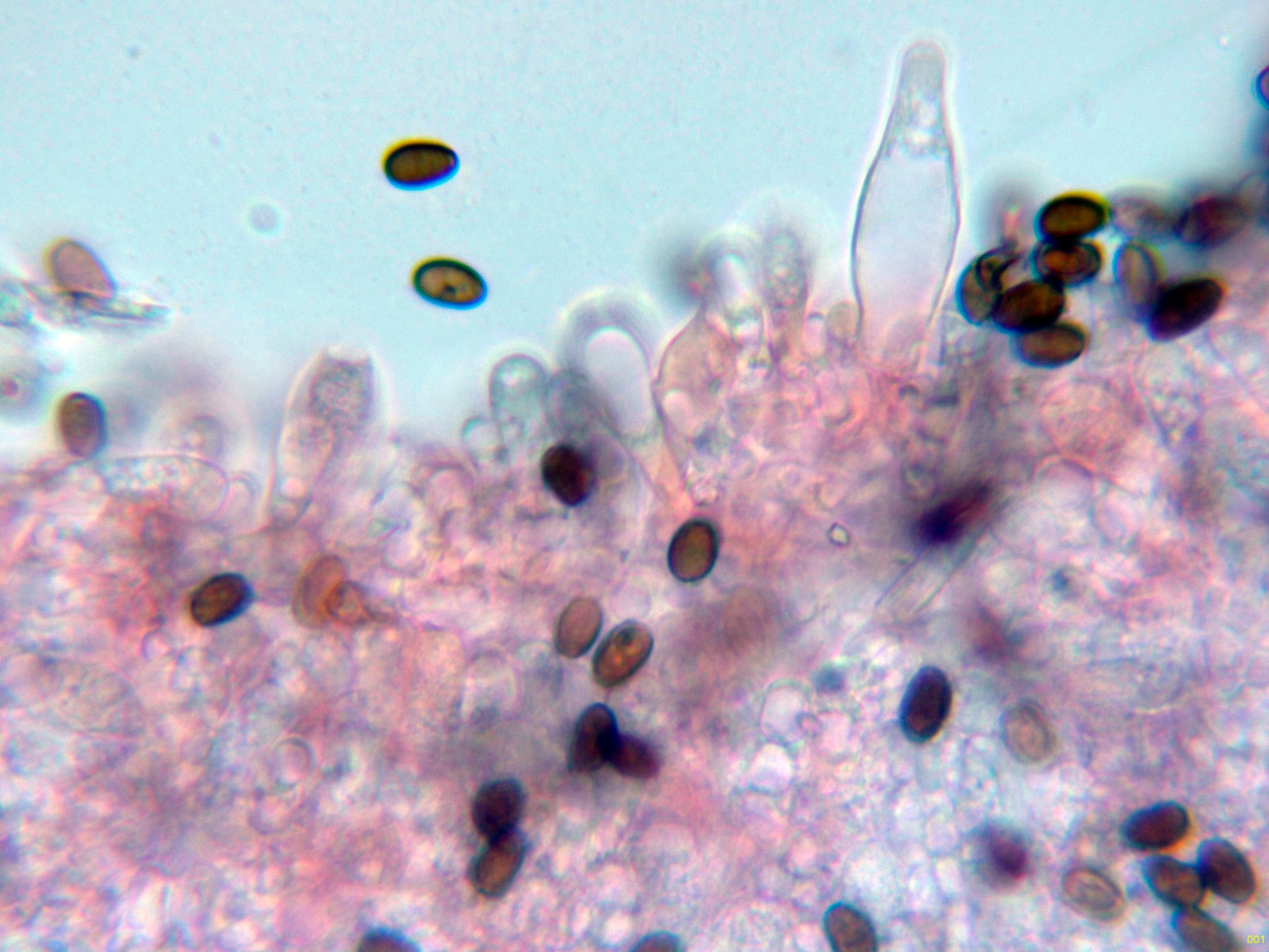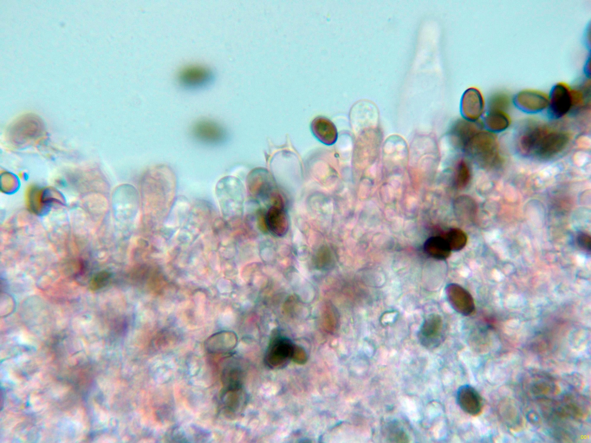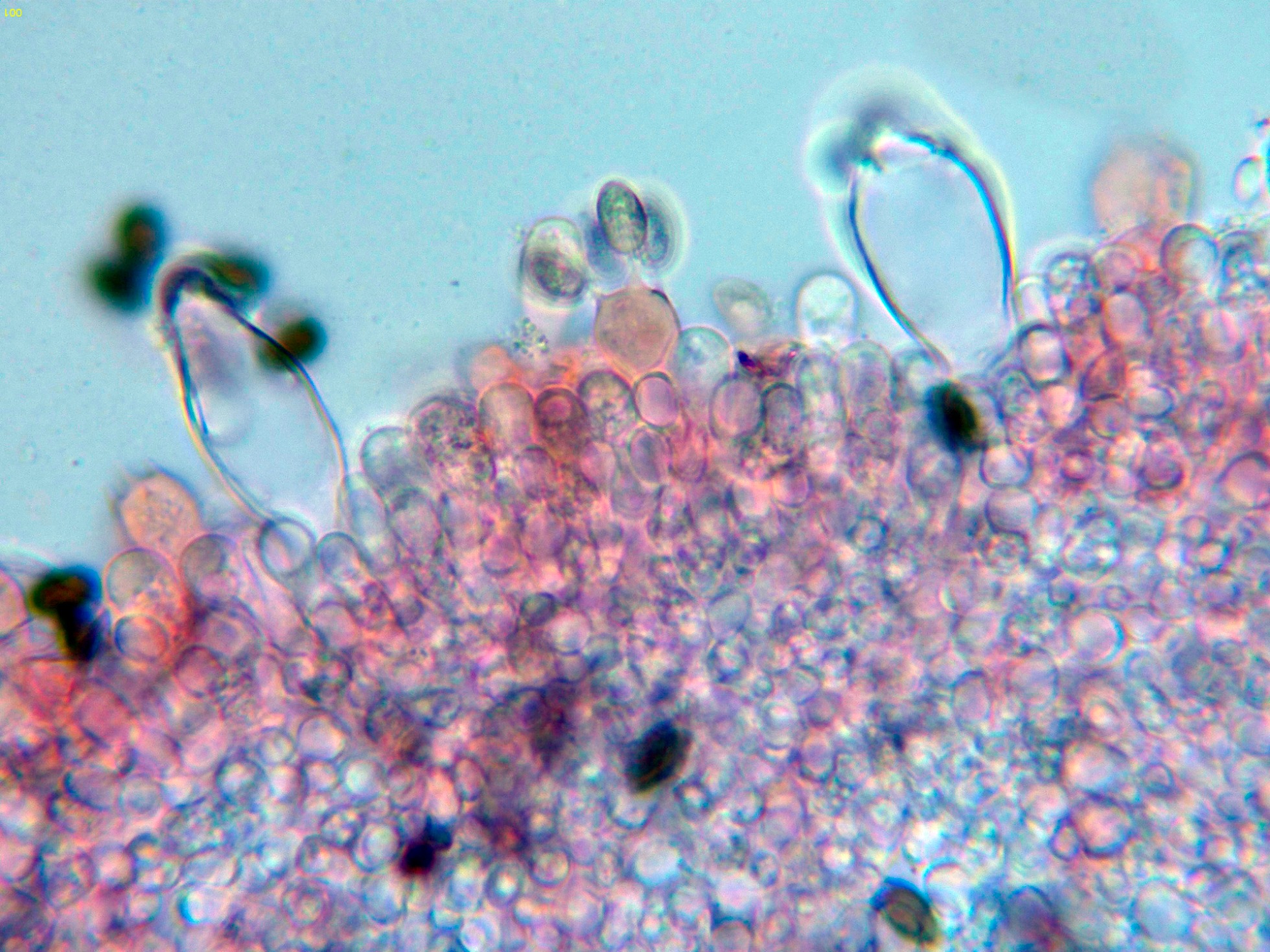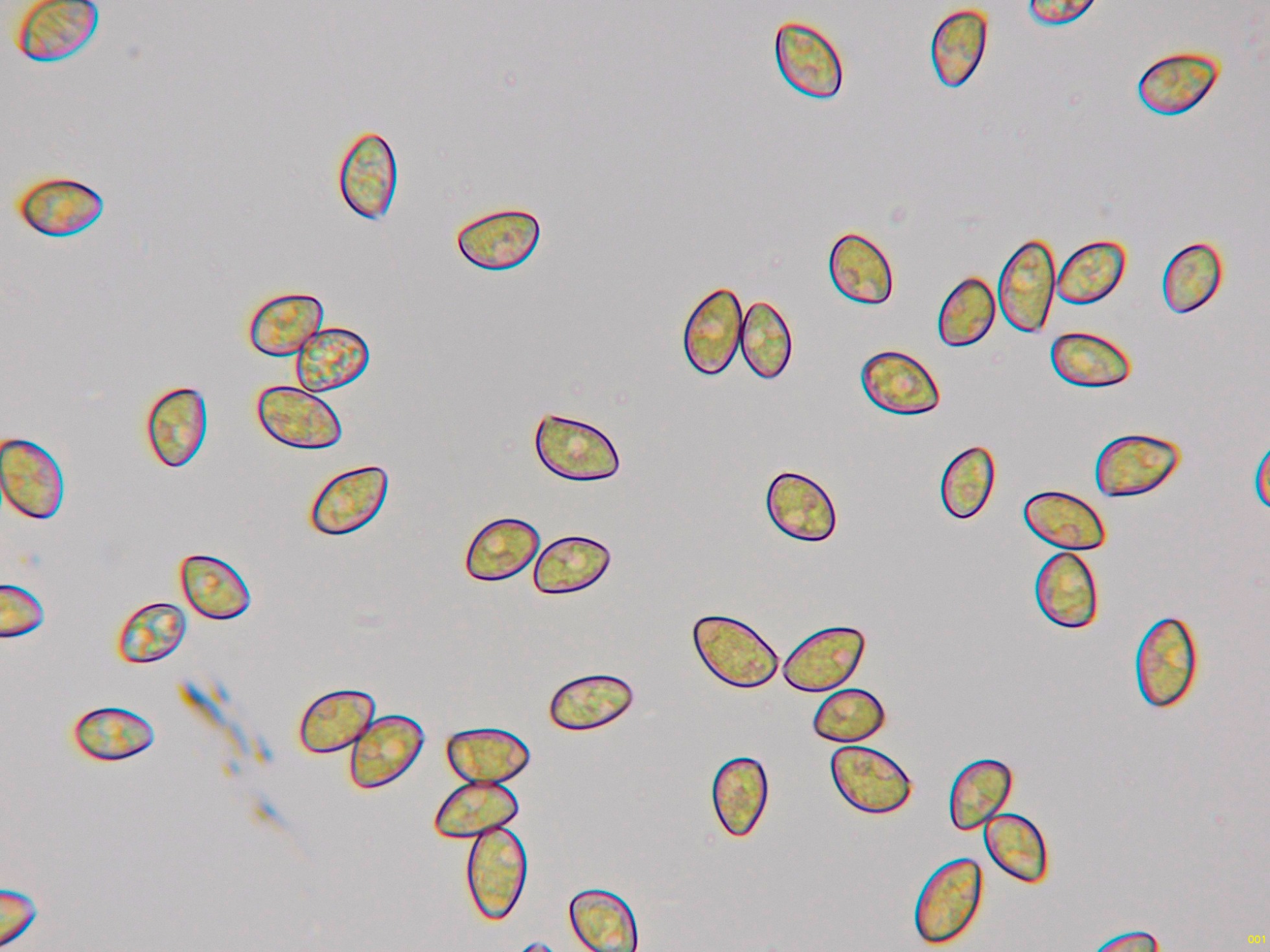 Y una composición de las pocas esporas obtenidas por esporulación natural y en agua, tengo tan clara su identidad que ni tan siquiera me molesté en medirlas.