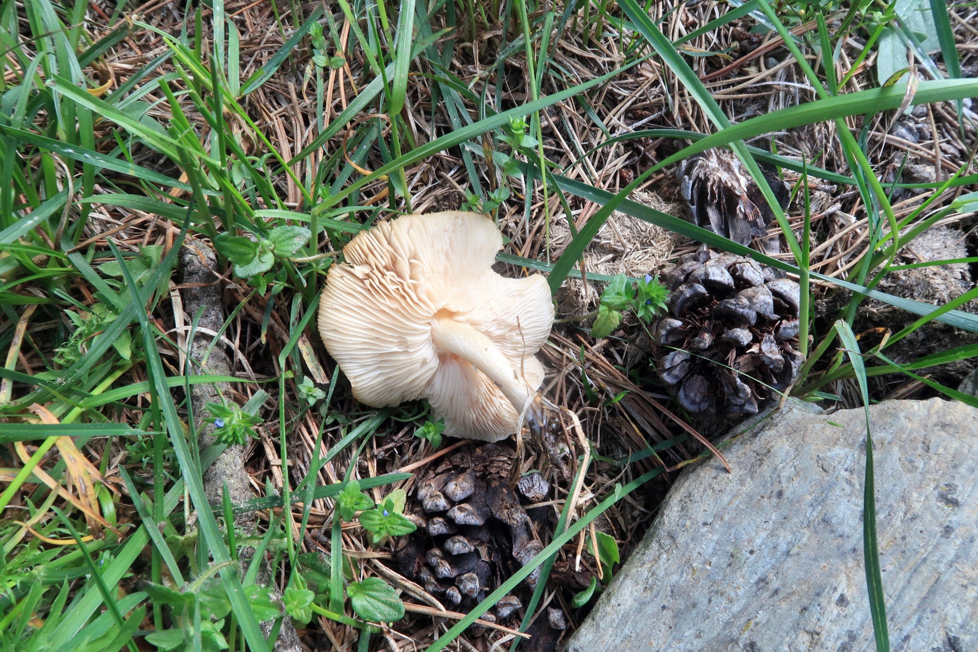 Muy cerca de la anterior un Inocybe, muy probablemente la Inocybe nitidiuscula.