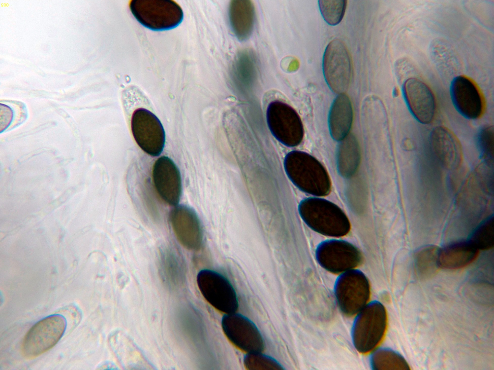 Estas medidas siguen estando considerablemente por encima de las que debería presentar la especie, por lo que lo más sensato es dejarlo como lo más parecido que existe actualmente, es decir, Coniochaeta aff. pulveracea.