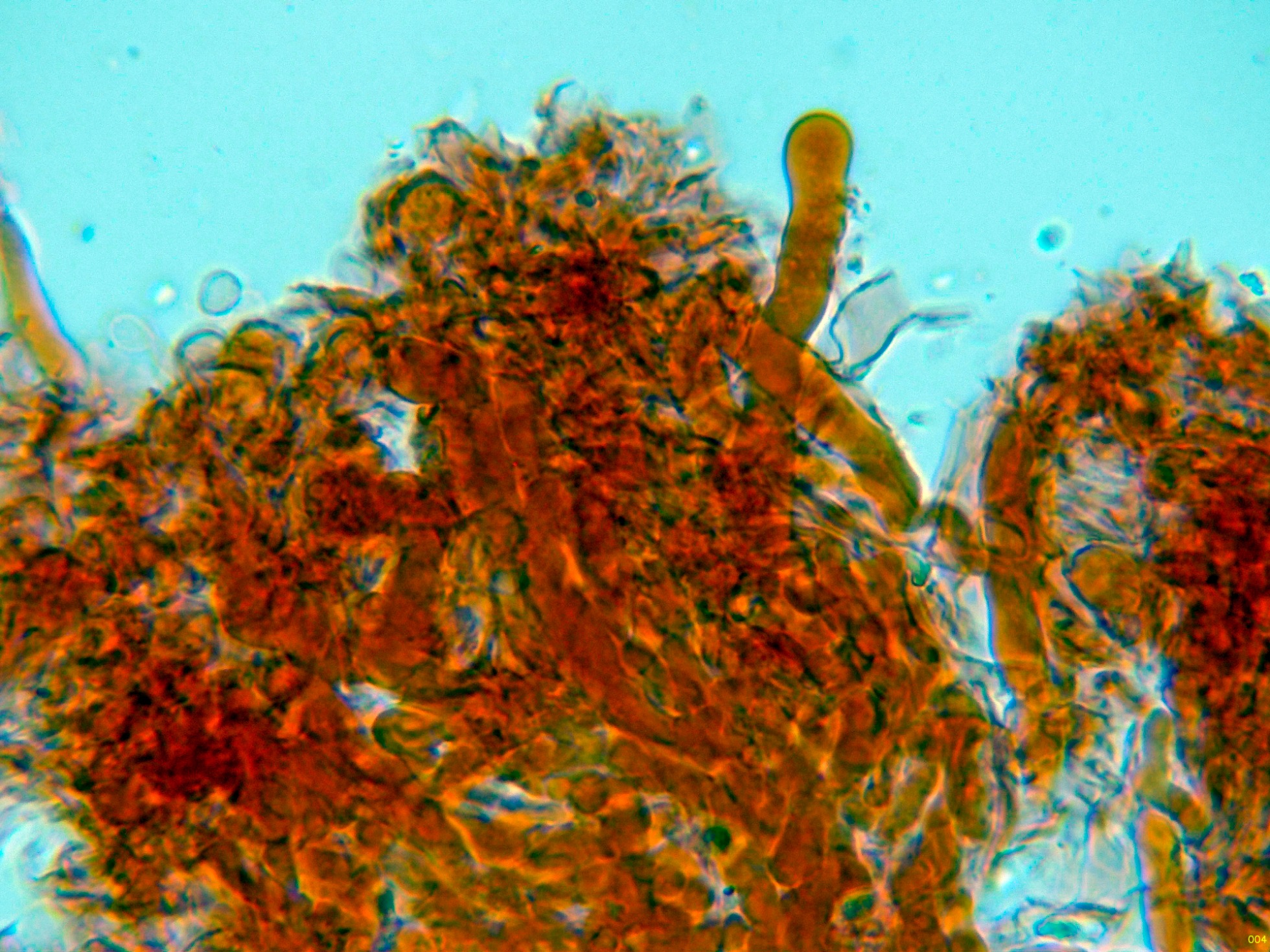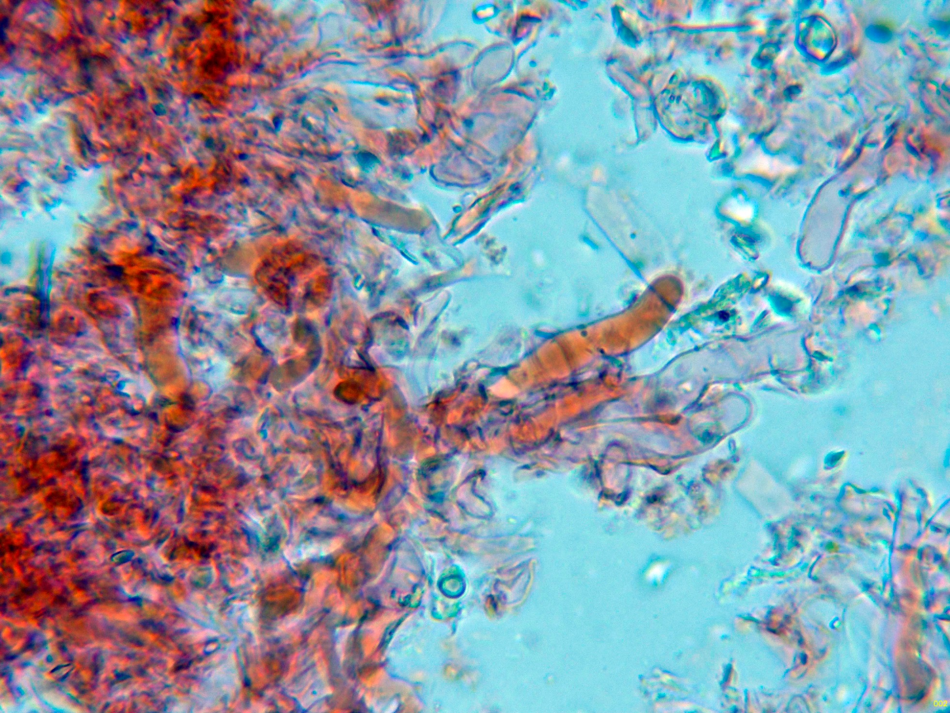 Unas imágenes del himenio, sin cistidios observados: