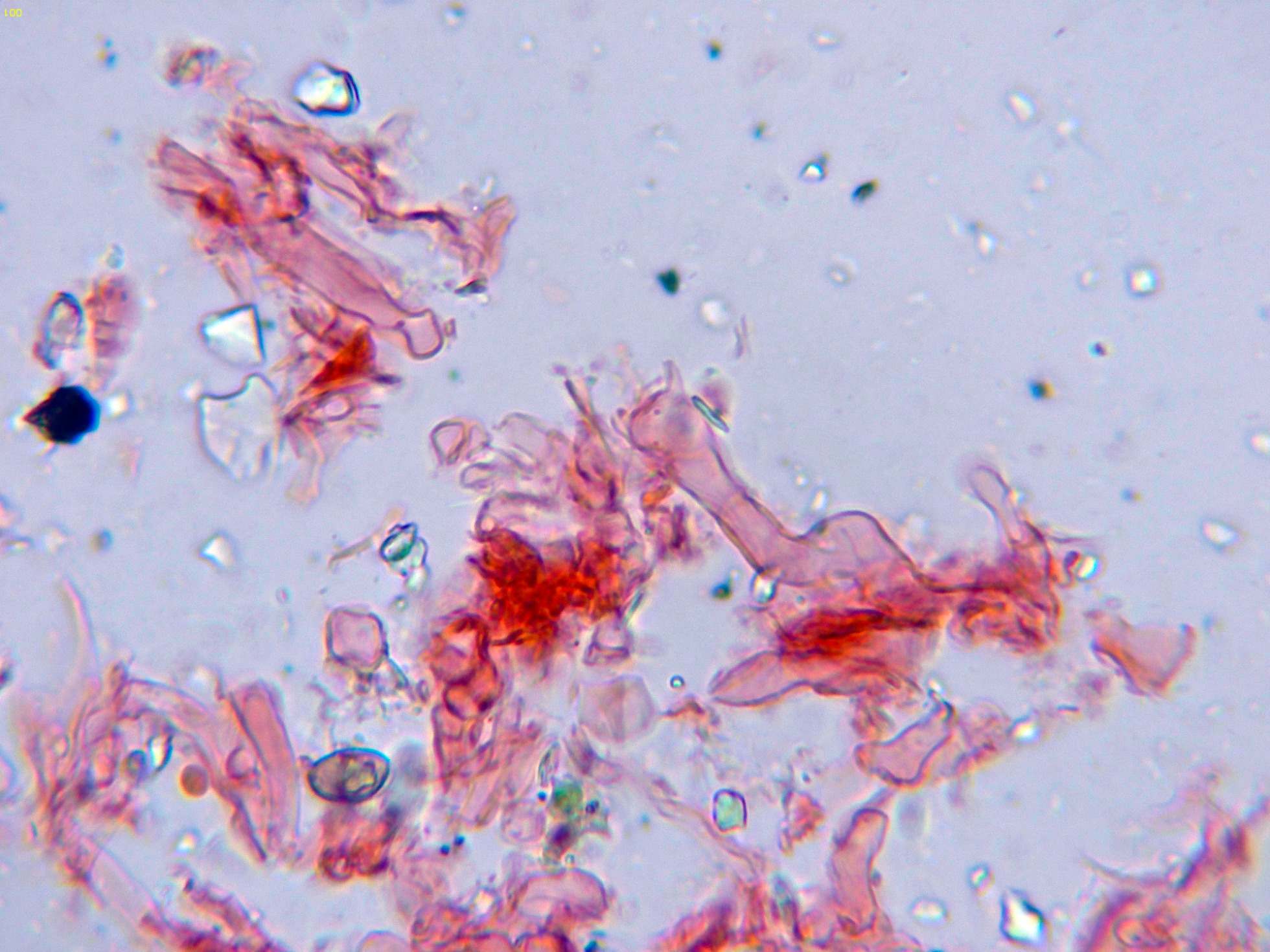 Y una composición de las esporas libres observadas en solución de Rojo Congo: