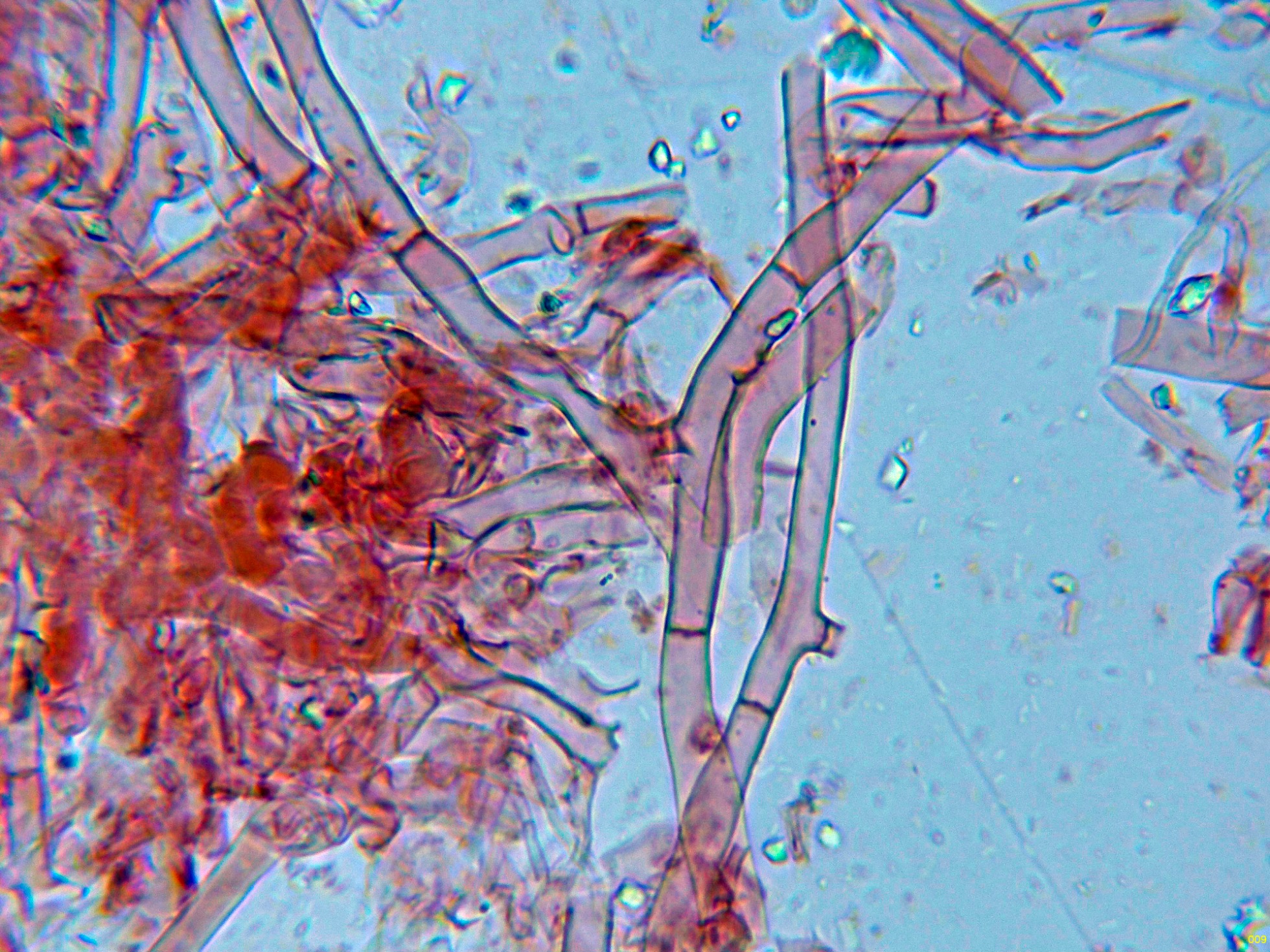 - Erythricium hypnophilum (P. Karst.) J. Erikss. & Hjortstam. Microscopía.