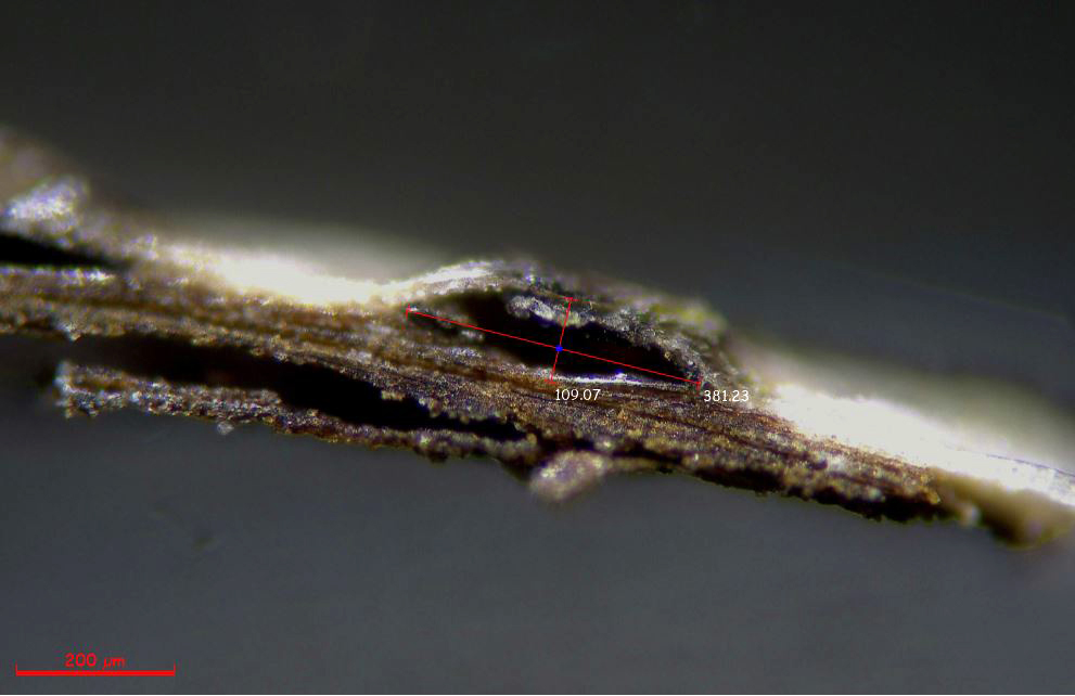 Una nueva imágen de la sección a 100 aumentos con sus medidas: