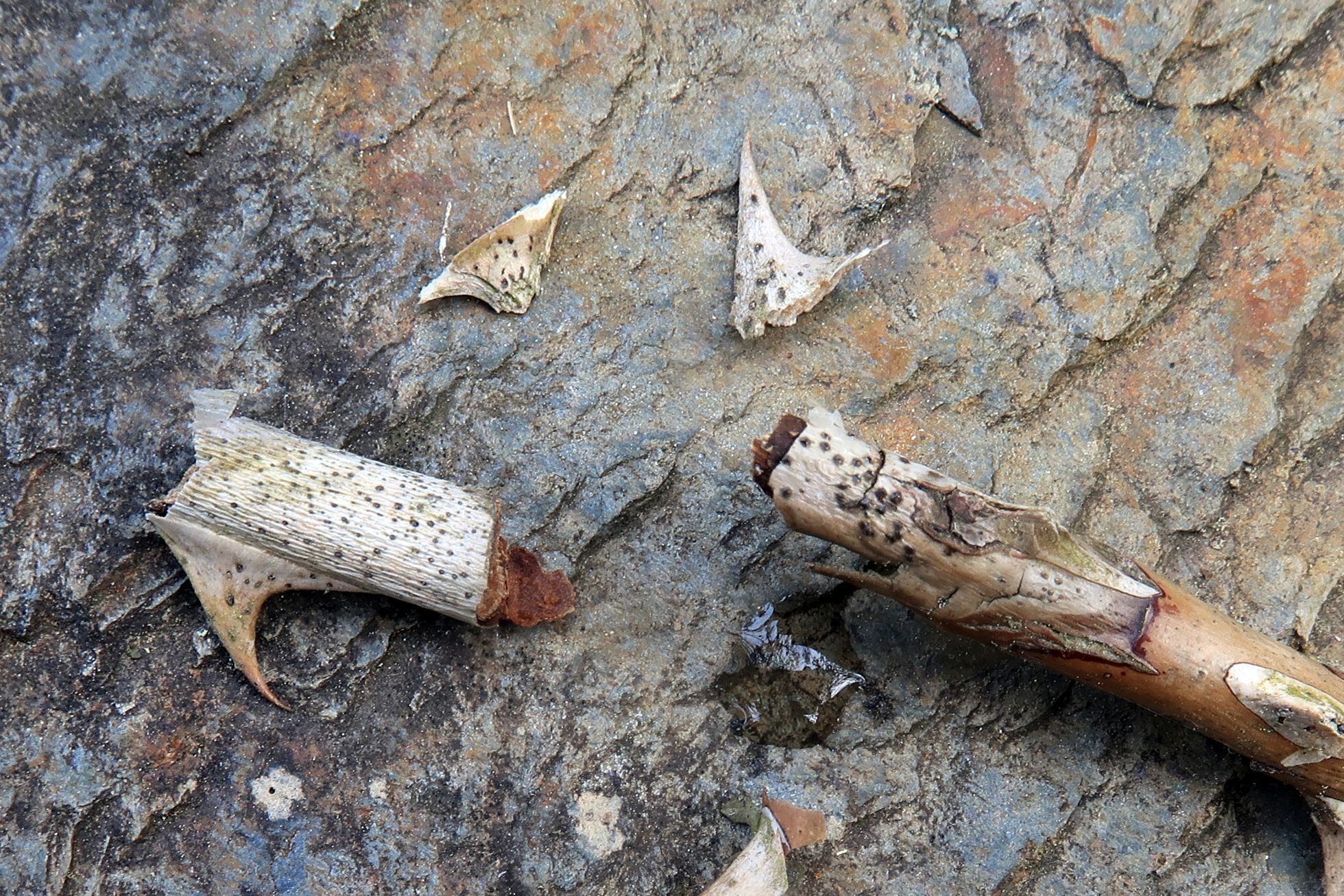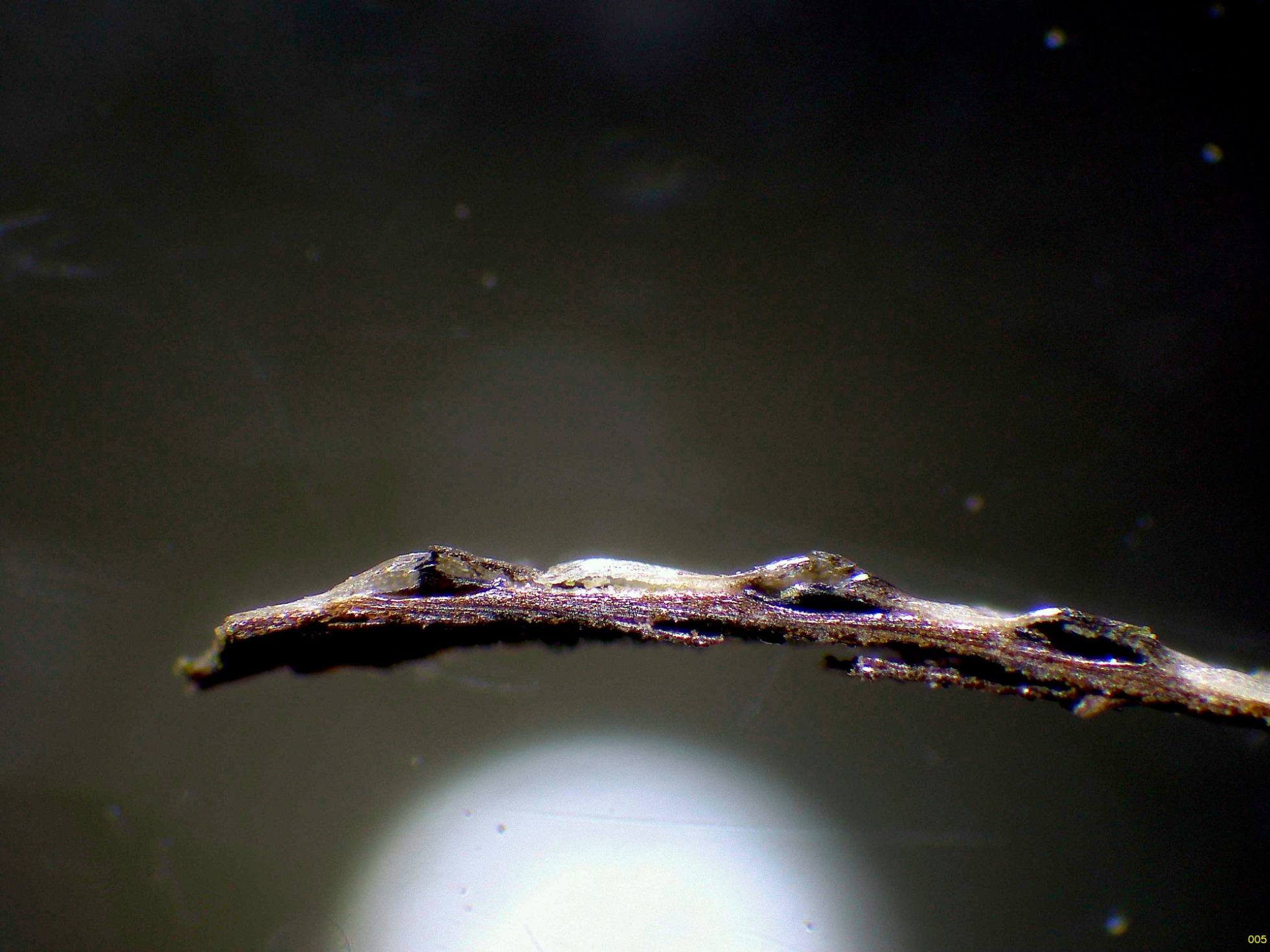 Un diminuto ascomiceto de los que se nos suelen pasar desapercibidos, este fotografiado el 2 de junio pasado brotando sobre la corteza de un pequeño tronco del suelo ya bastante degradado de Rubus sp.