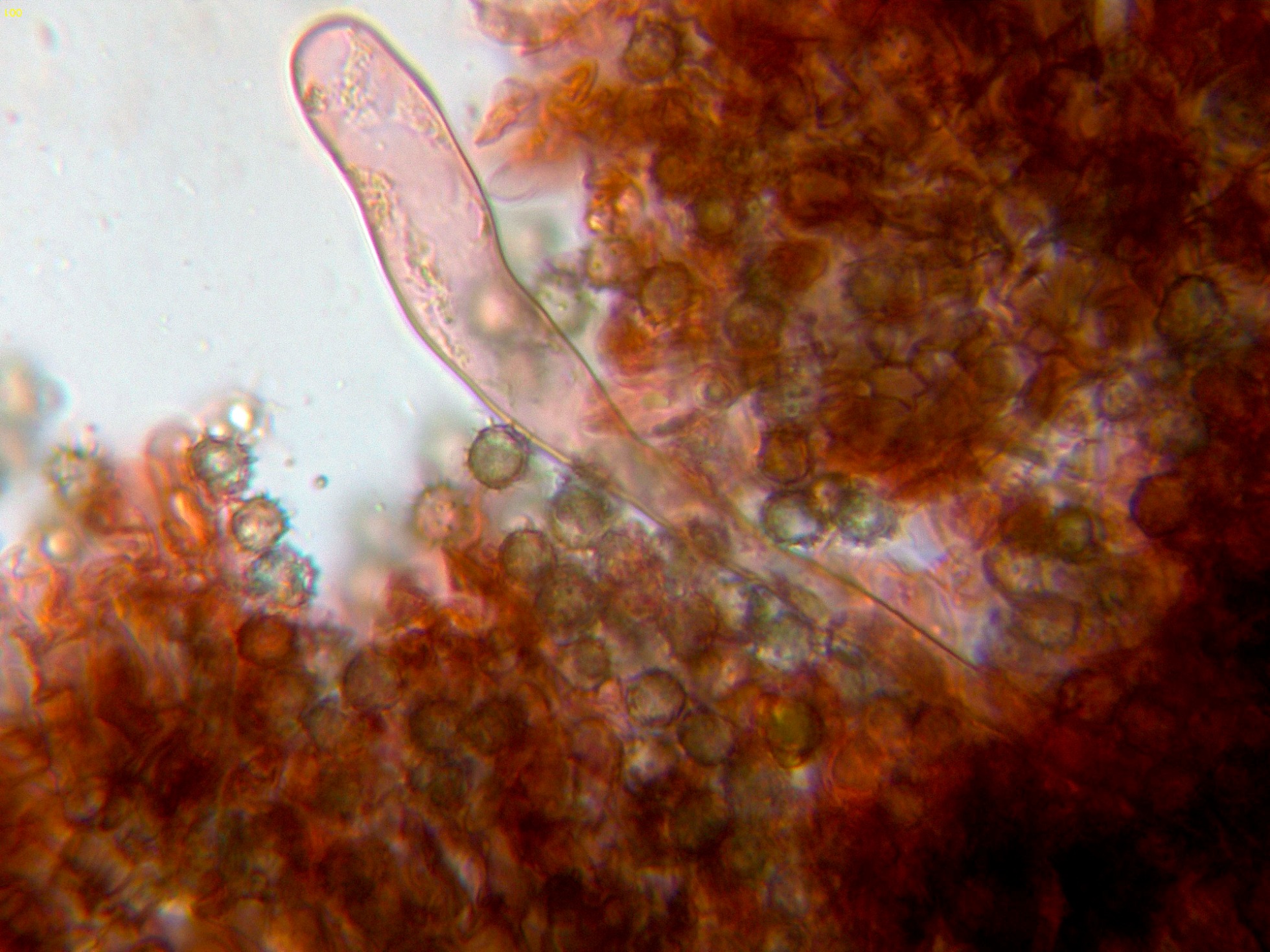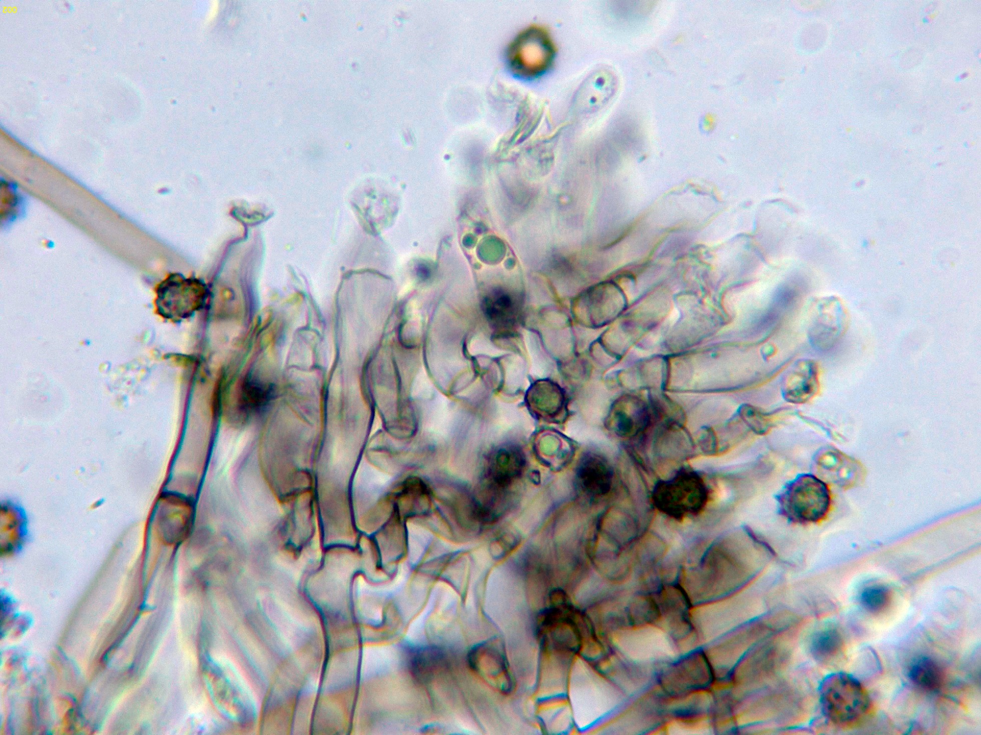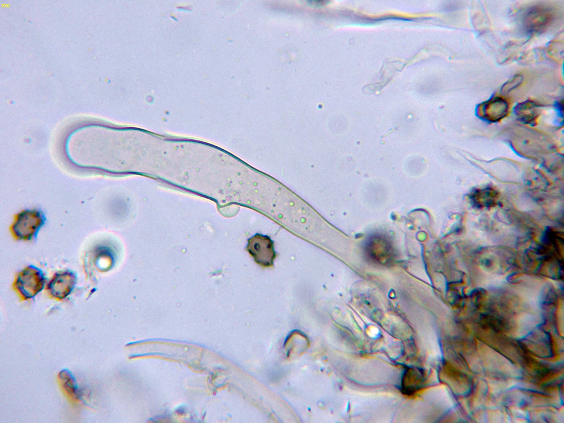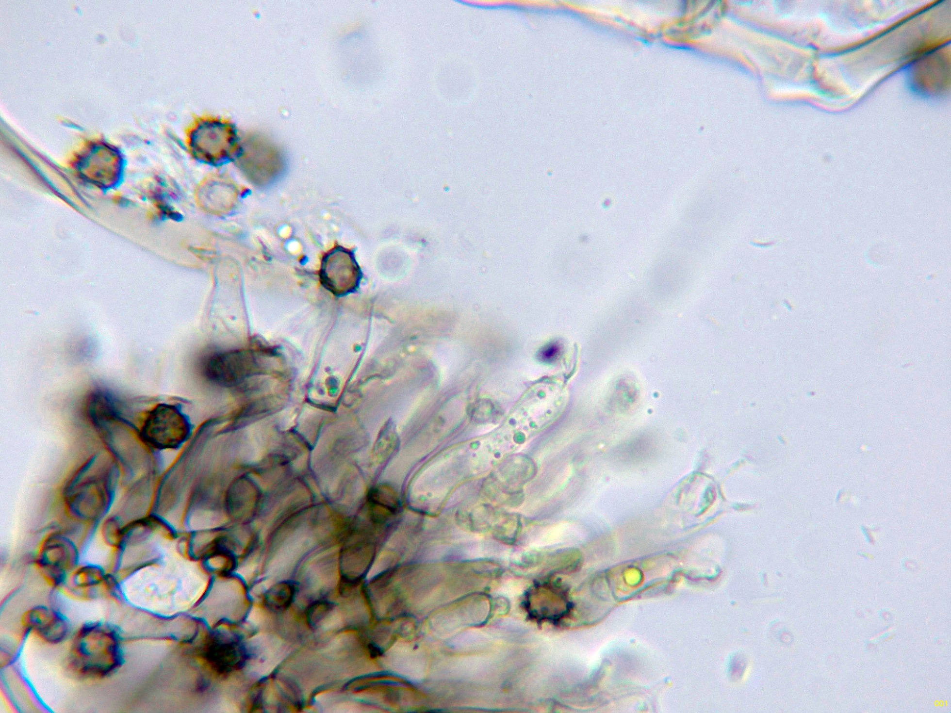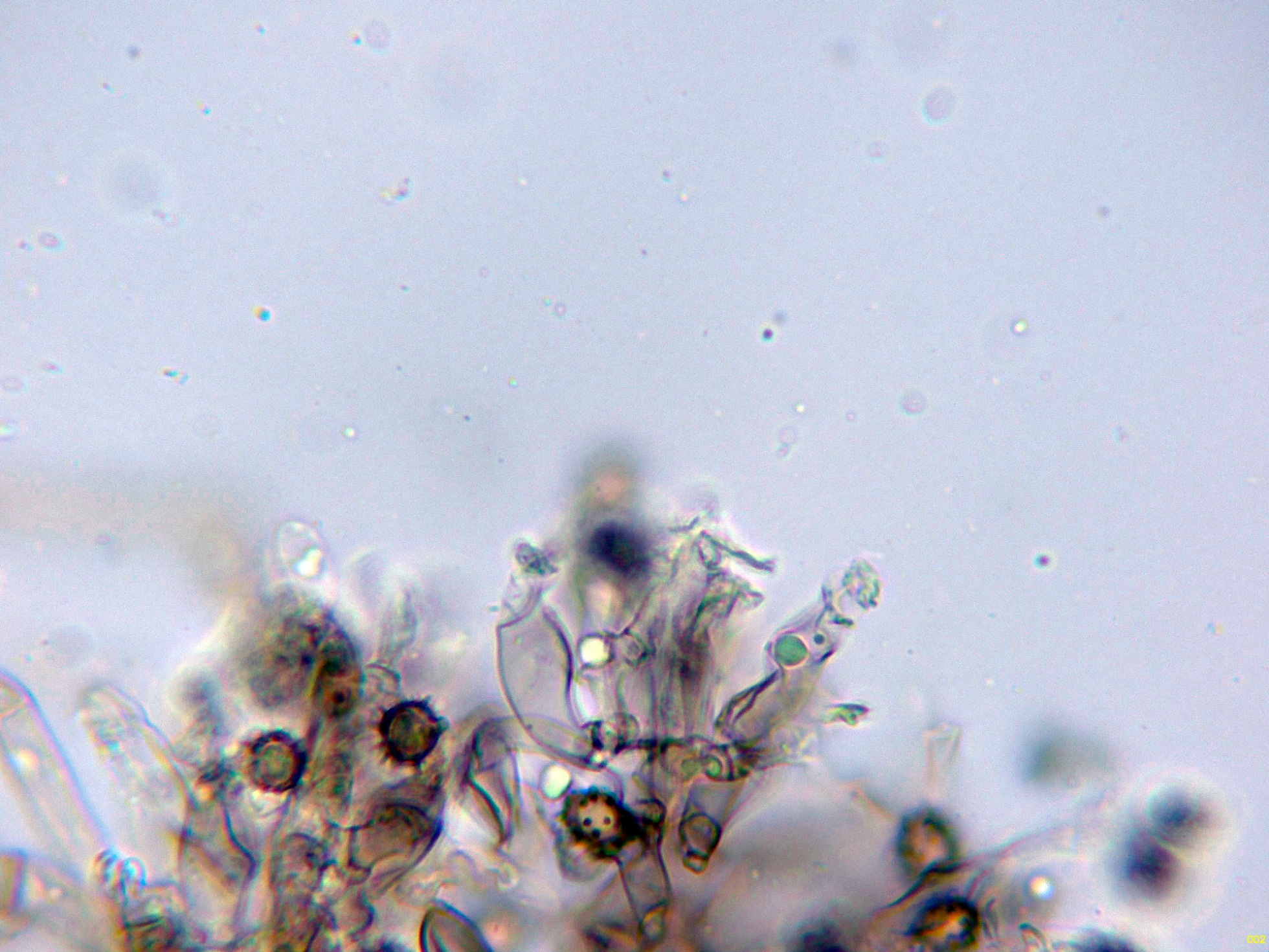 Los basidios en KOH, sin ninguna reacción aparente: