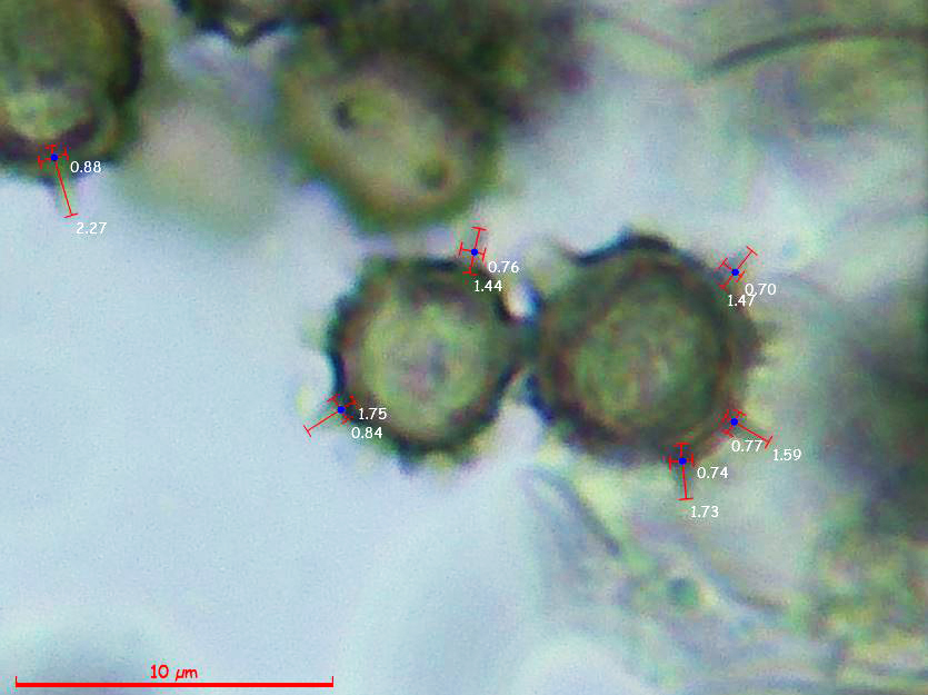 Y por último una imágen de estas esporas ampliada con las medidas de las espinas: